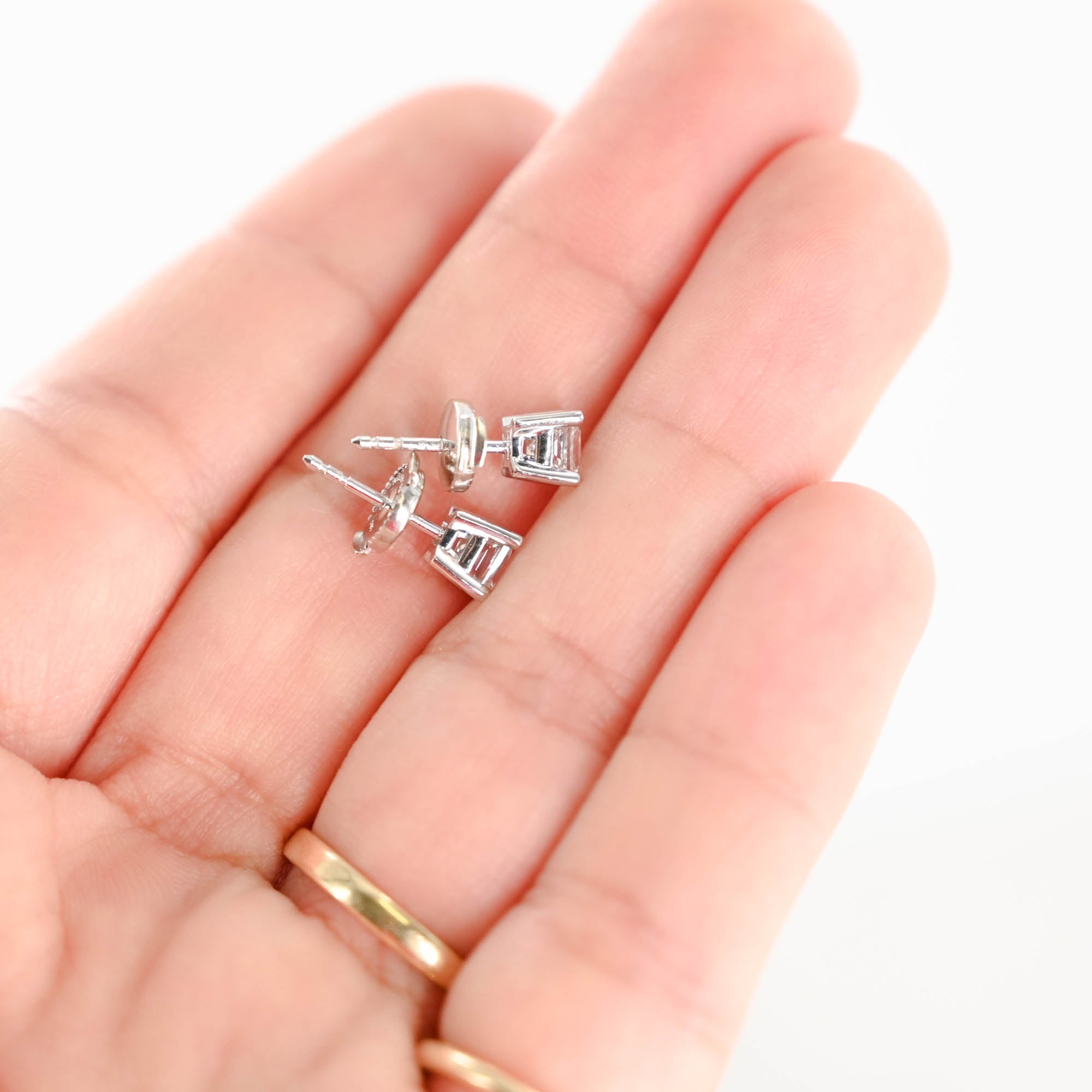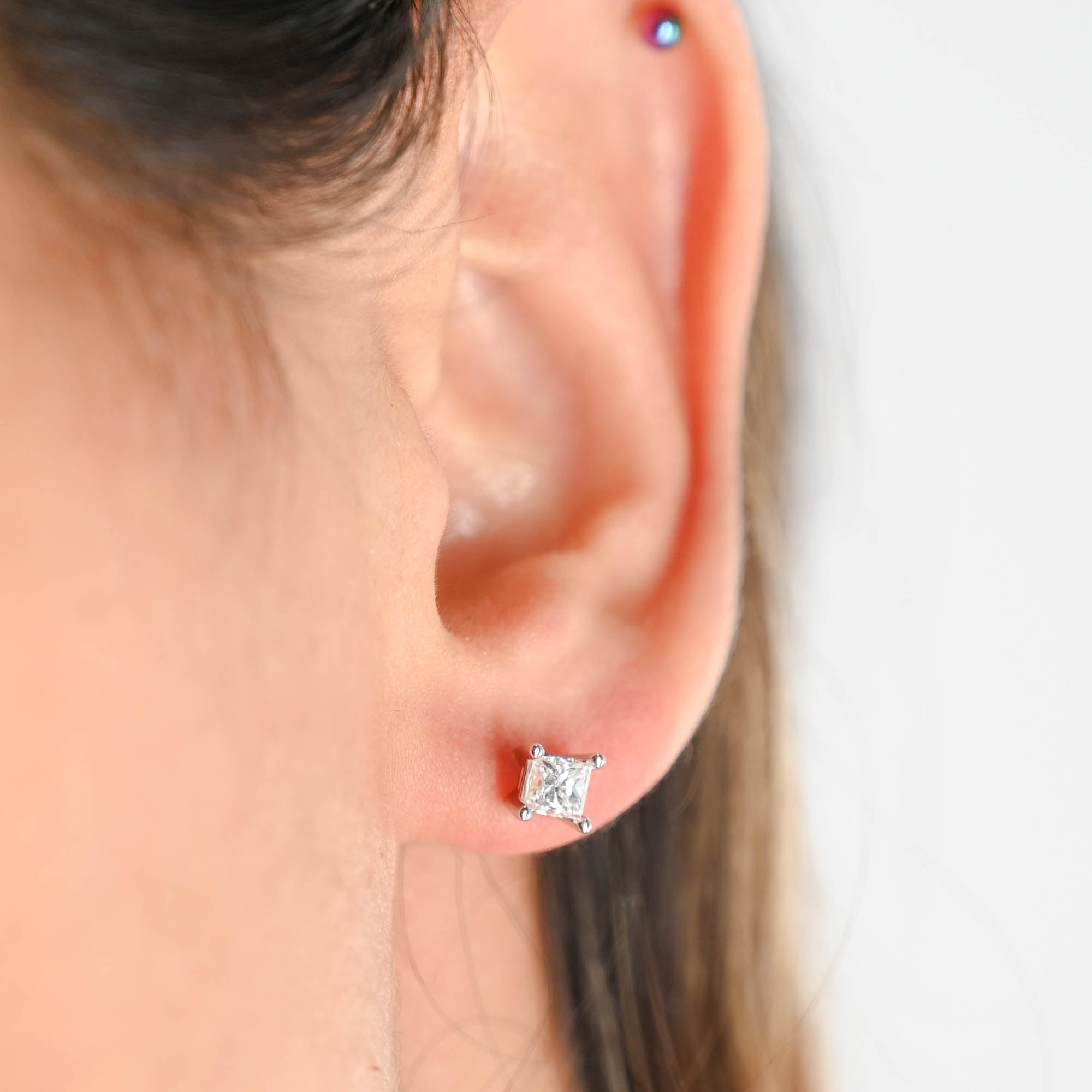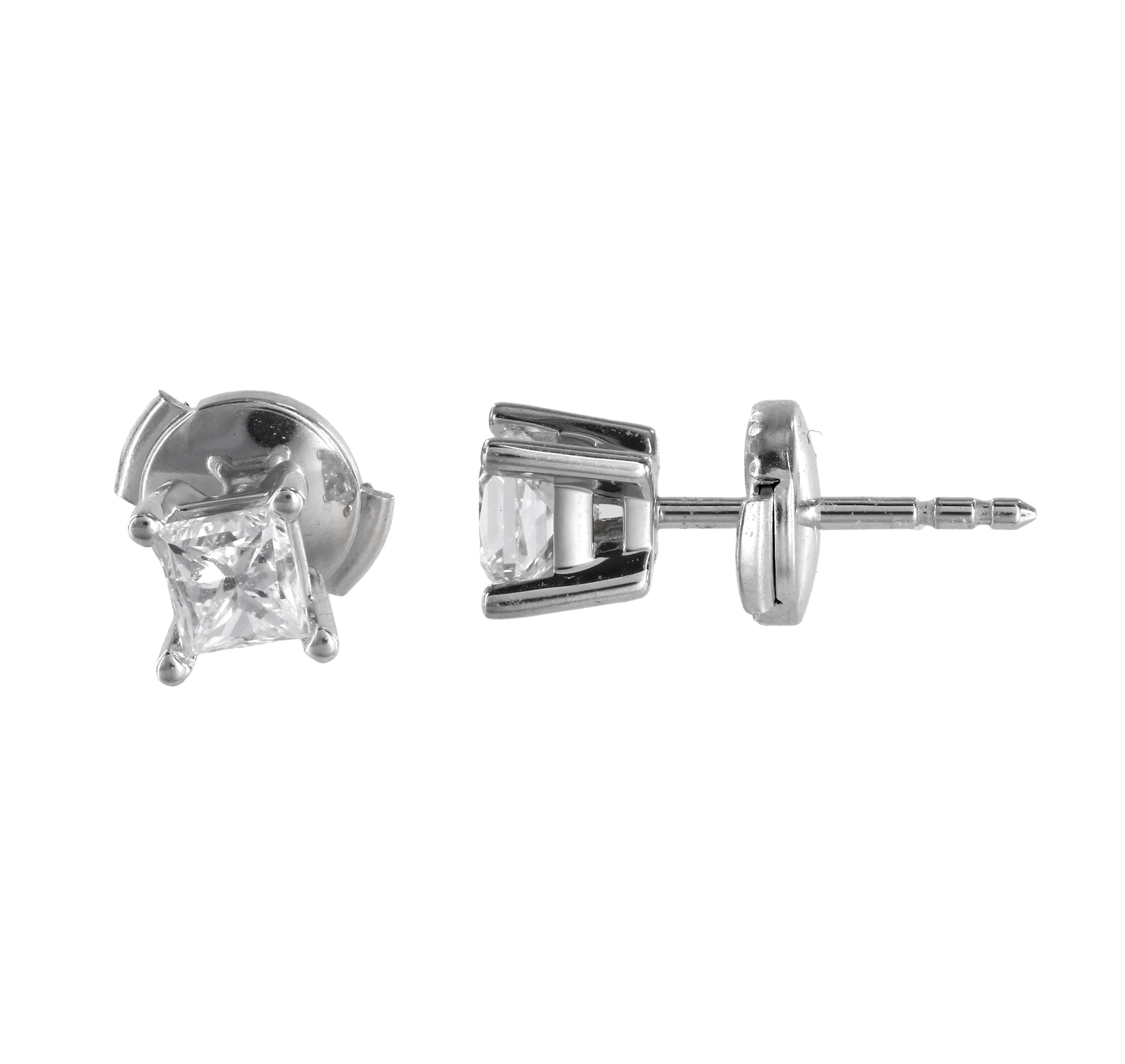 Boasting a total weight of 0.70 carats. Featuring dazzling princess-cut diamonds set in elegant white gold, these studs exude timeless sophistication and sparkle. Perfect for adding a touch of luxury to any outfit.