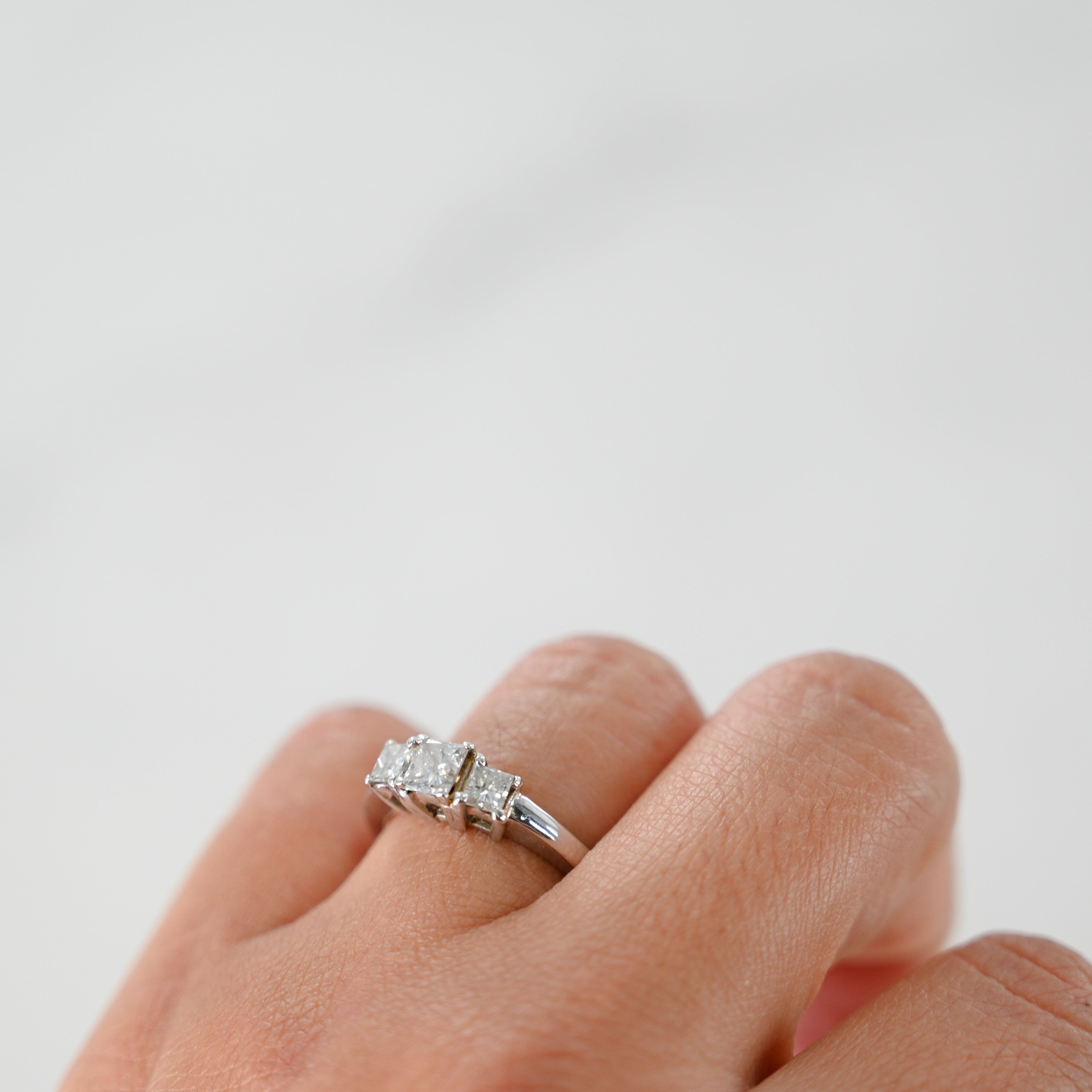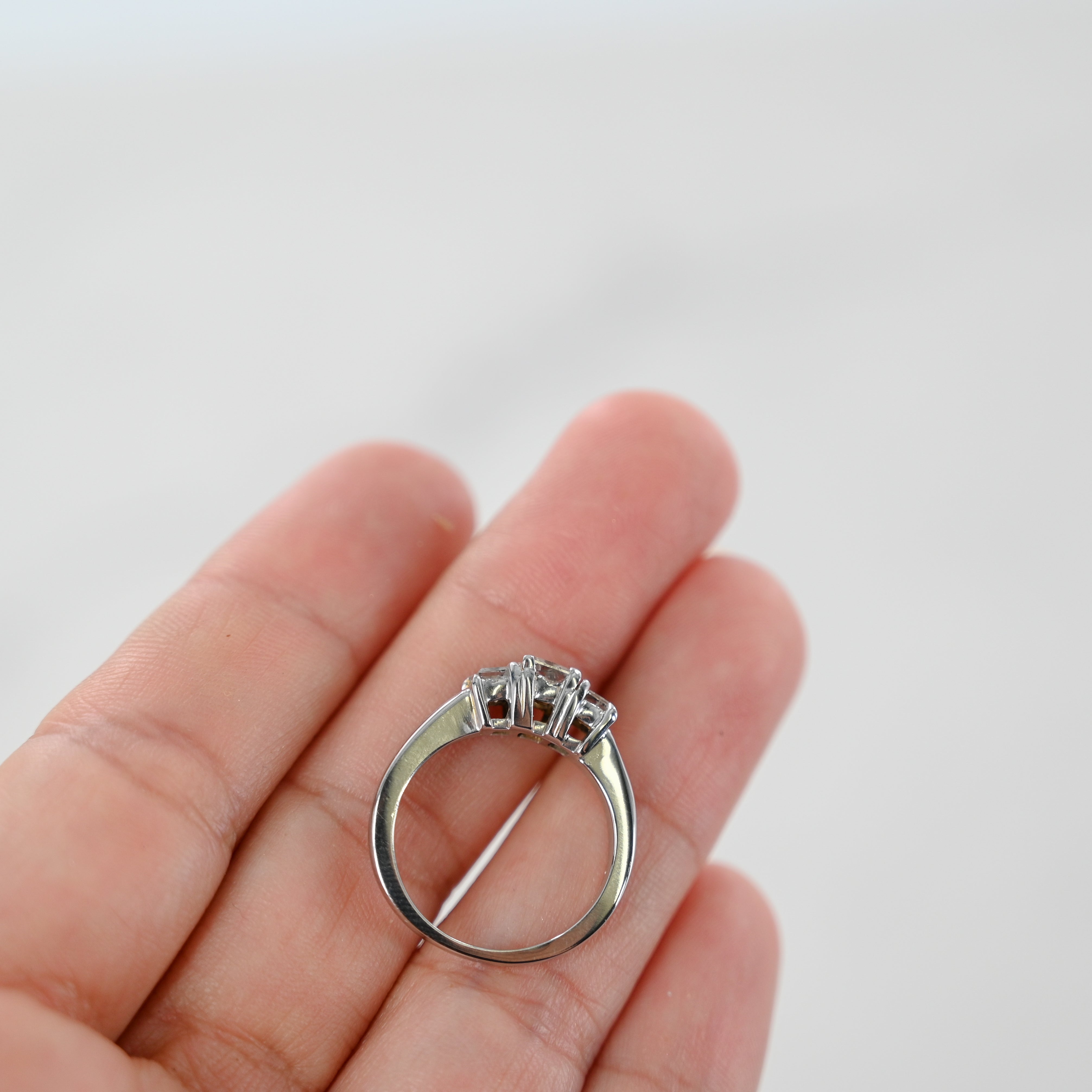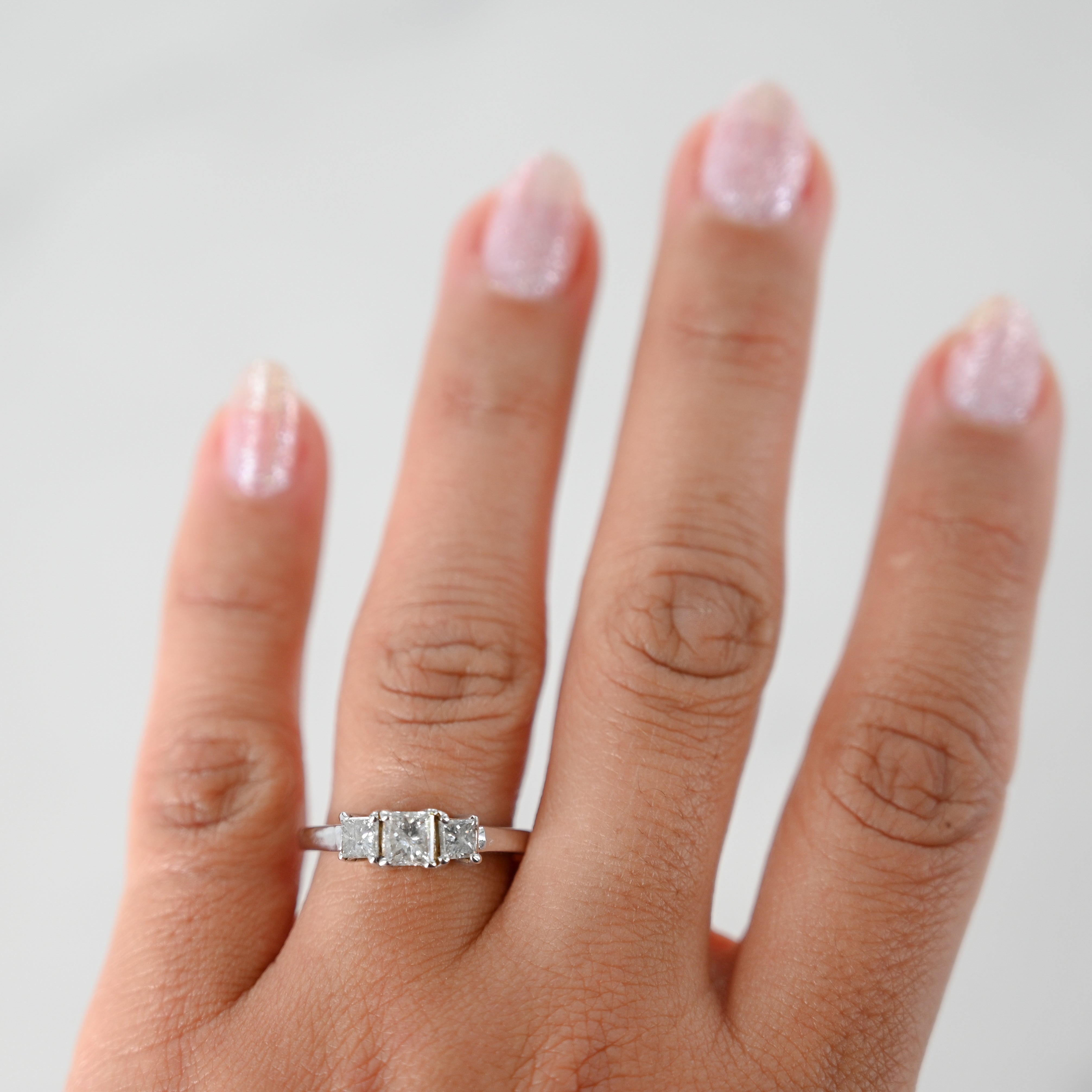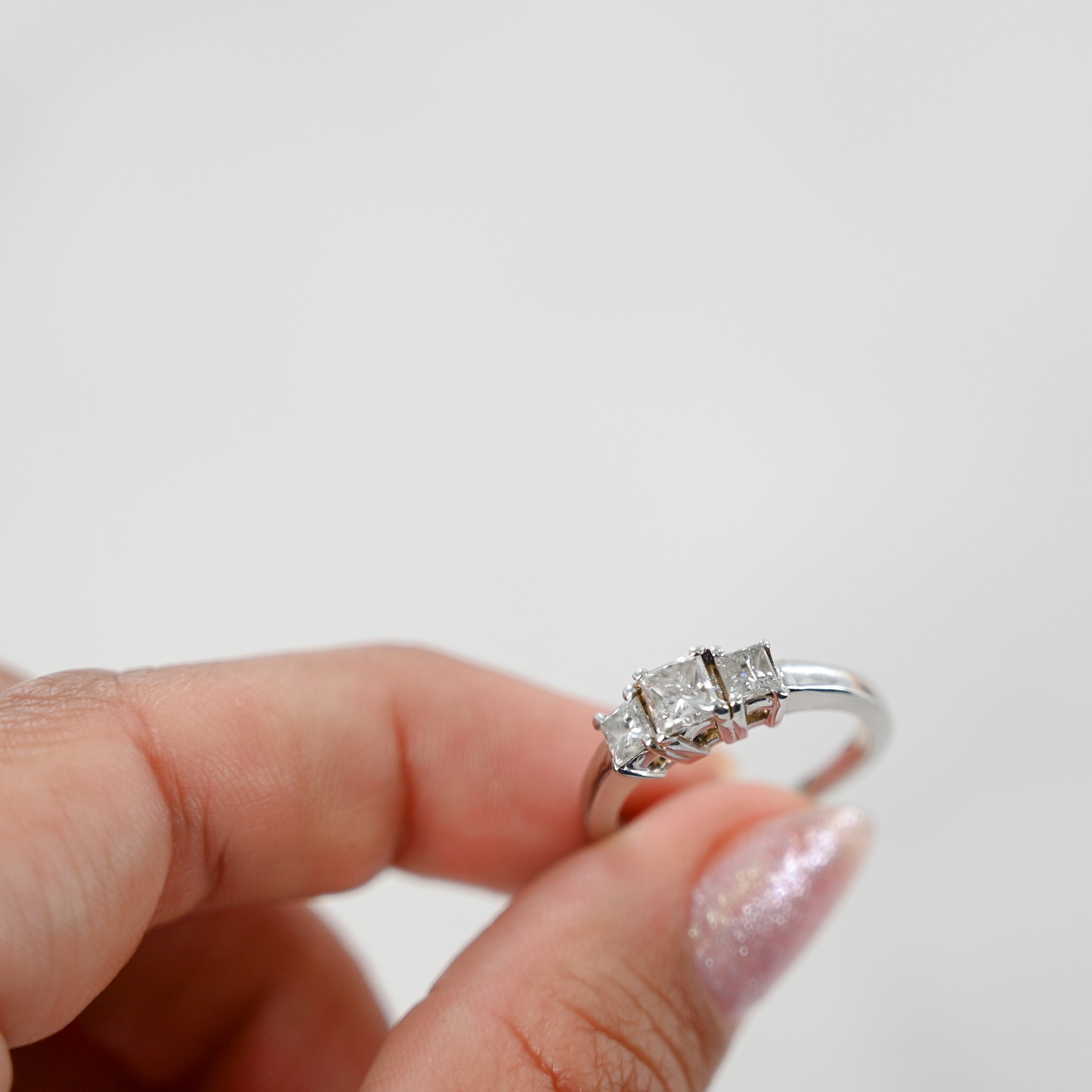 14K White Gold Diamond Princess-Cut Three Stone Anniversary Engagement Ring 1.00Ctw