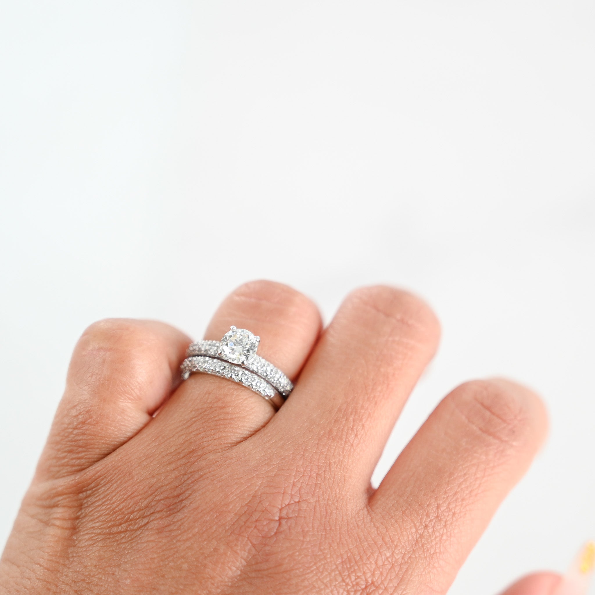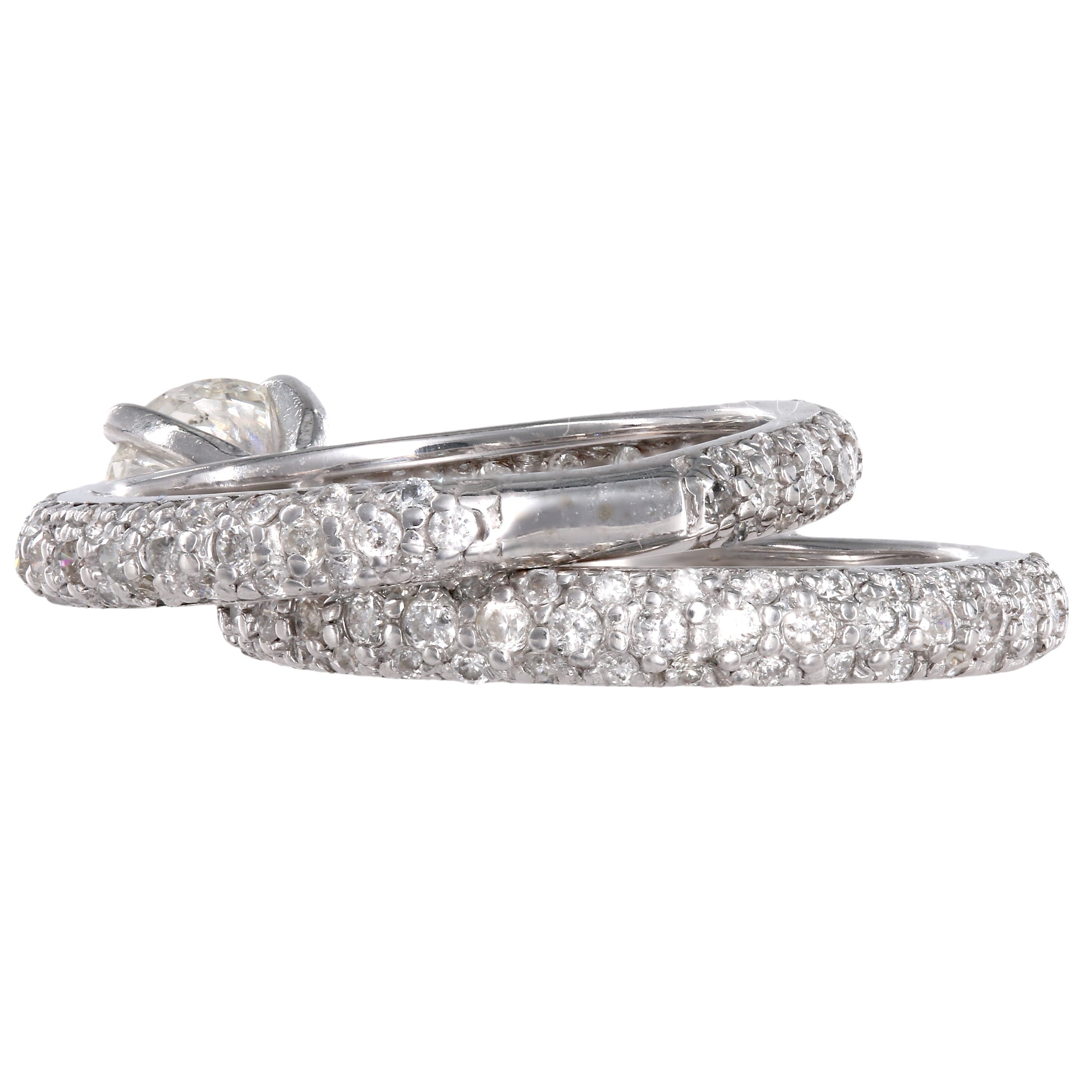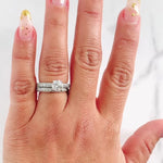 This timeless ensemble features a radiant solitaire diamond on the engagement ring, complemented by a dazzling eternity band. Crafted in elegant white gold, this set is a symbol of everlasting commitment and sophistication, perfect for your journey together