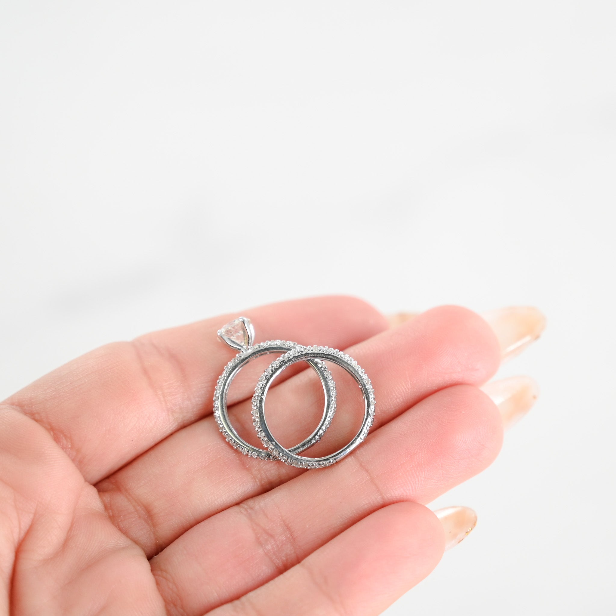 14K White Gold diamond Solitaire Eternity Engagement Ring And Wedding Band Ring Set