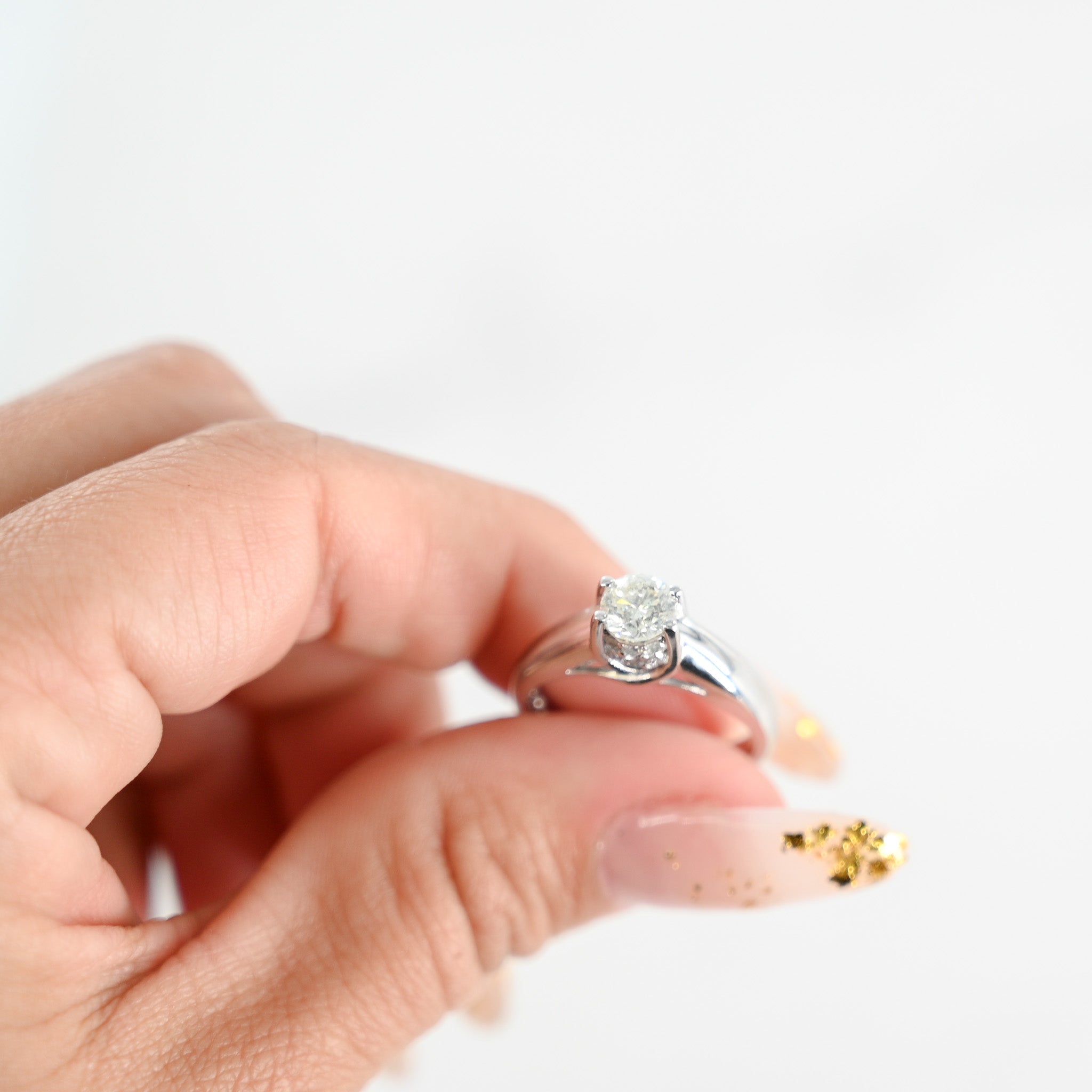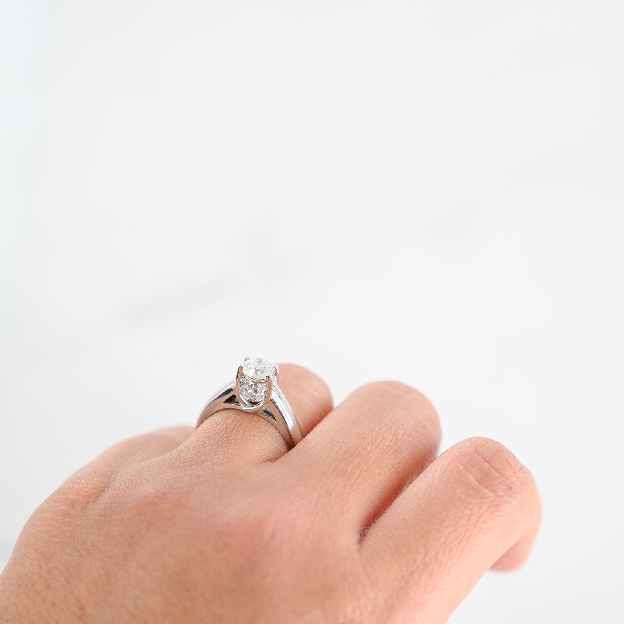 14K White Gold Diamond Solitaire With 12 Underneath Accents Diamonds Engagement Ring