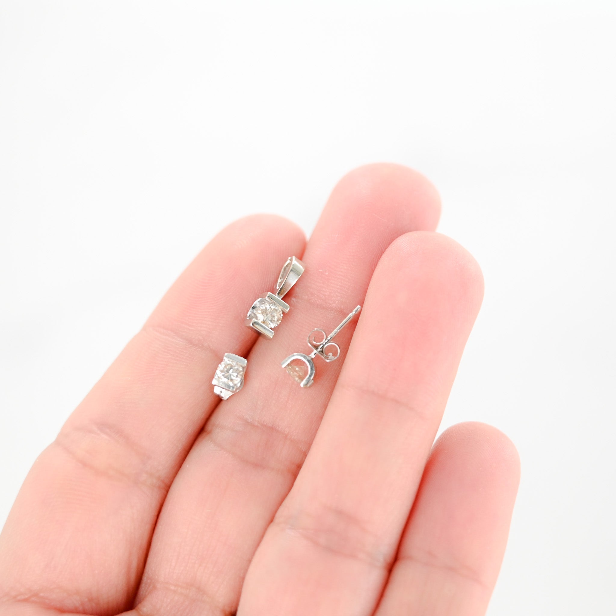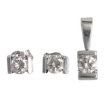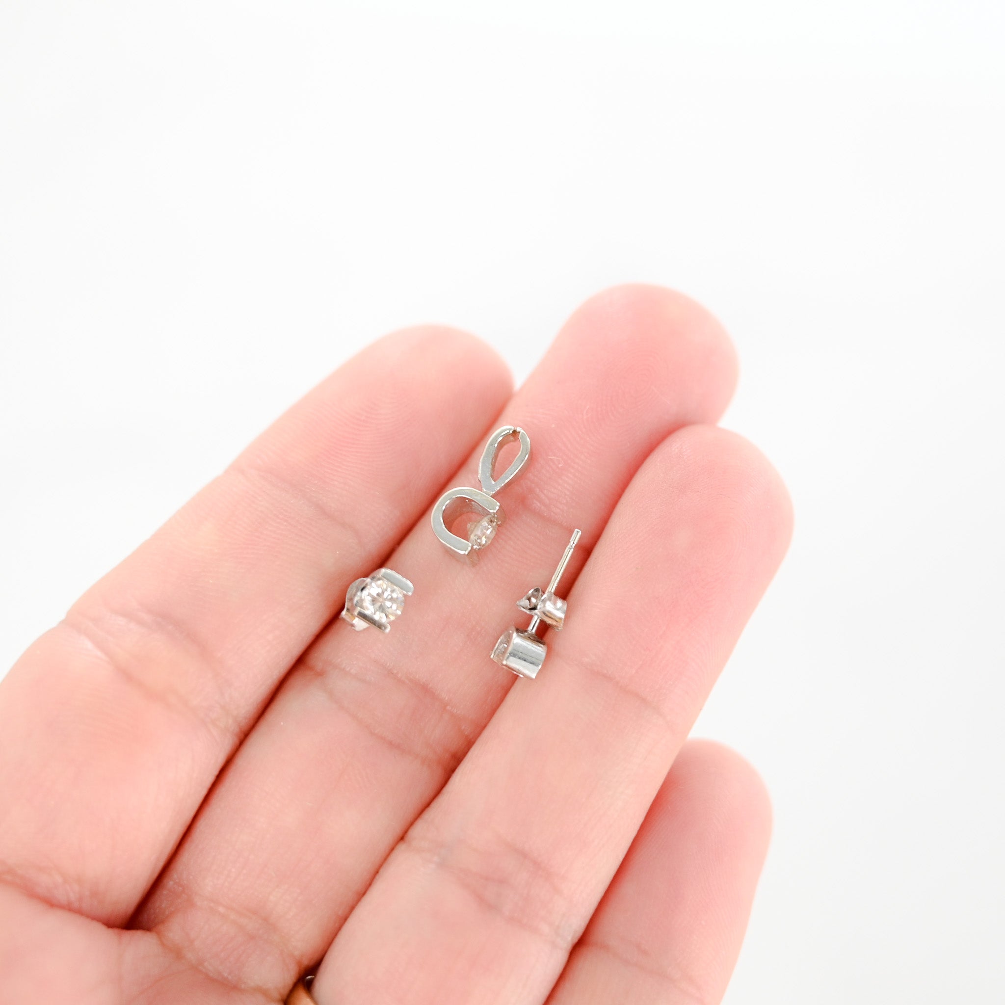 14K White Gold Diamond Stud Earrings And Small Pendant Jewelry Set