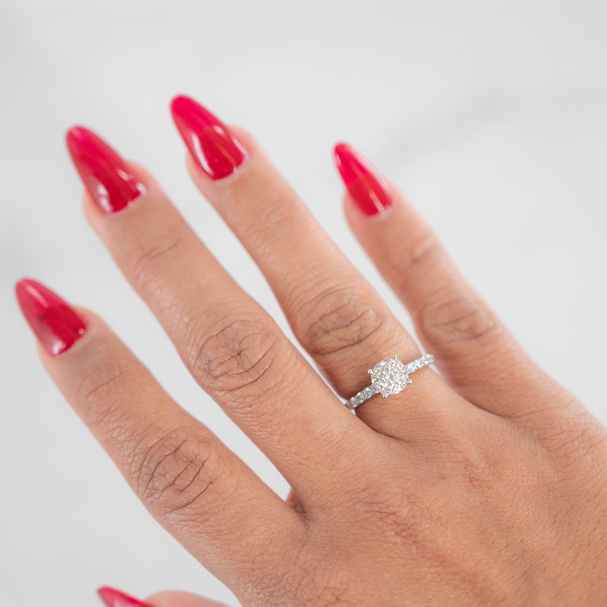 Elevate your love story with our 14K White Gold Diamond Vintage Illusion Setting Cluster Engagement Ring. This captivating vintage design, with its illusion setting and clustered diamonds, offers a timeless and elegant symbol of your commitment and love