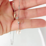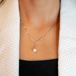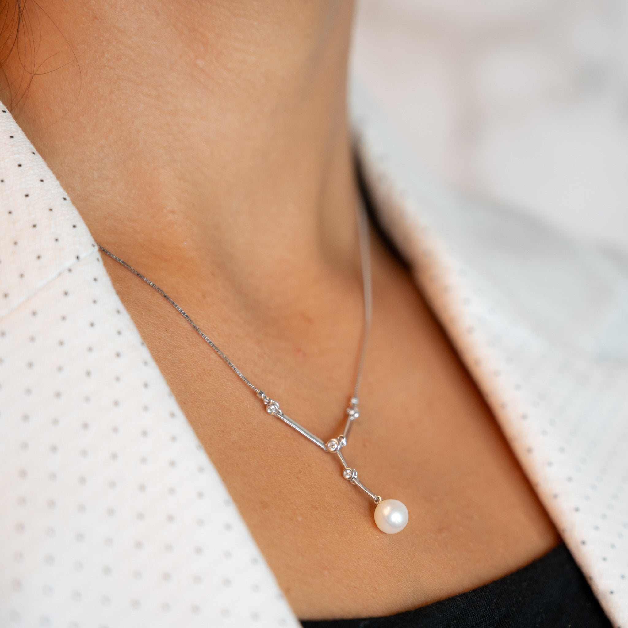 Diamond Pearl Necklace, 14K Pearl Necklace, Genuine Freshwater Pearl Pendant, Solitaire Diamond, 14K White Gold, Bridal Wedding Jewelry