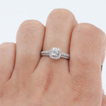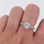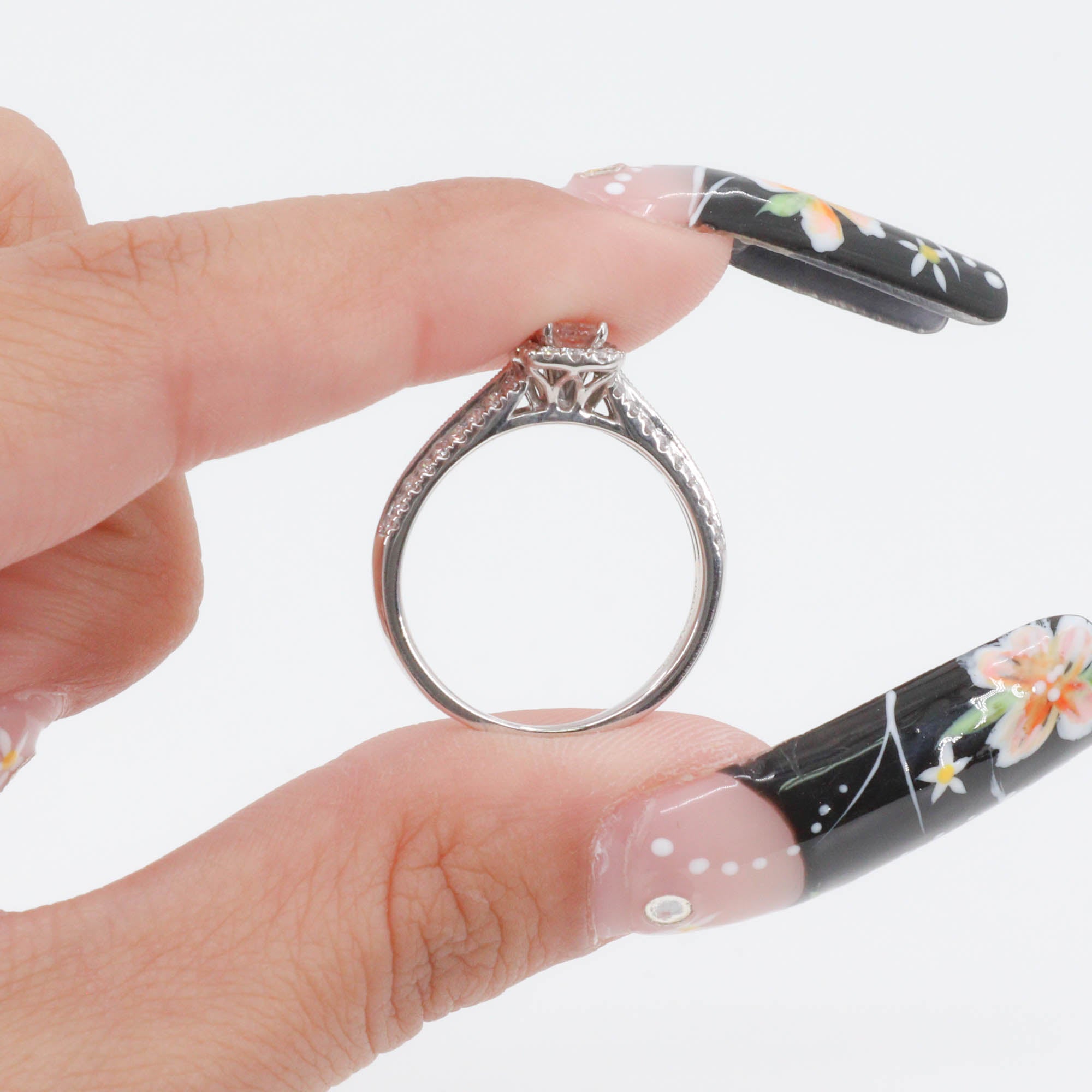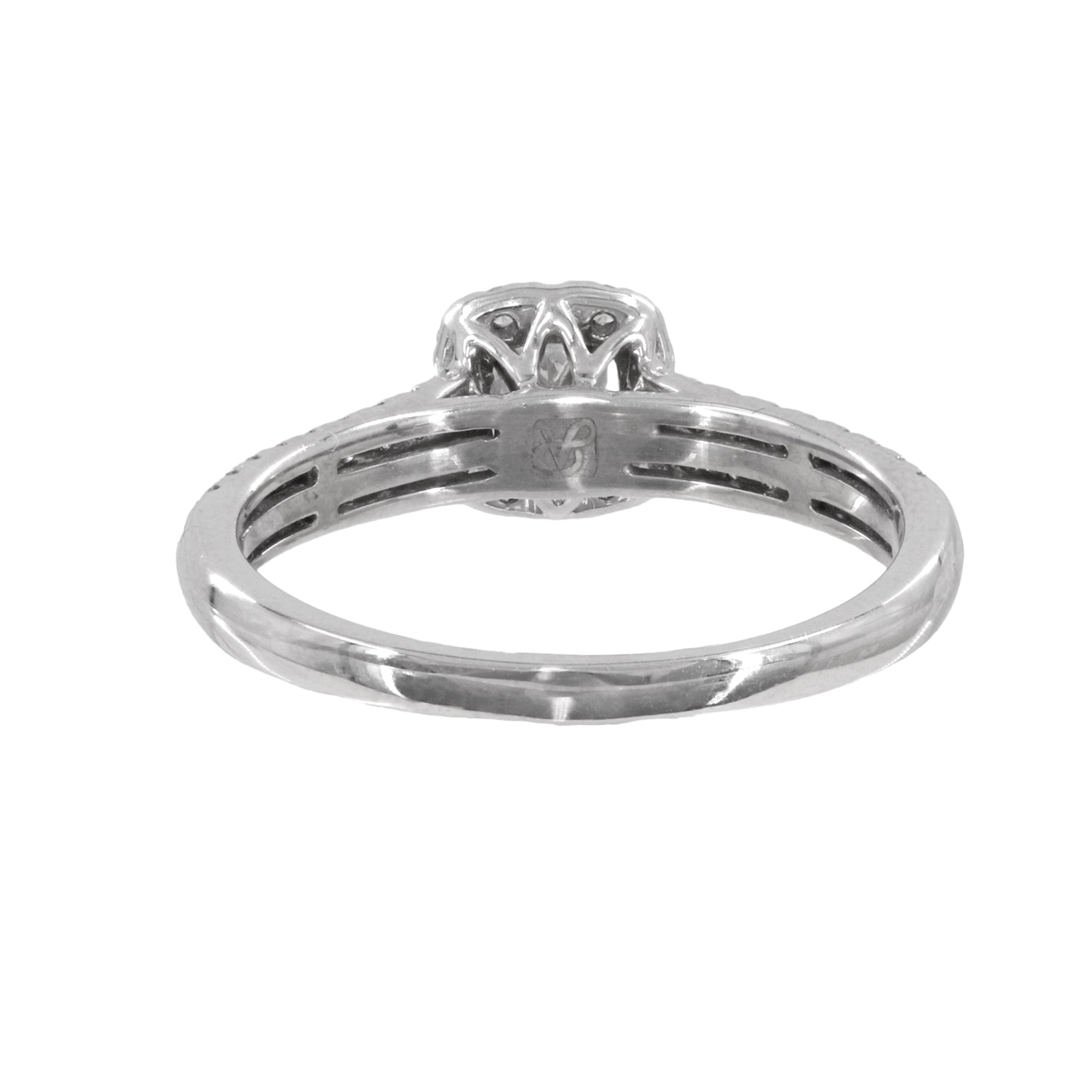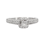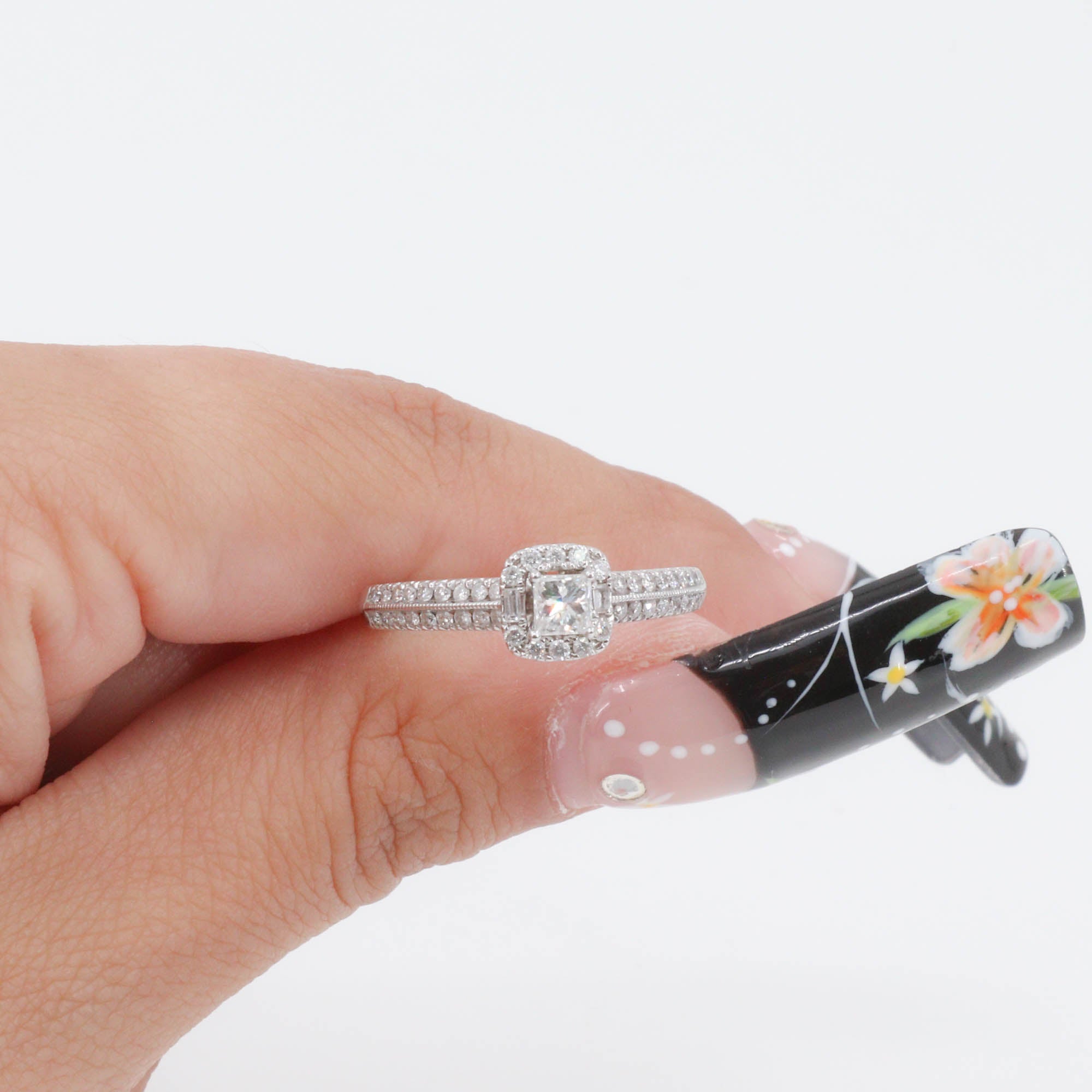 Celebrate your love with this 14k White Gold Princess Cut Diamond Engagement Ring. Featuring a 0.30 carat princess cut center diamond (I2 clarity, G-I color) flanked by two baguette cut diamonds (0.047ct each) and 36 round brilliant cut diamonds (0.01ct each, I1 clarity, G-H color), this ring has a total carat weight of 0.75ct. With a 7.25mm head, 2.0mm shank, and size 8.5, it combines elegance and brilliance, weighing 3.5 grams. Crafted from 14k white gold, it's the perfect symbol of your enduring love..