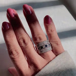 14k White Gold Princess Cut Diamond & Sapphire Channel-Set Triple Band Ring
