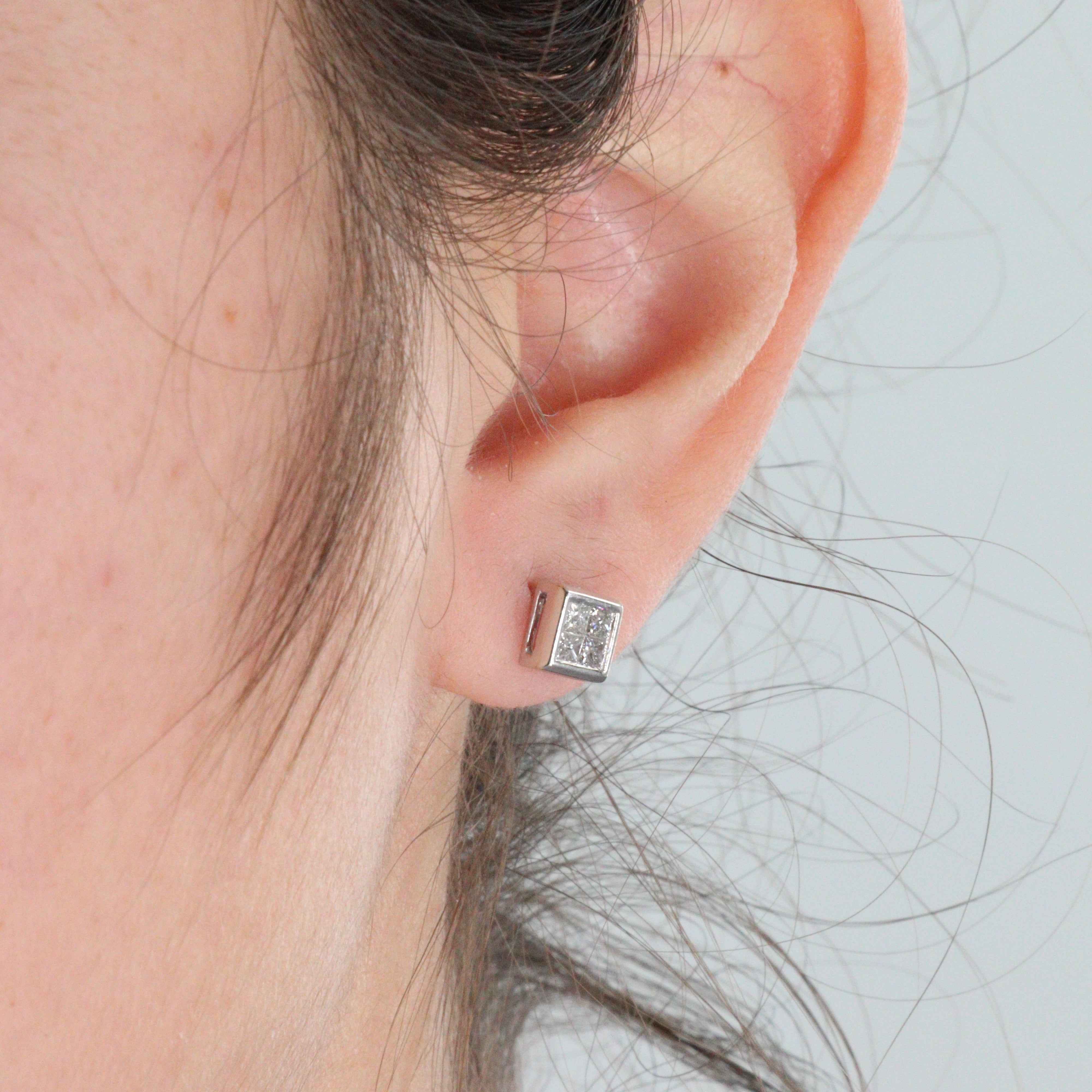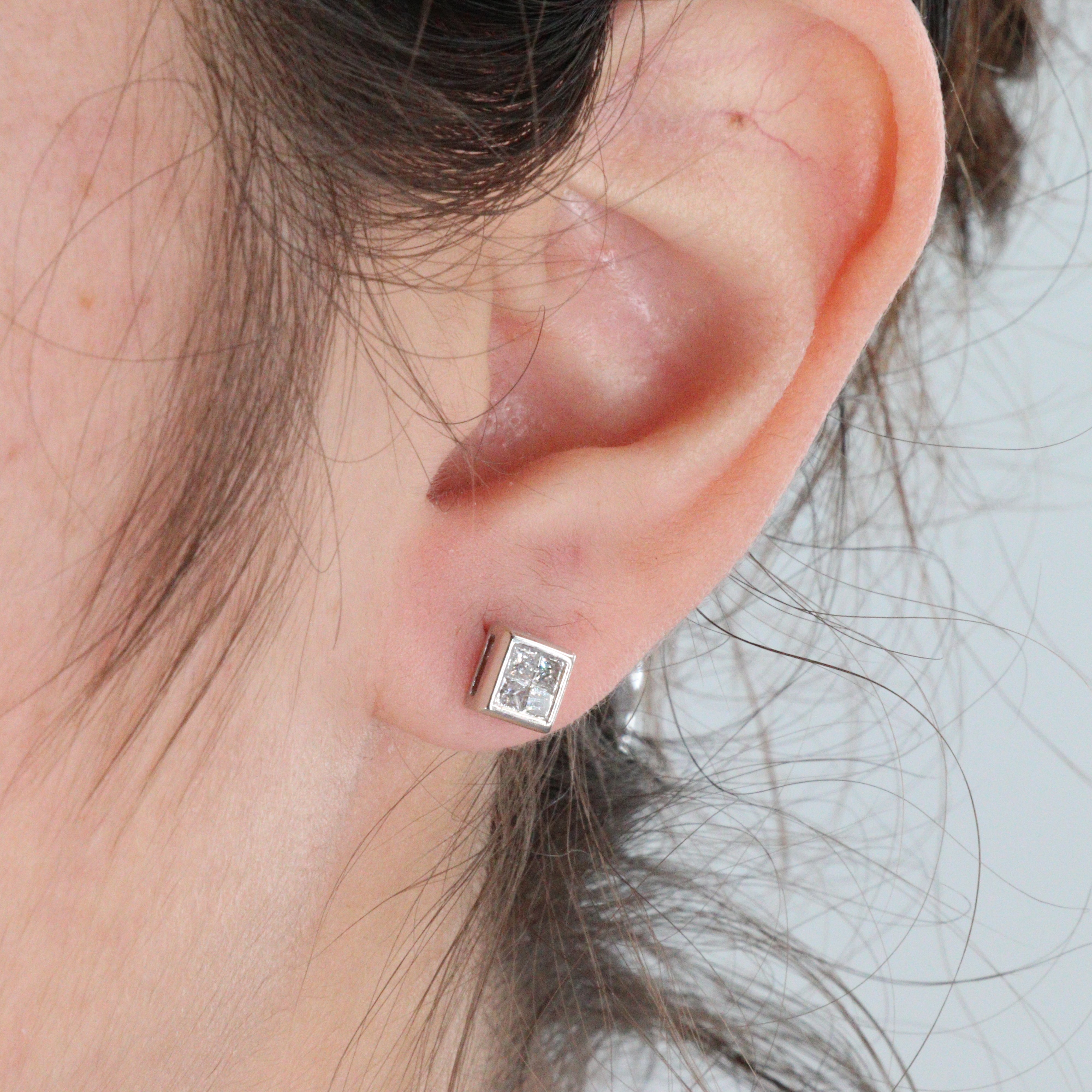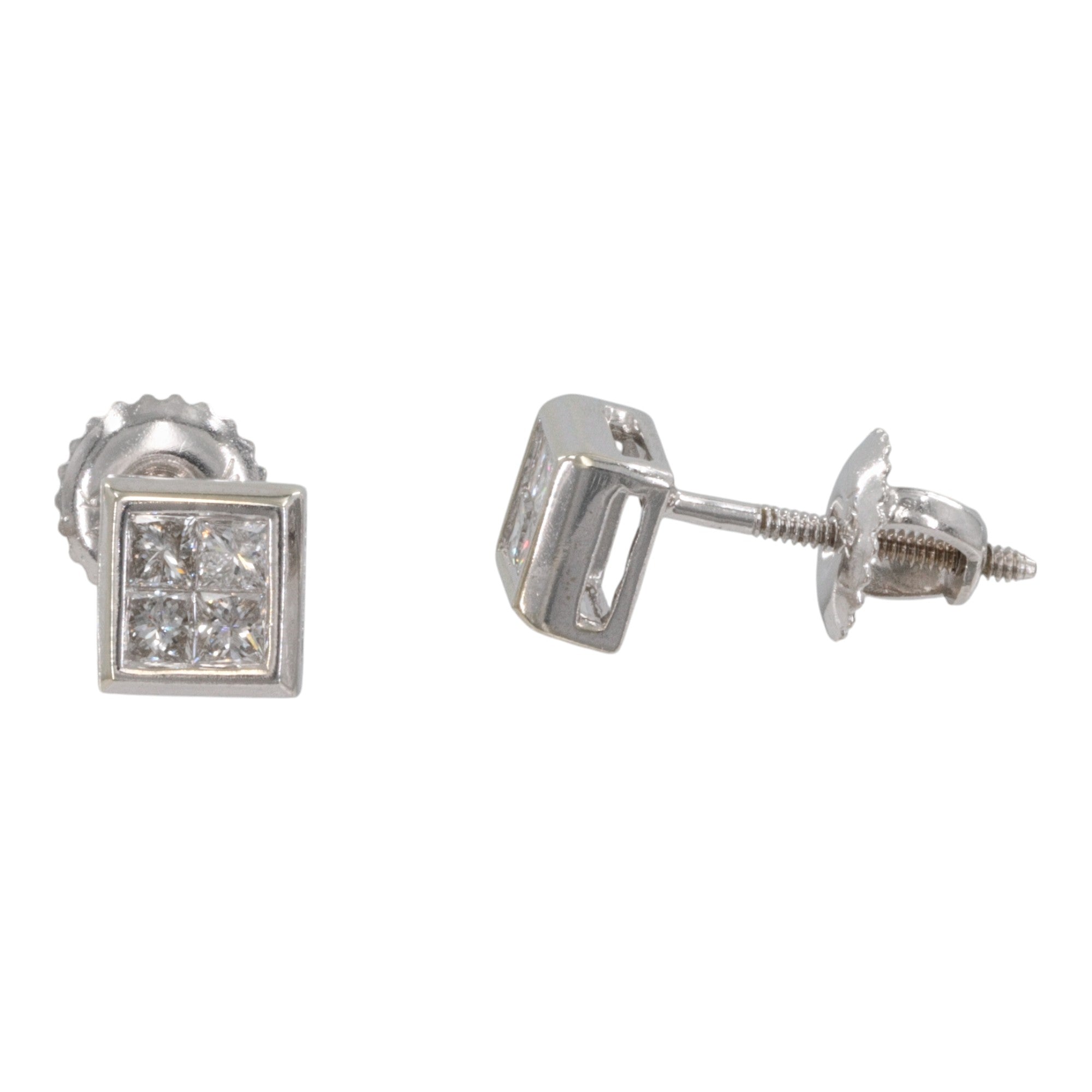 14k White Gold Princess Cut Diamond Stud Earrings