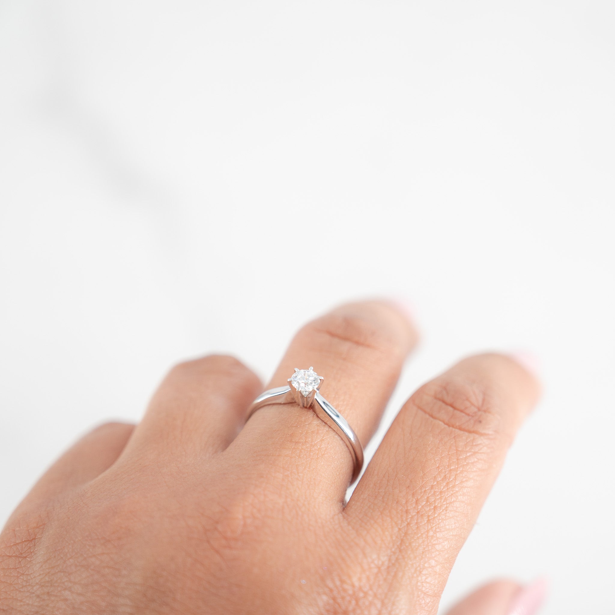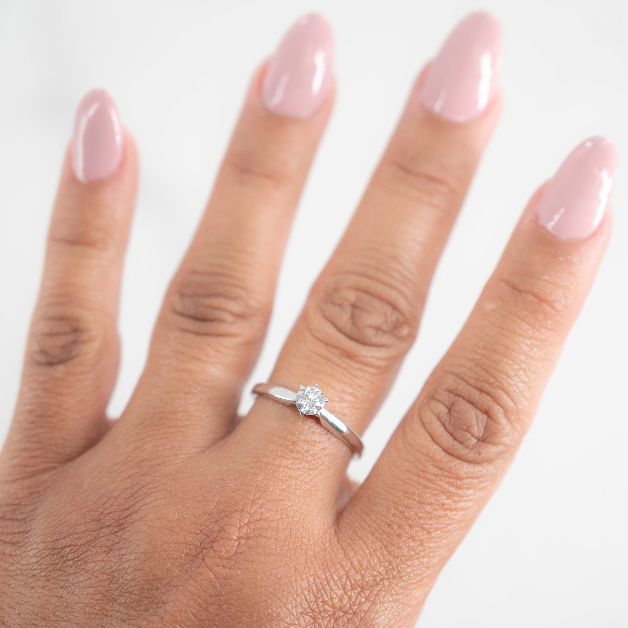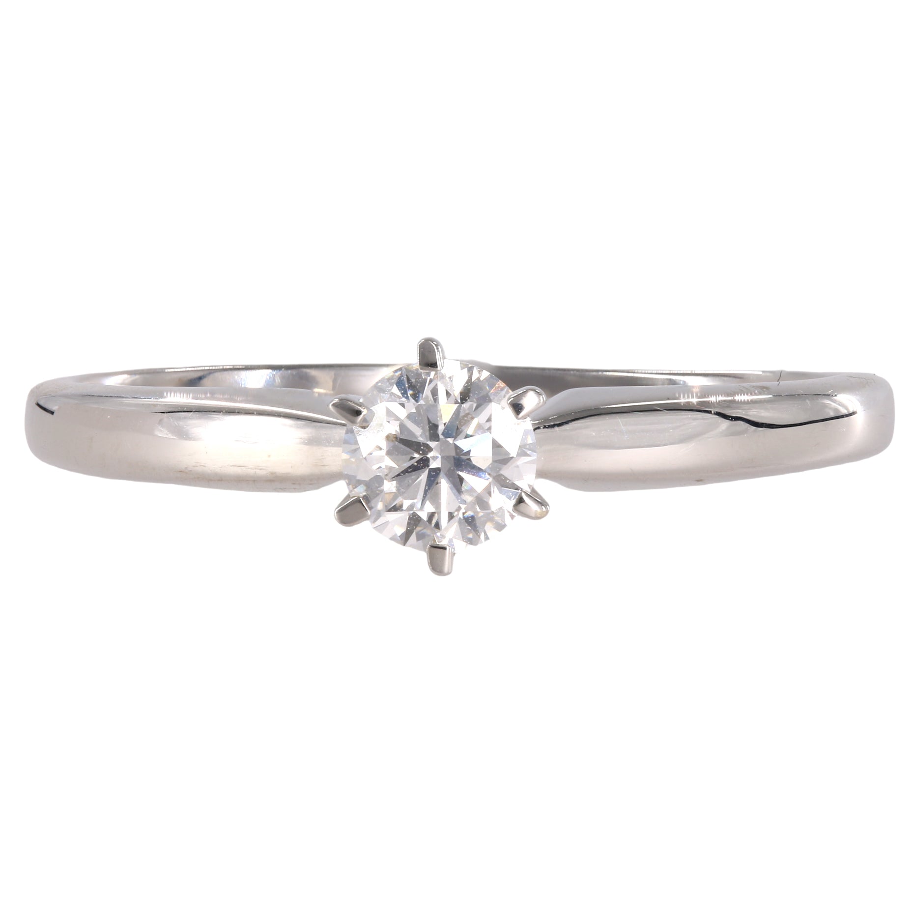This stunning Ladies 14k White Gold Solitaire Diamond Ring features a beautiful center round cut diamond of 0.40ct, with a total carat weight of 0.40ctw, and it is crafted with 2.4 grams of 14k White Gold. Make a striking statement with this gorgeous diamond ring.