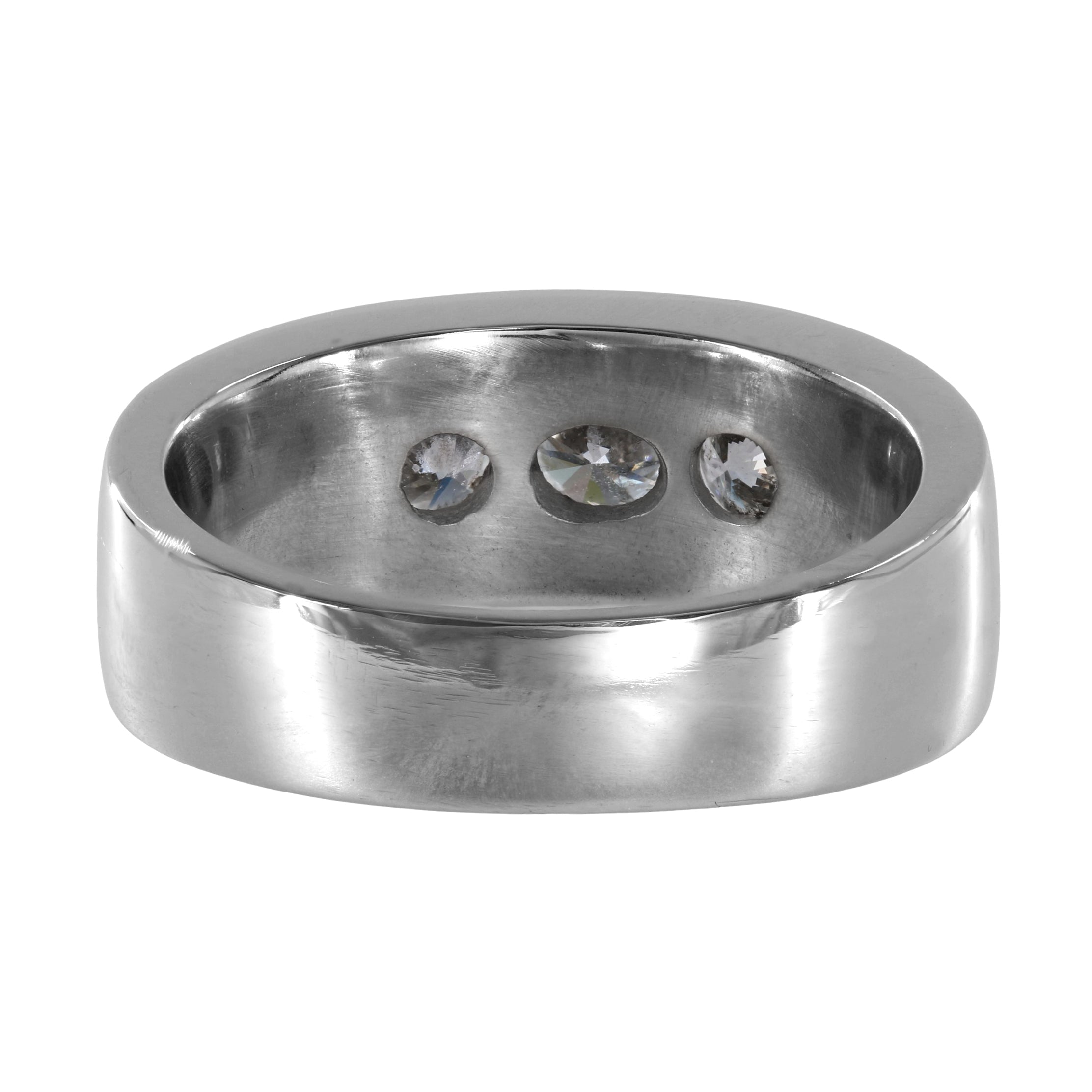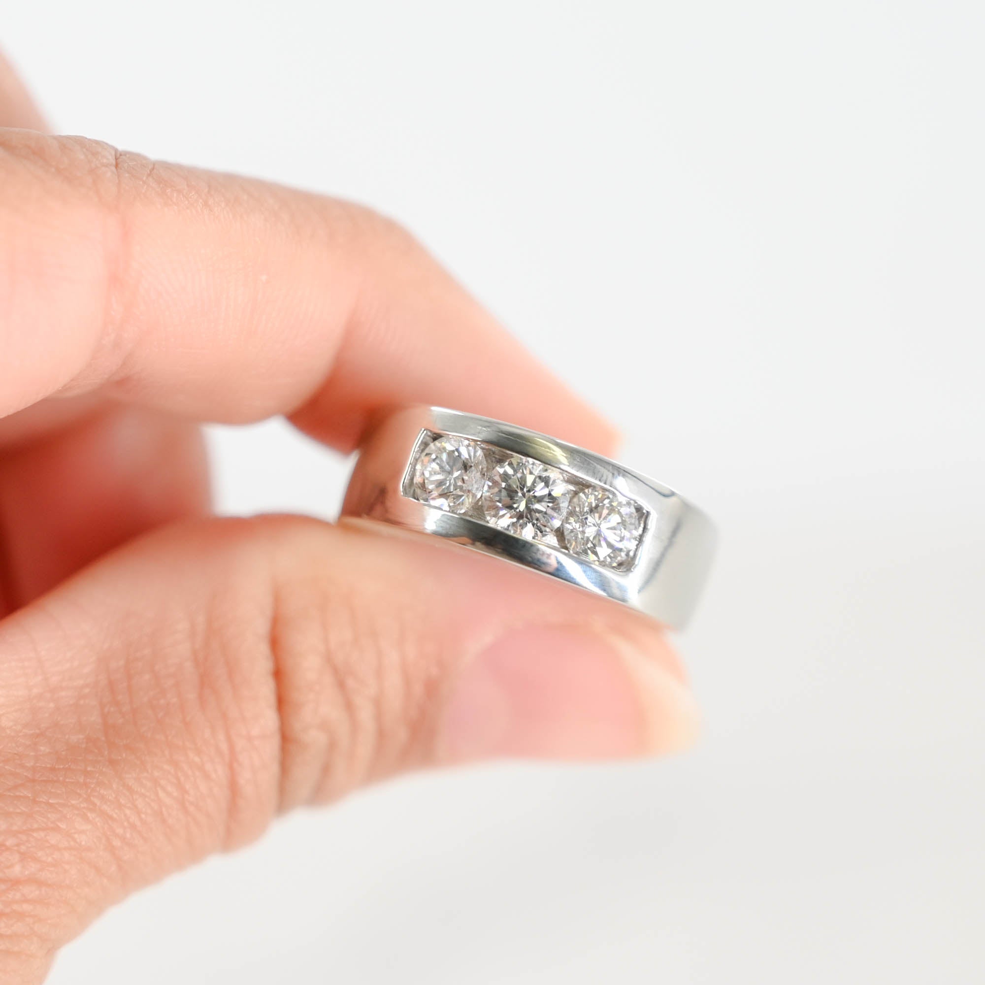 14K White Gold Three Diamond Men's Band Ring 1.38Ctw