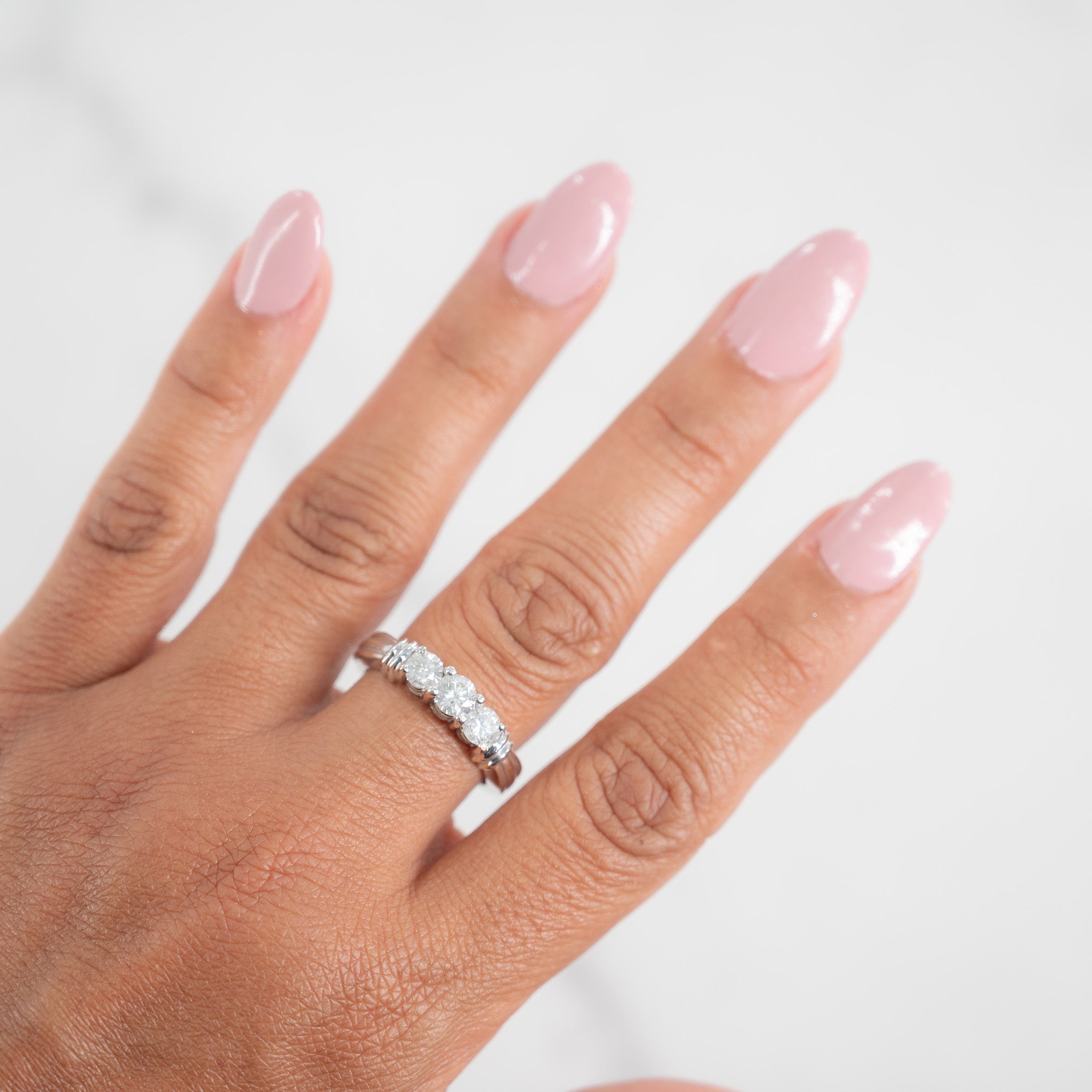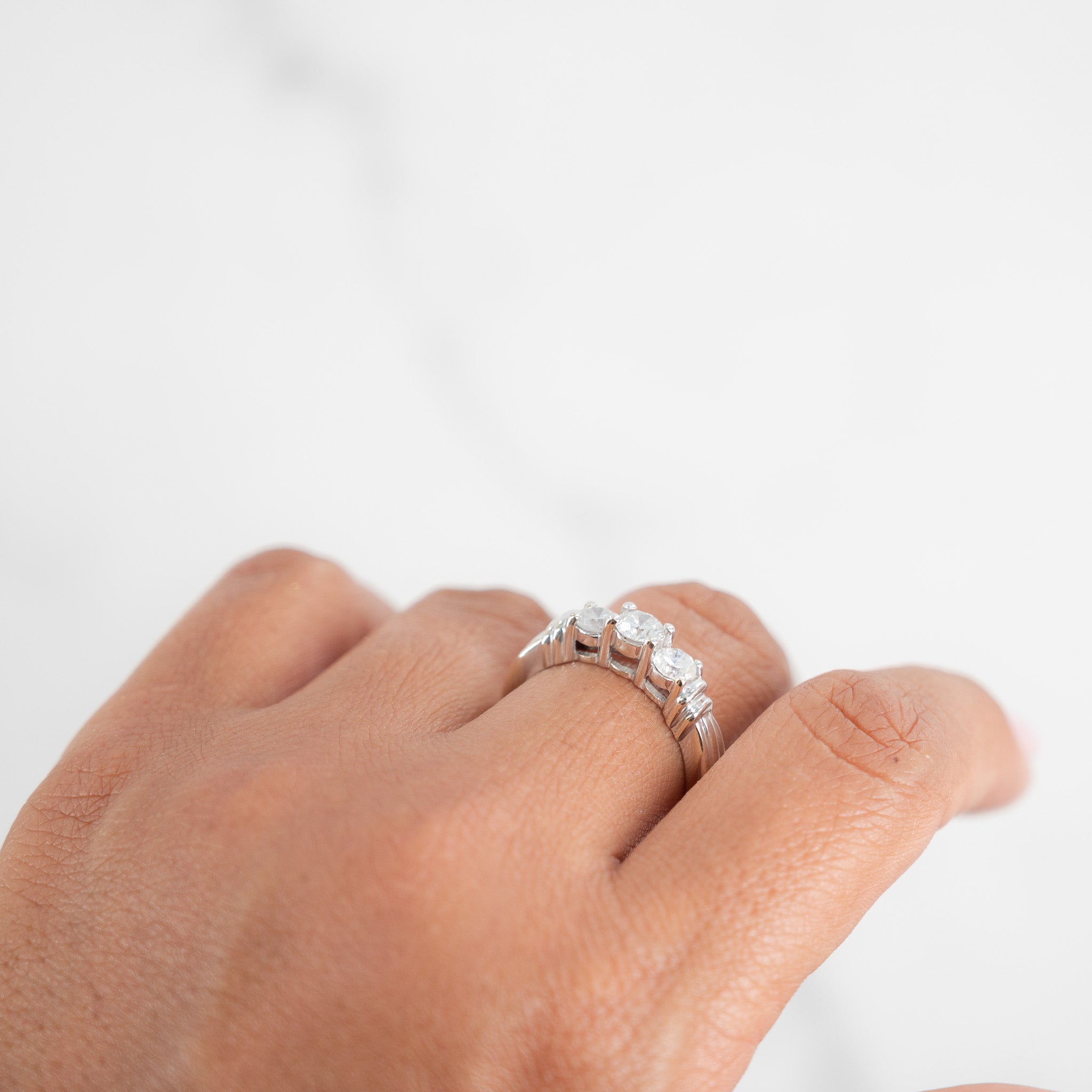 14K White Gold Three Stone Anniversary Engagement Diamond Ring