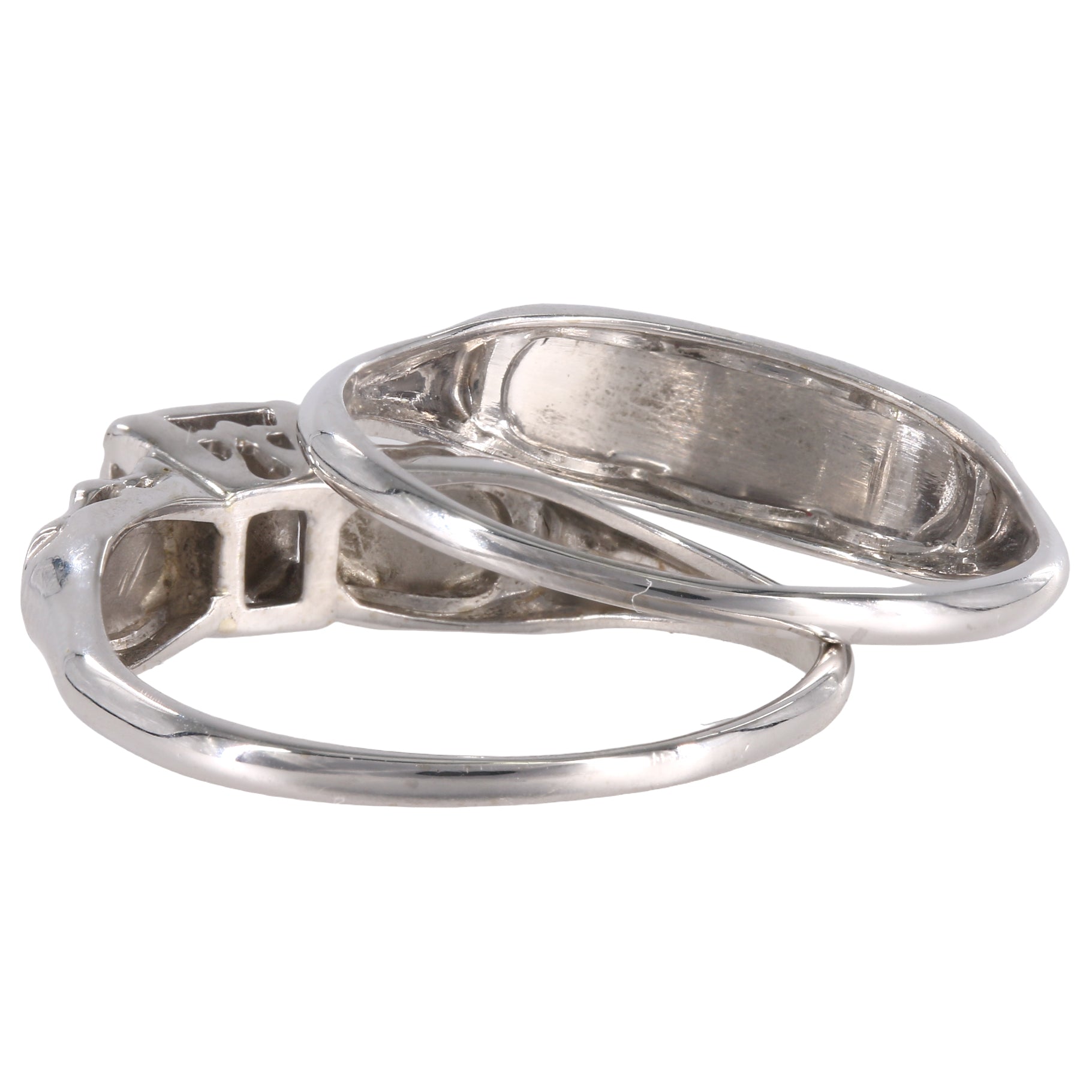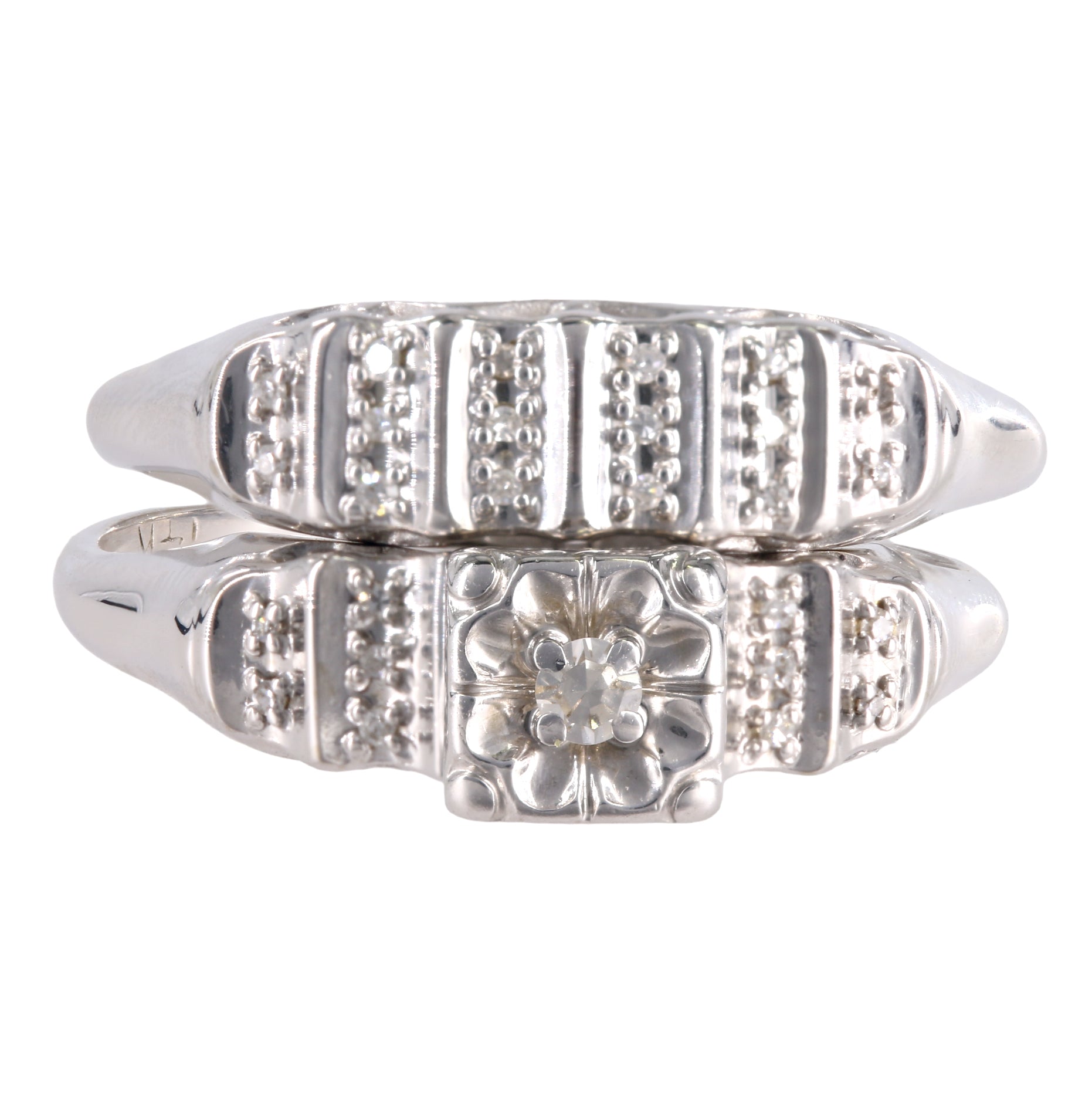 14k White Gold Wedding Set Diamond Engagement Ring with Matching Diamond Wedding Band