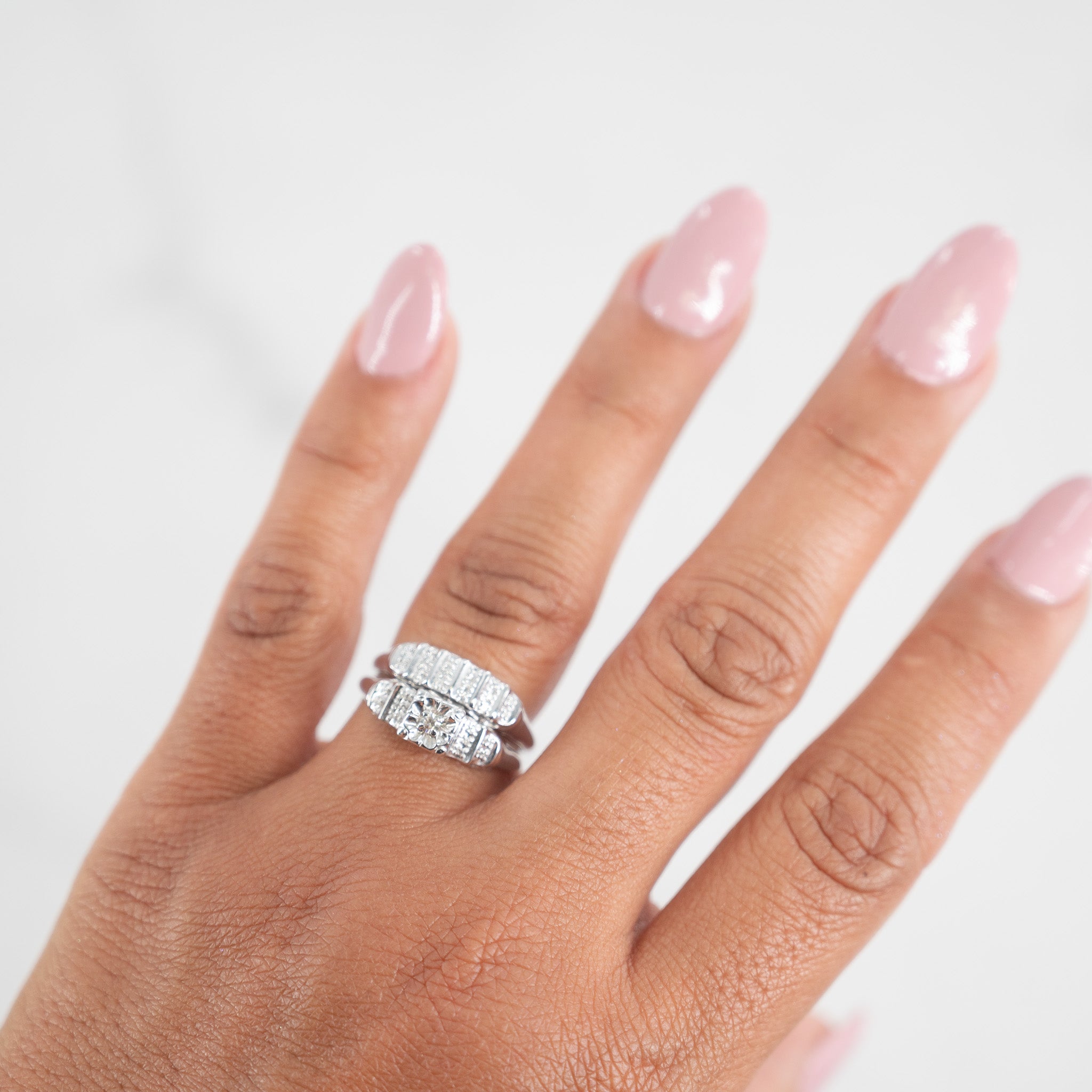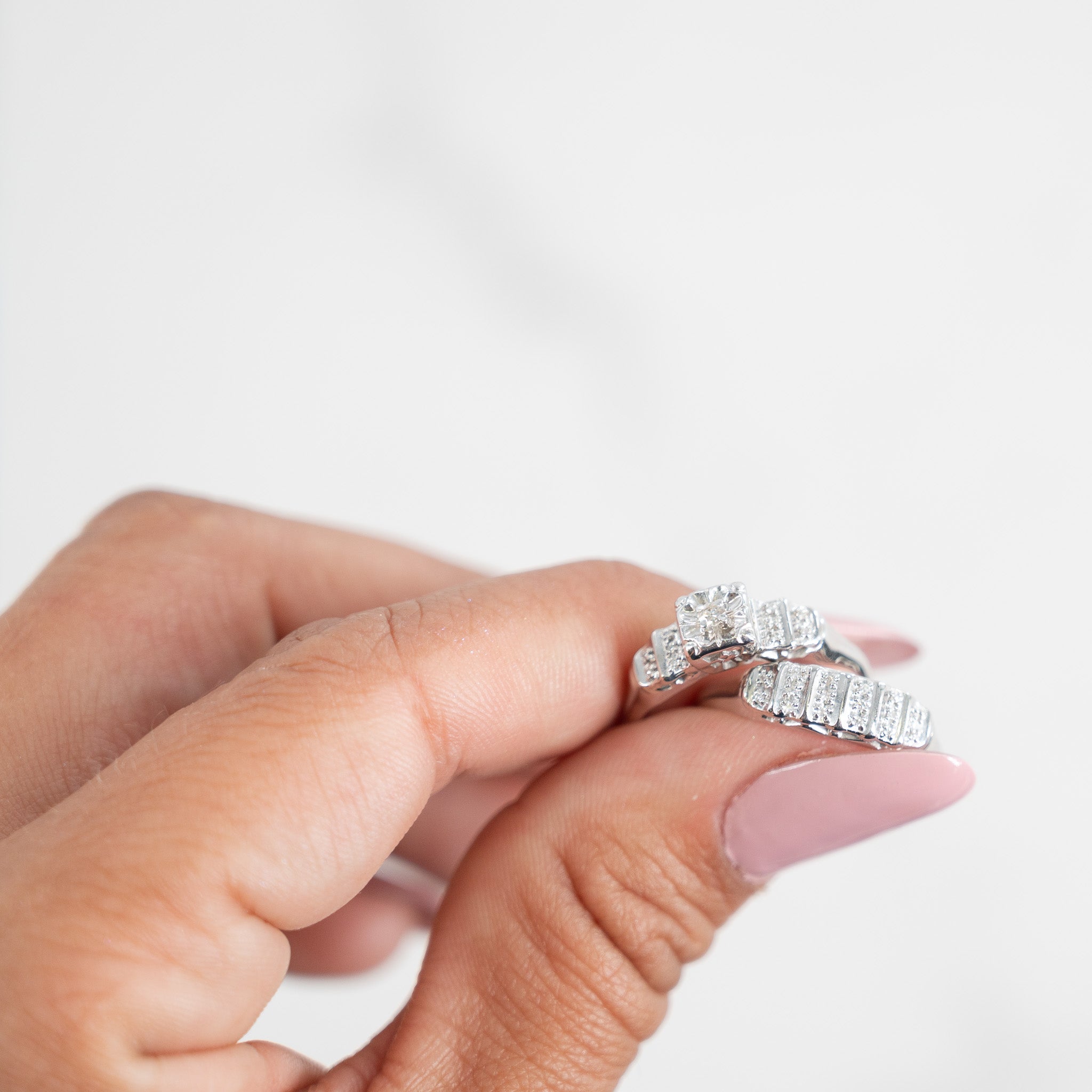 This beautiful Ilussion Engagement Diamond Ring And wedding Band diamond set is perfect for an engagement or any other occasion.