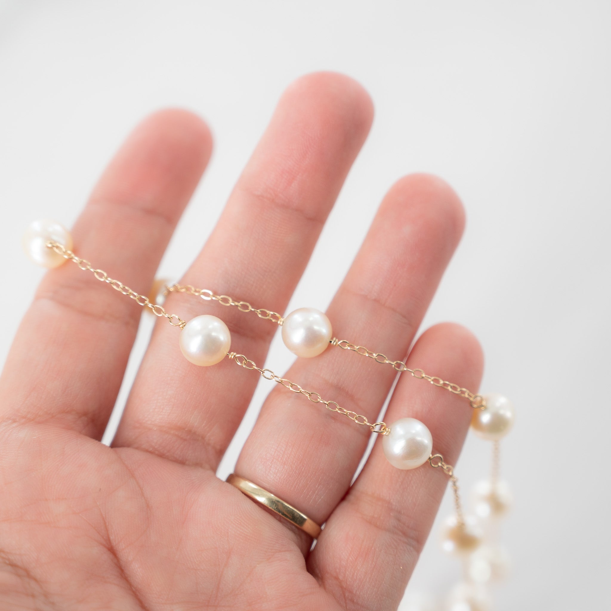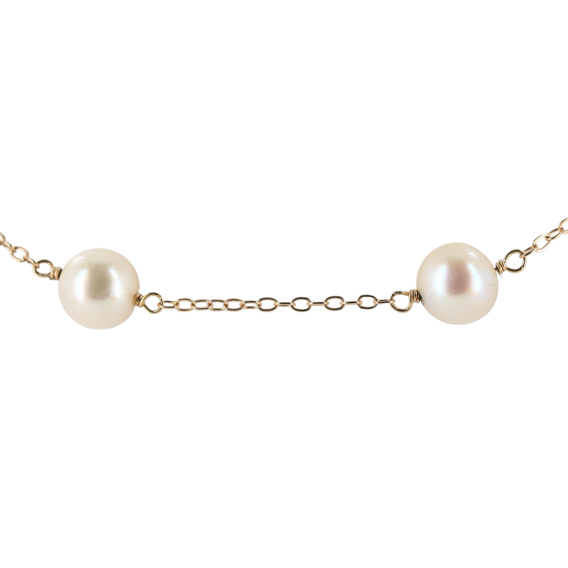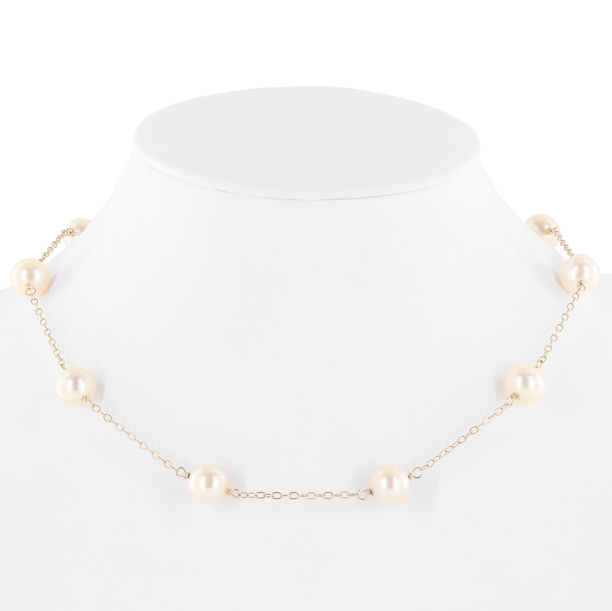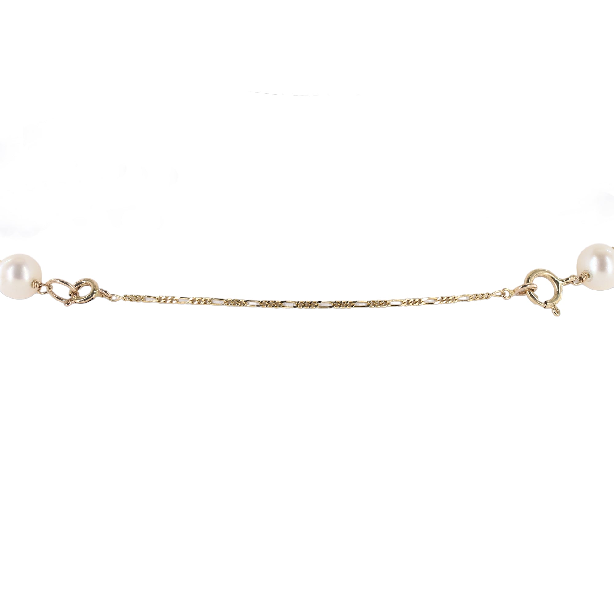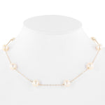 14K Yellow Gold 12 Pearls Rolo Link Chain Necklace