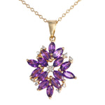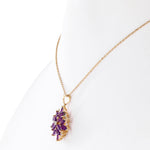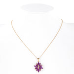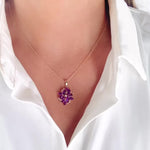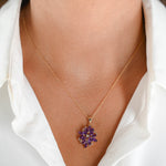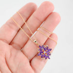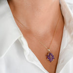 14K Yellow Gold Amethyst And Diamond Flower Charm Rolo Link Necklace