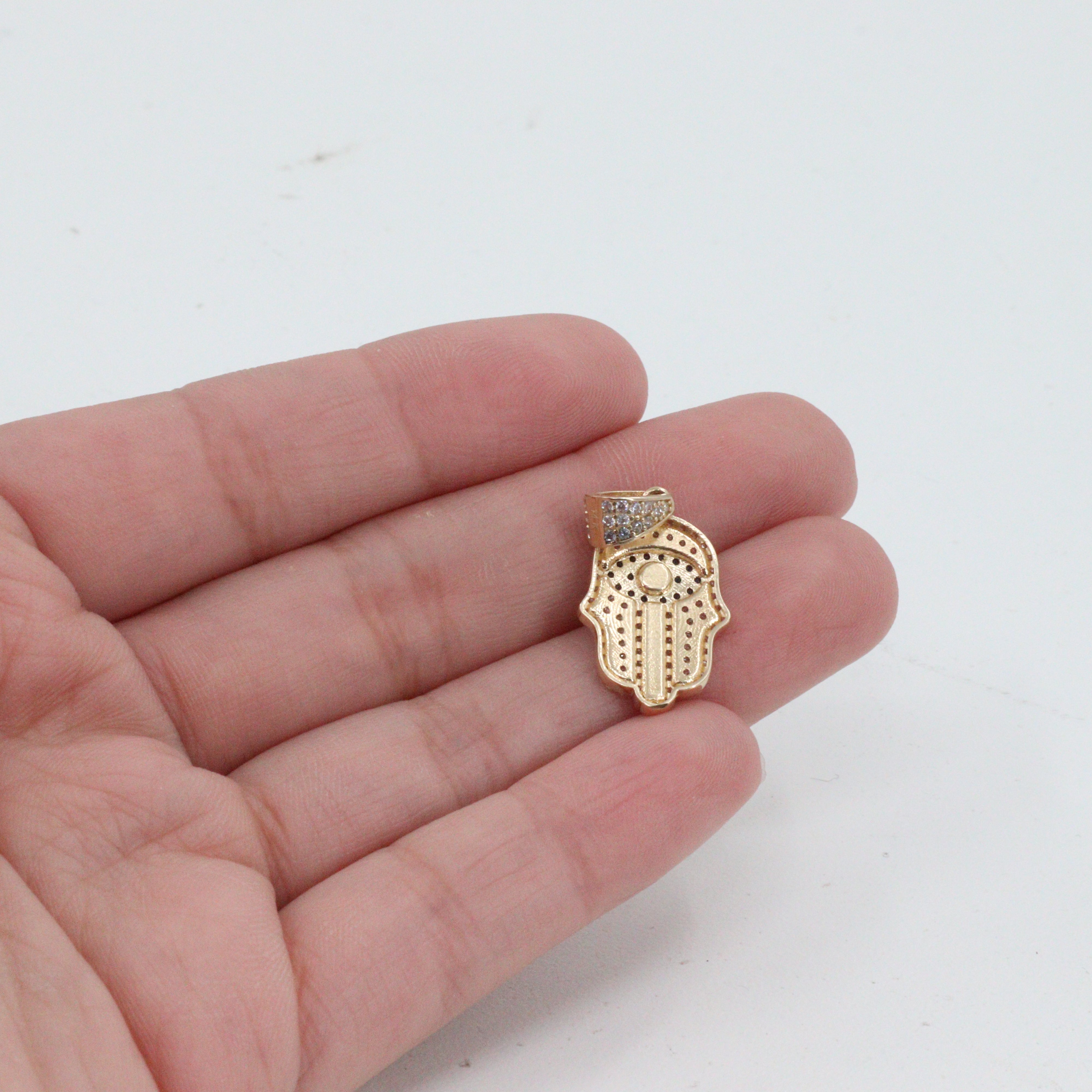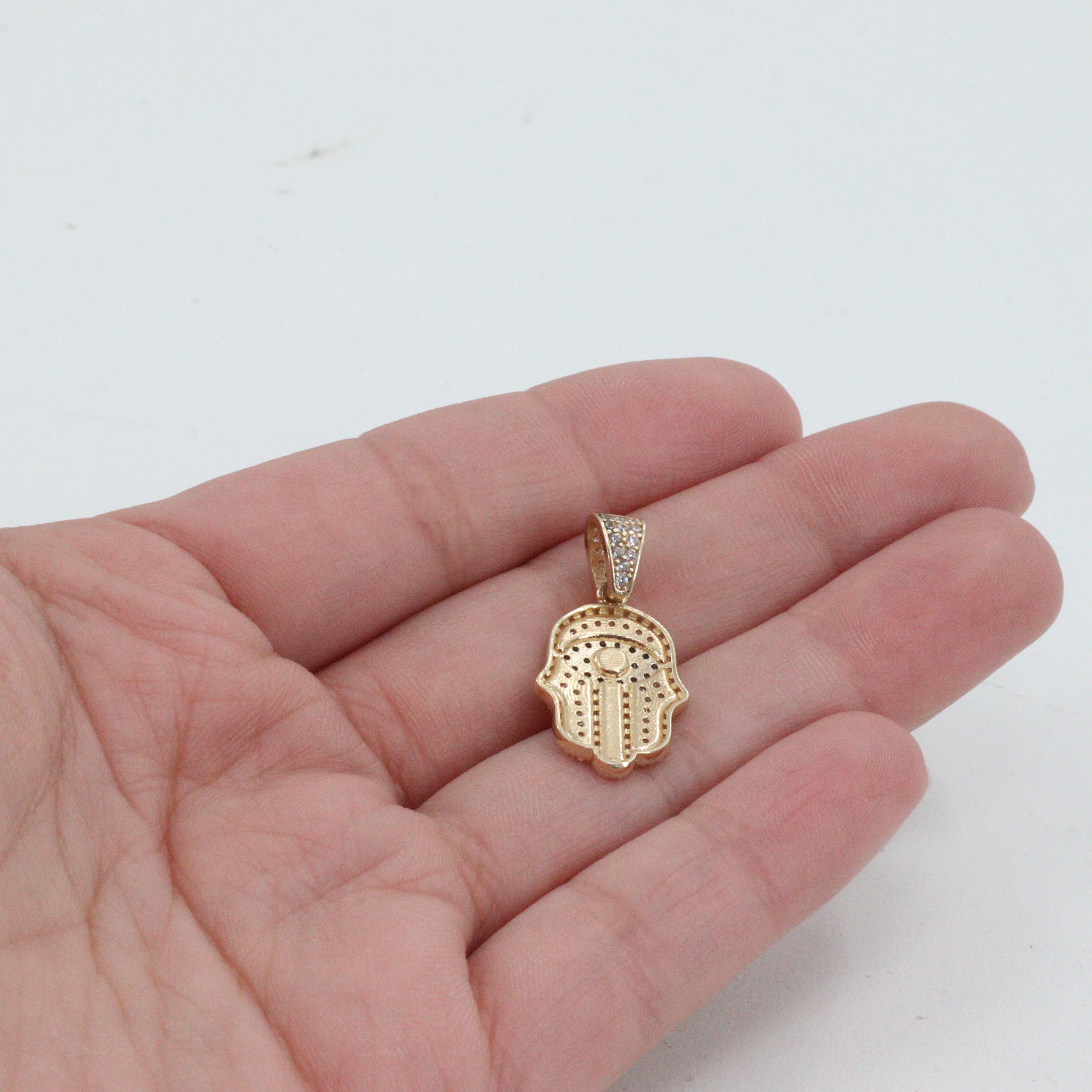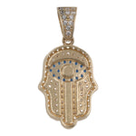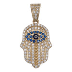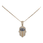 14k Yellow Gold Blue and White Gemstone Hamsa Pendant