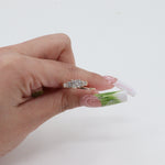 All descriptions of diamonds and gemstones we provide are based on observations made while the stones are in mounted settings and under standard lighting conditions. These descriptions, including but not limited to color, clarity, and cut, may vary slightly from those observed under different settings or lighting conditions. We strive for accuracy, but please be aware that the appearance of gemstones and diamonds can be influenced by their surroundings and lighting. For precise evaluation, an independent assessment under laboratory conditions is recommended.