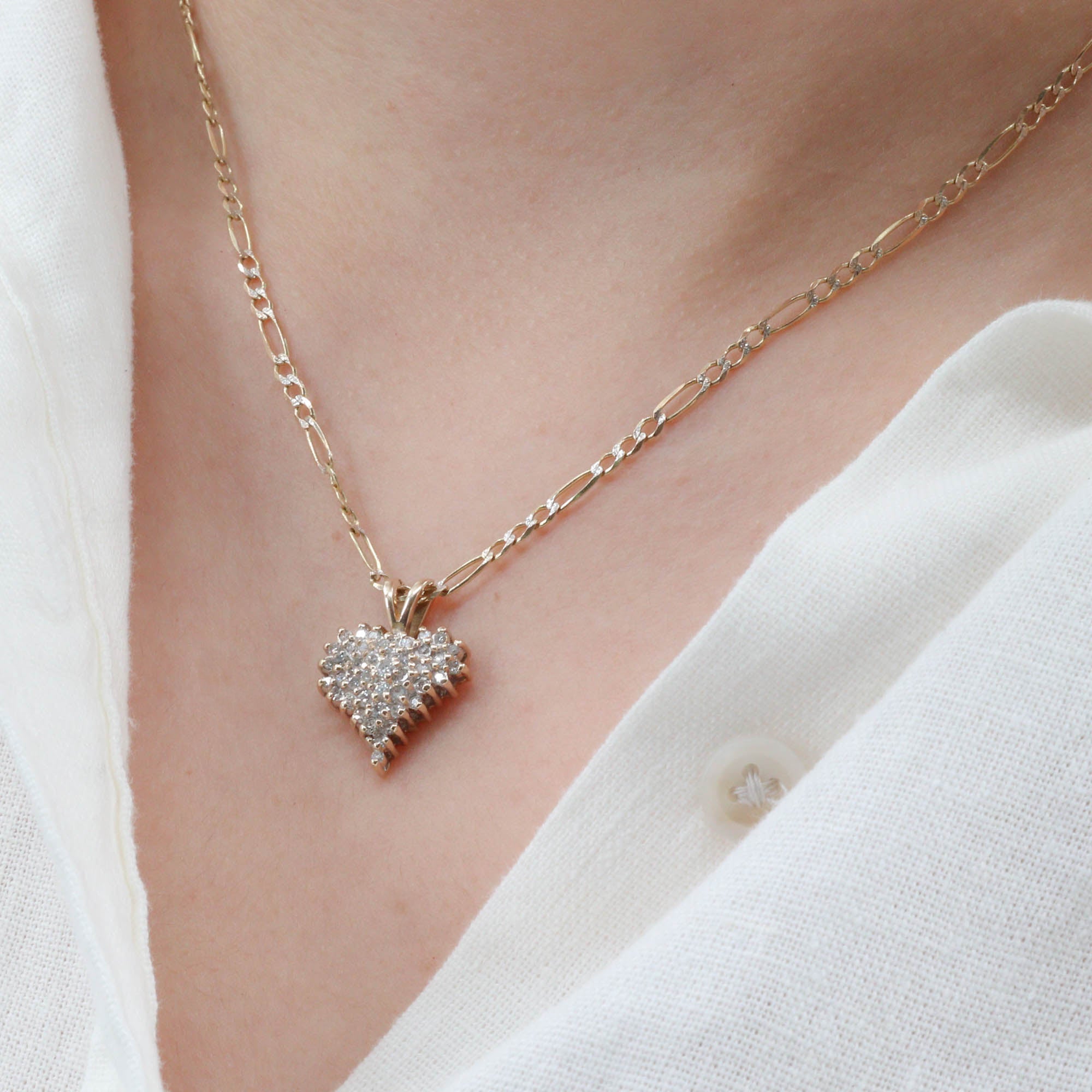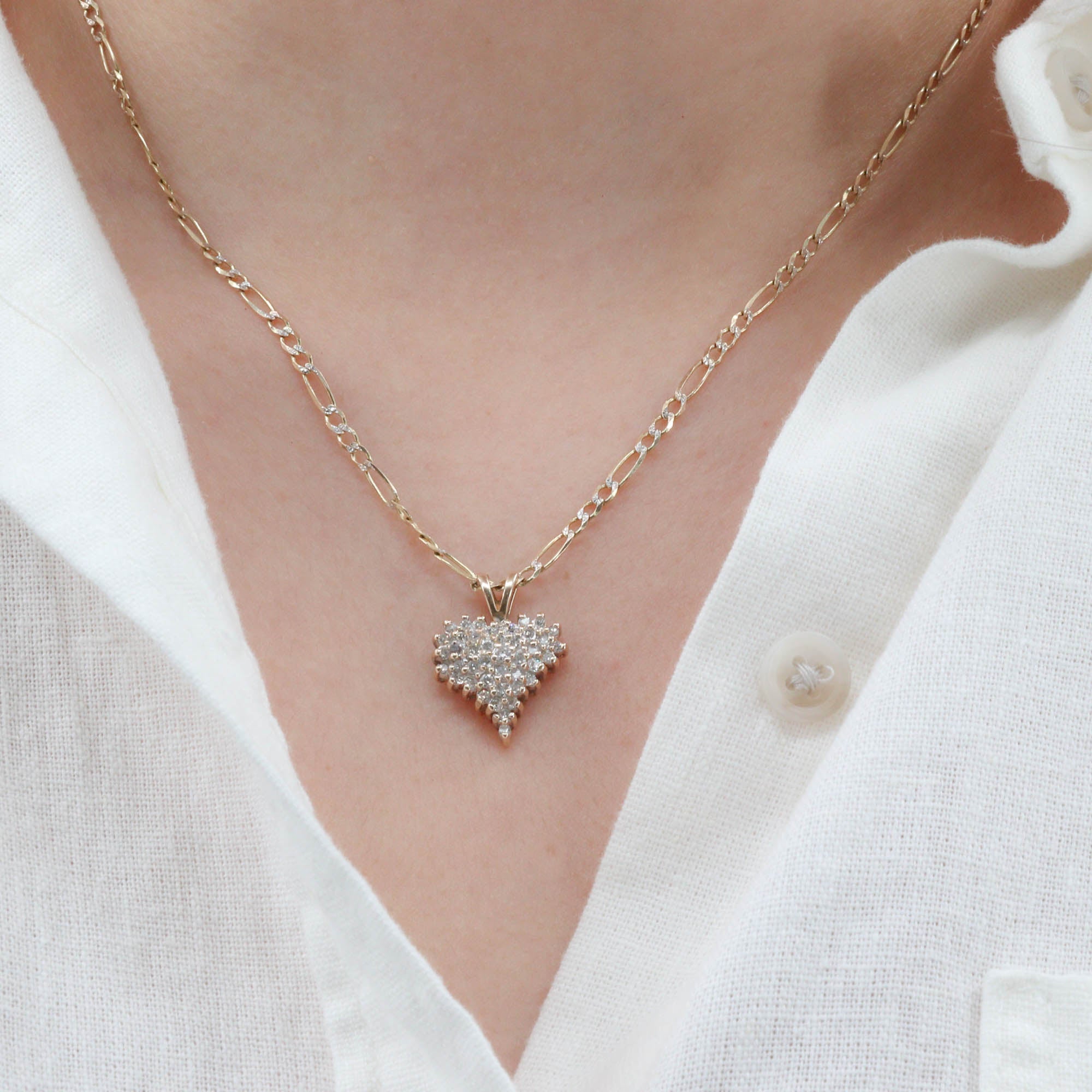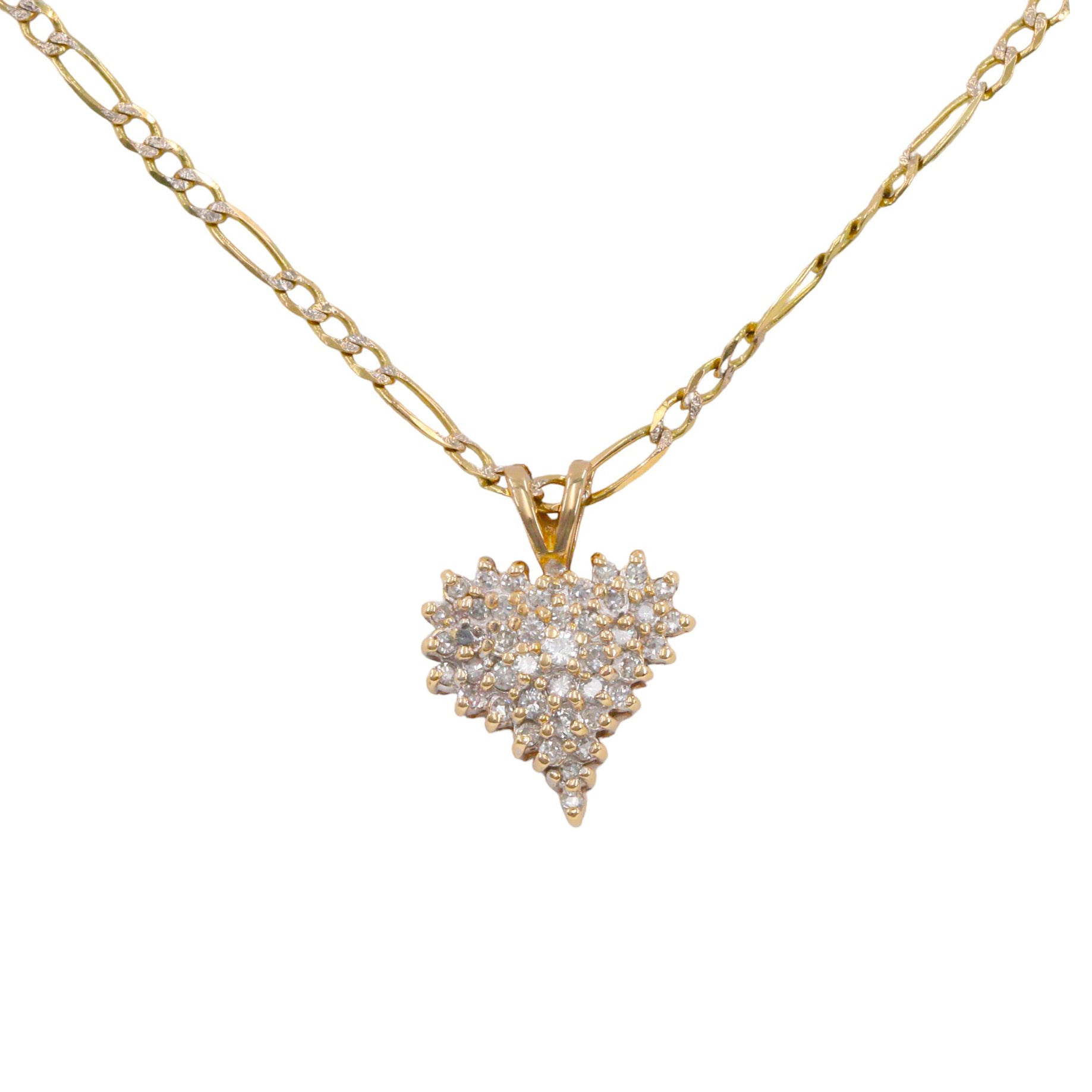 14k Yellow Gold Cluster Diamond Heart Pendant