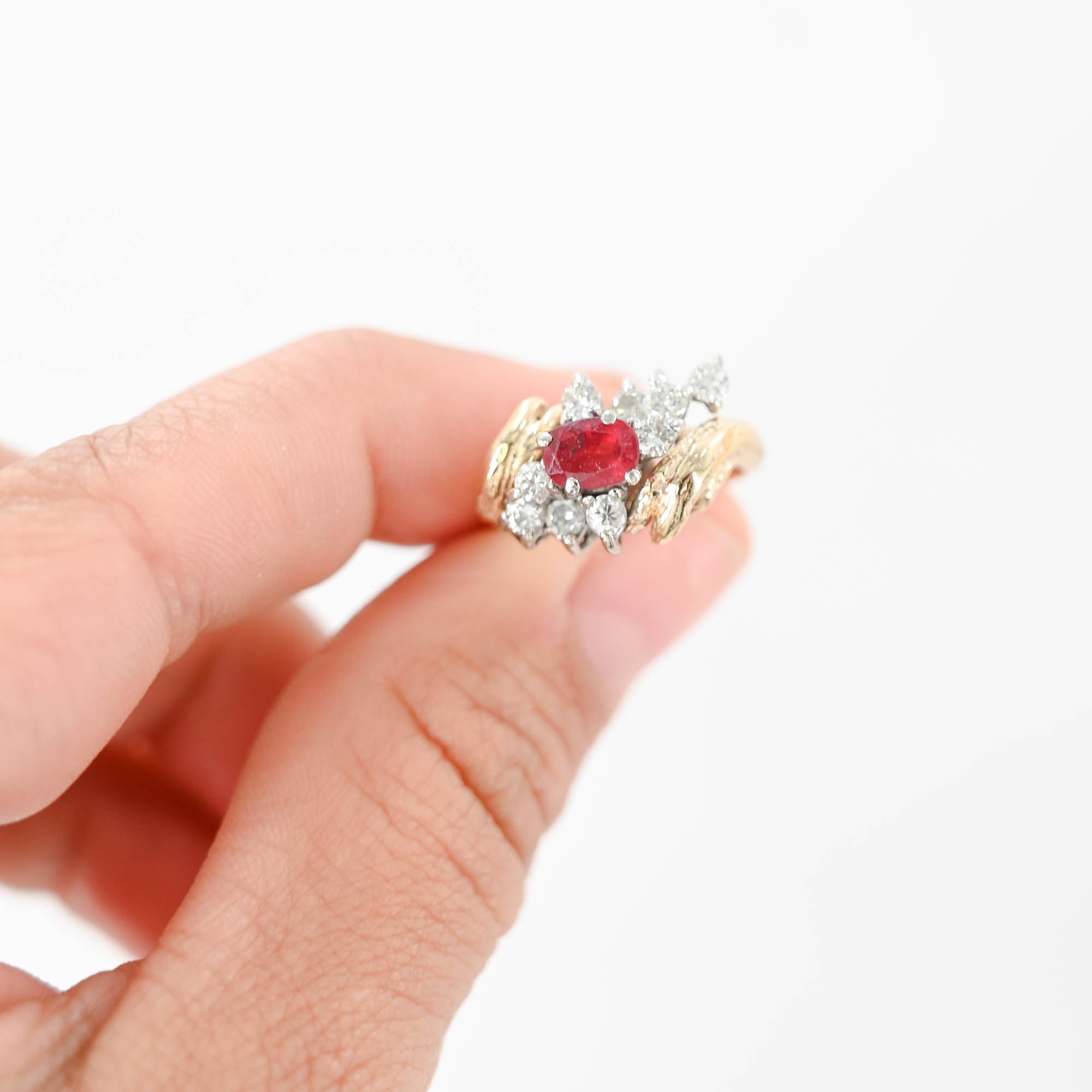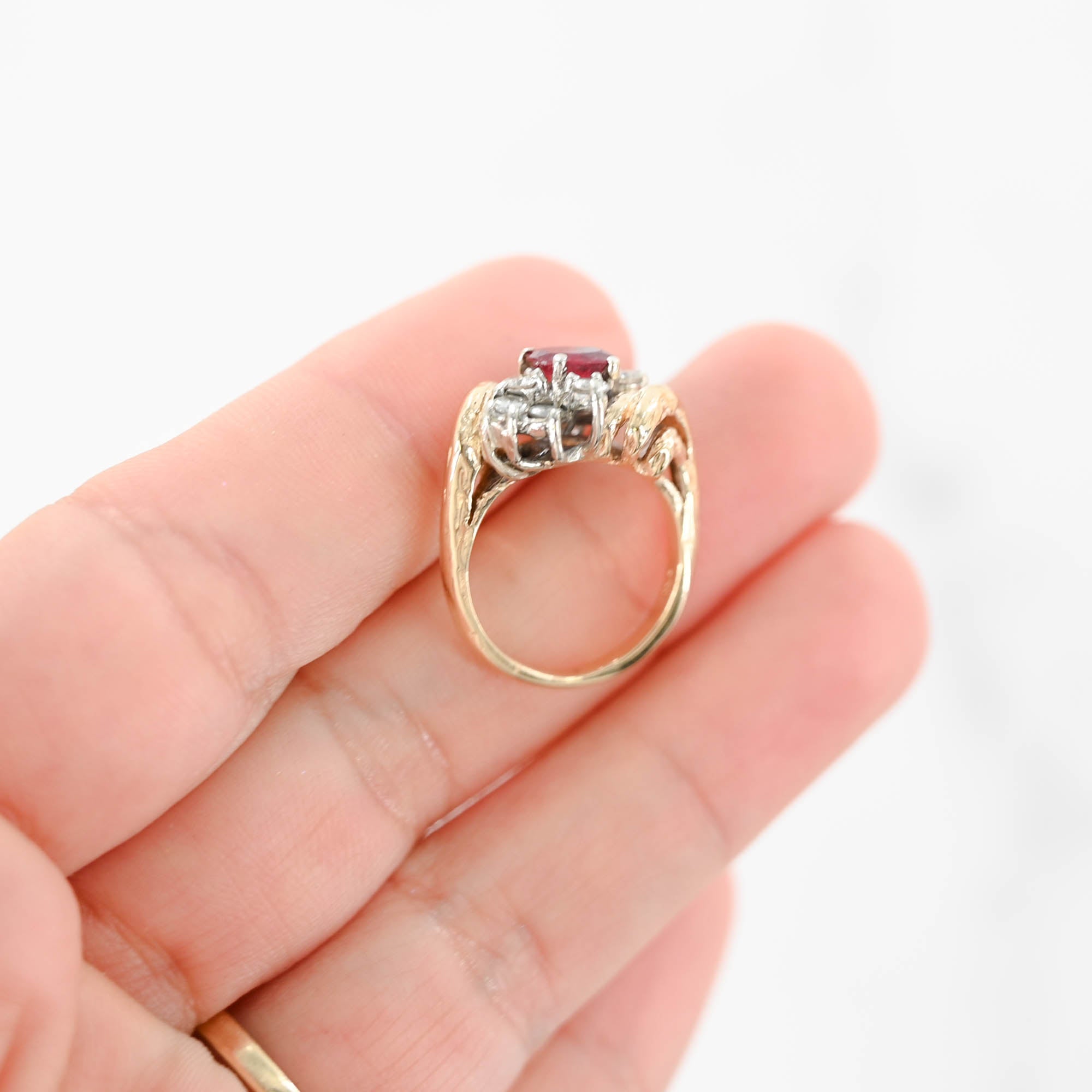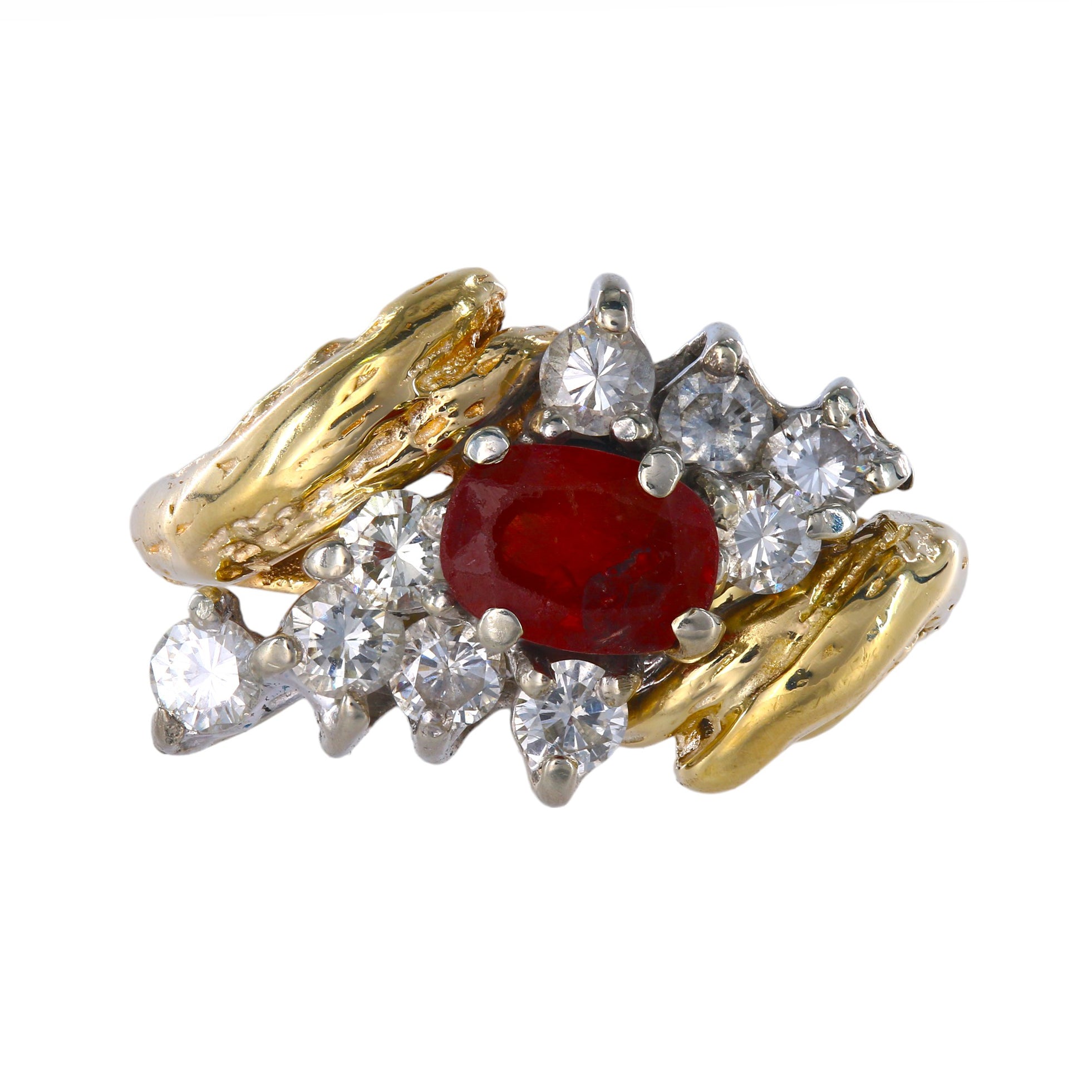 14k Yellow Gold Diamond and Oval Ruby Cocktail Ring
