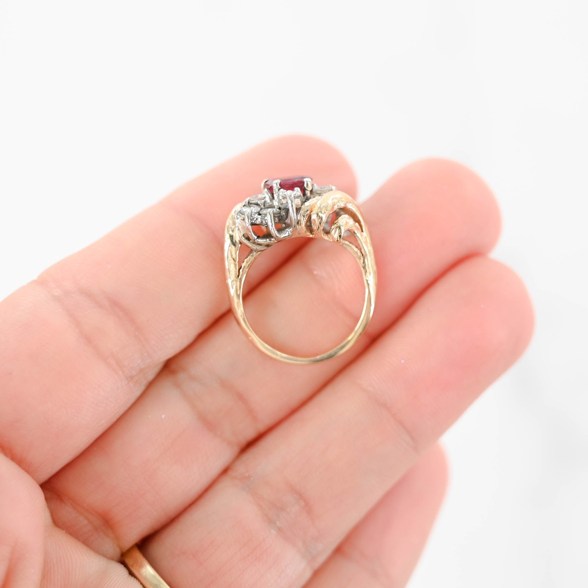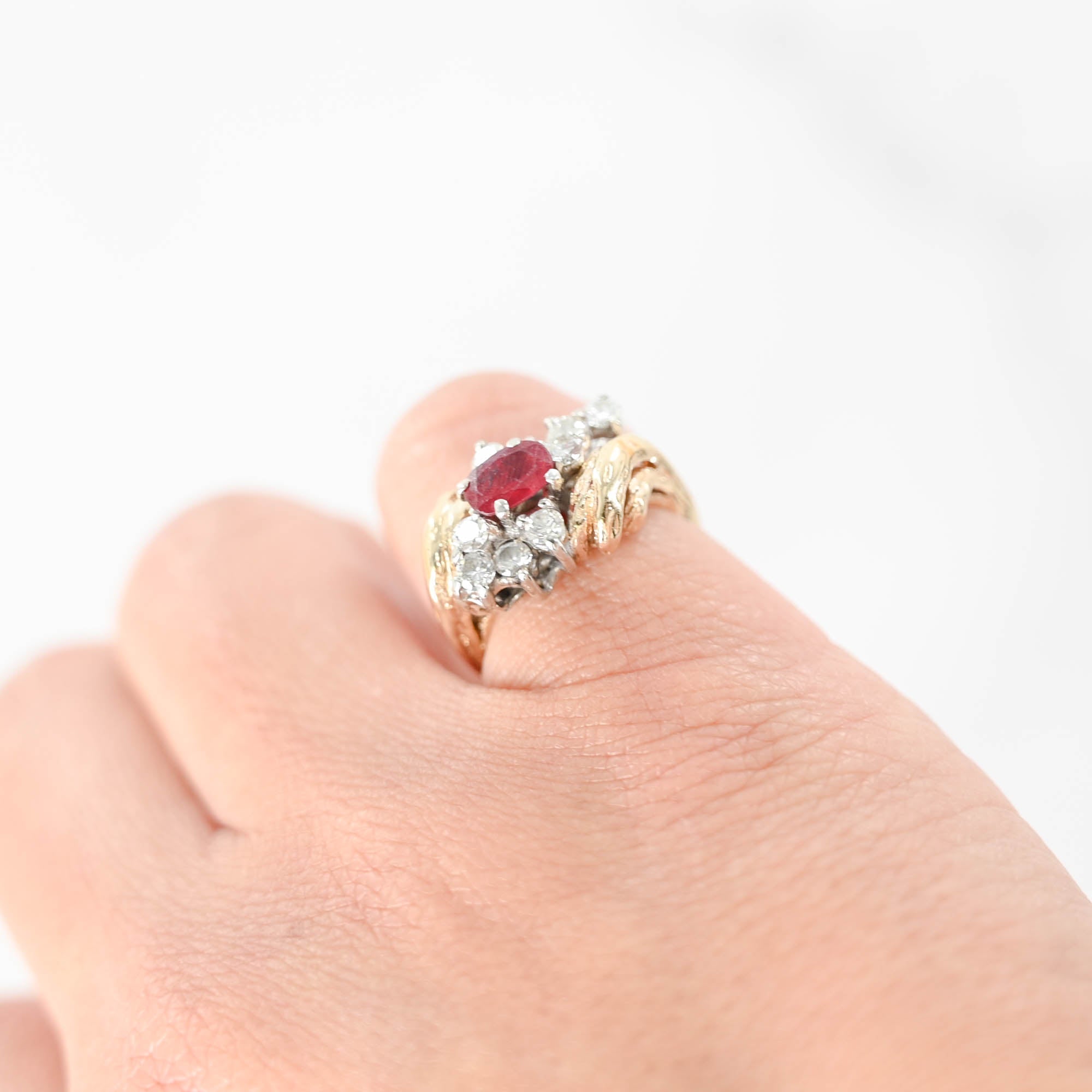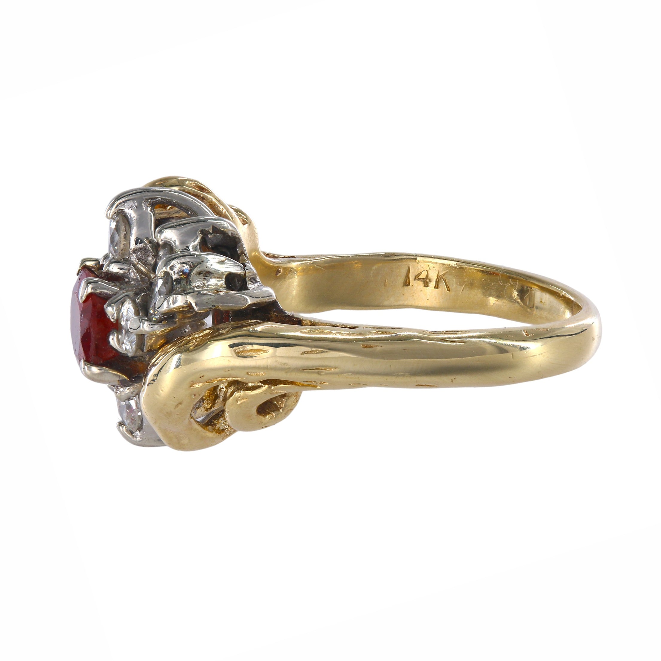 14k Yellow Gold Diamond and Oval Ruby Cocktail Ring