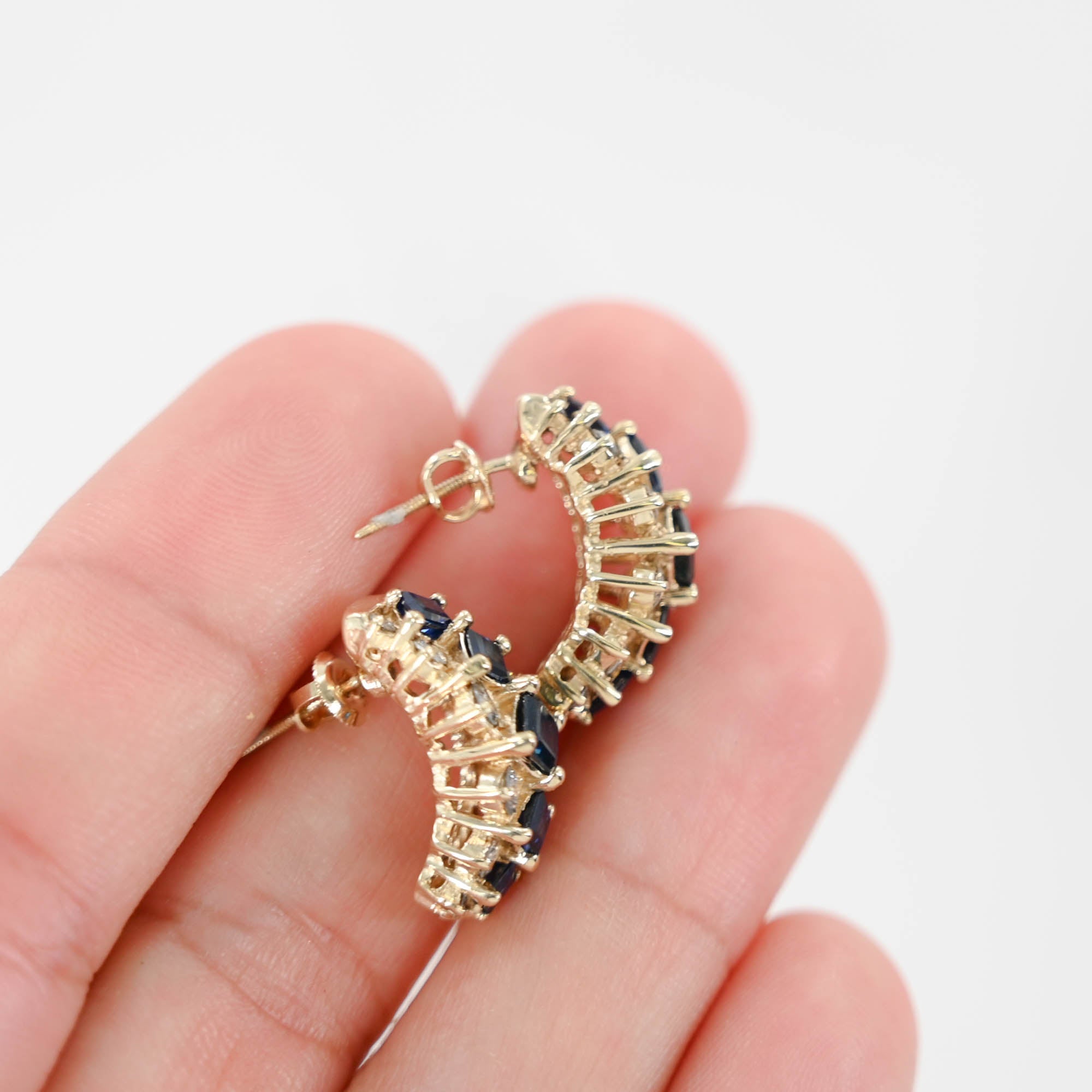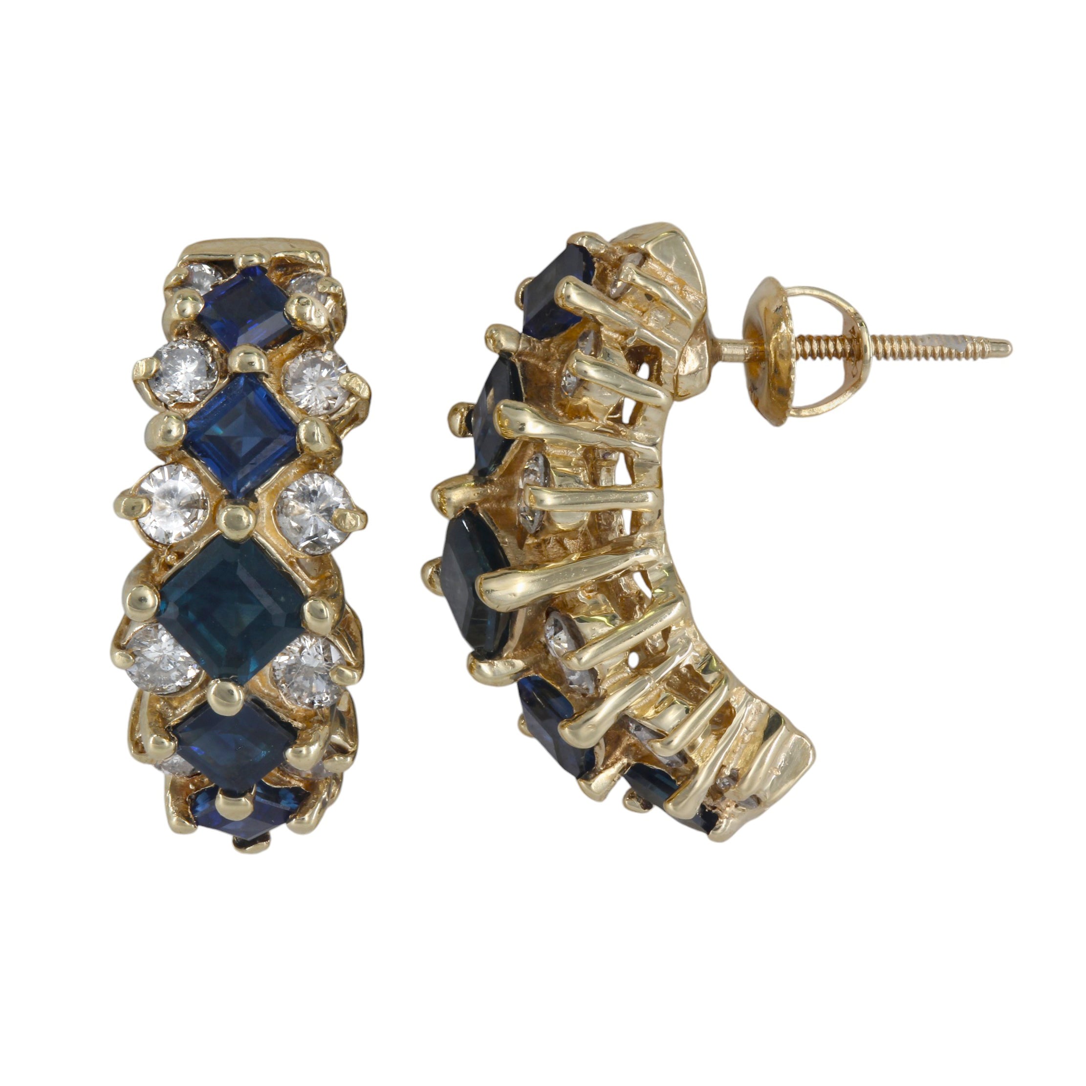 These vintage 14K yellow gold earrings feature a stunning combination of diamonds and sapphires. The rich blue sapphires are beautifully complemented by the sparkling diamonds, creating an elegant and timeless design.