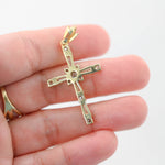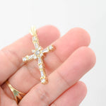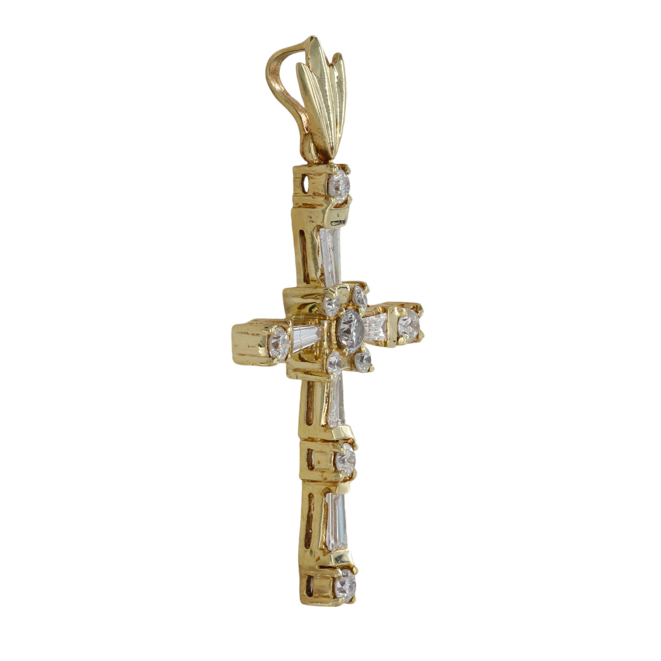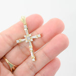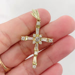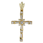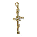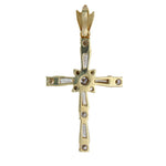 14K Yellow Gold Diamond Baguette and Round Cut Incrusted Cross Pendant