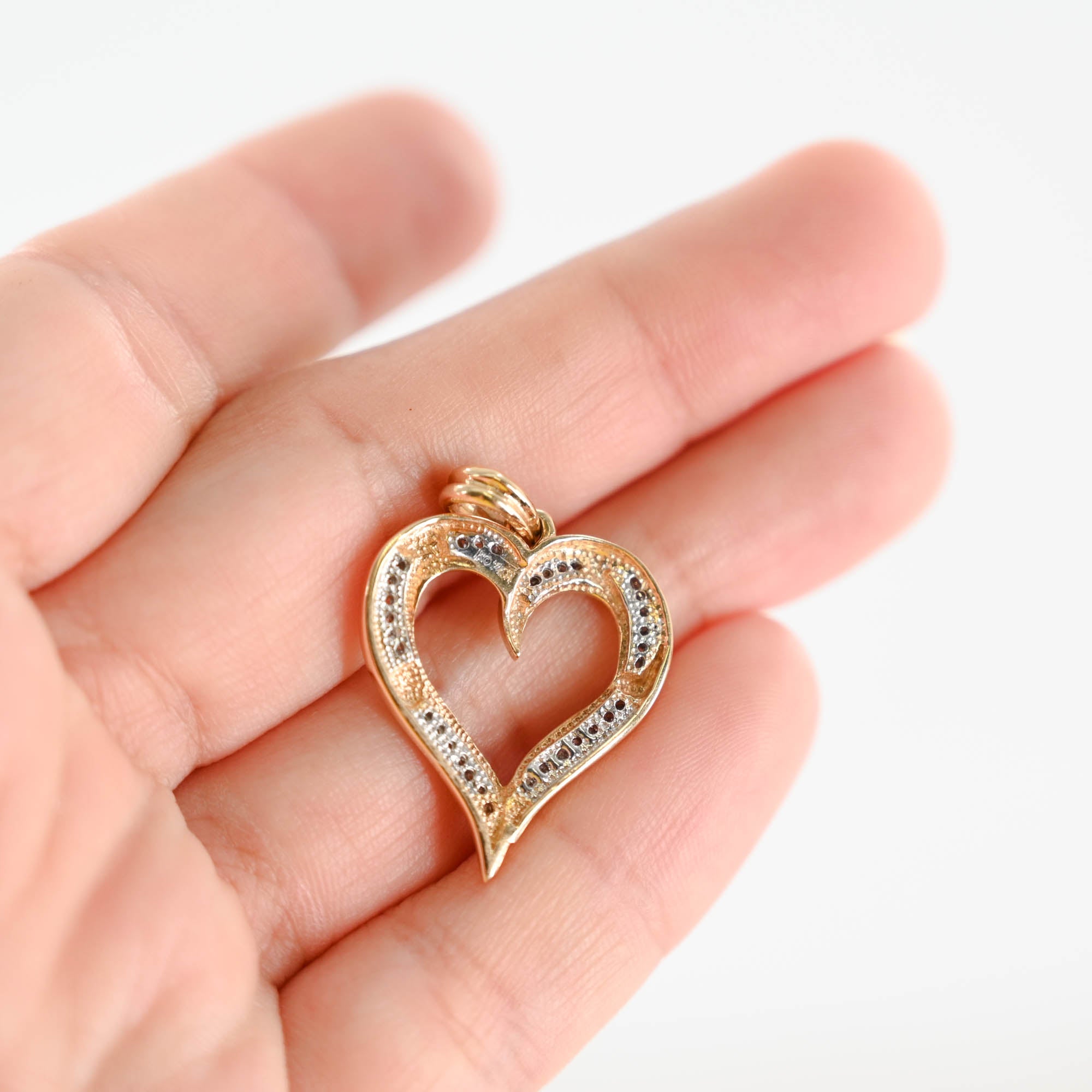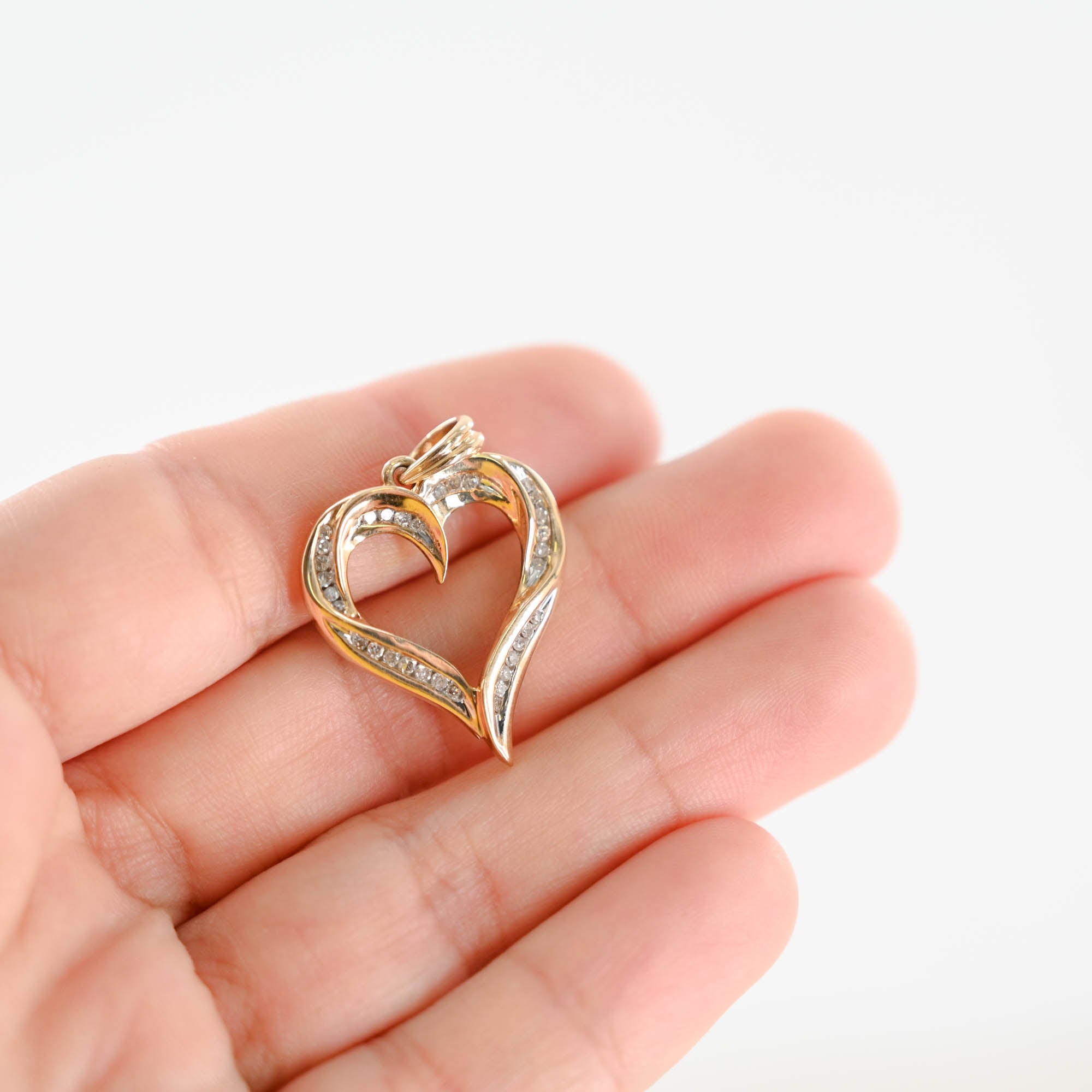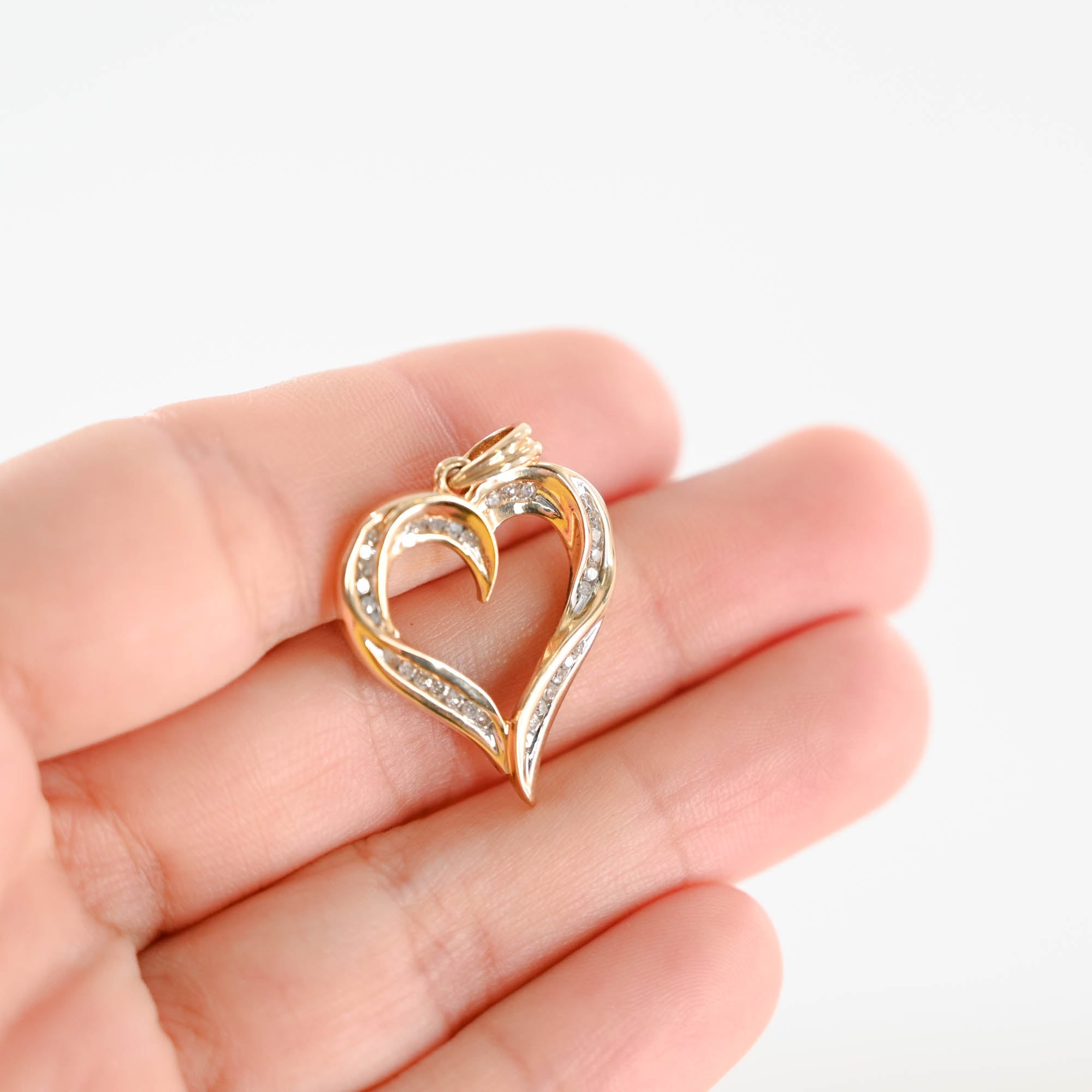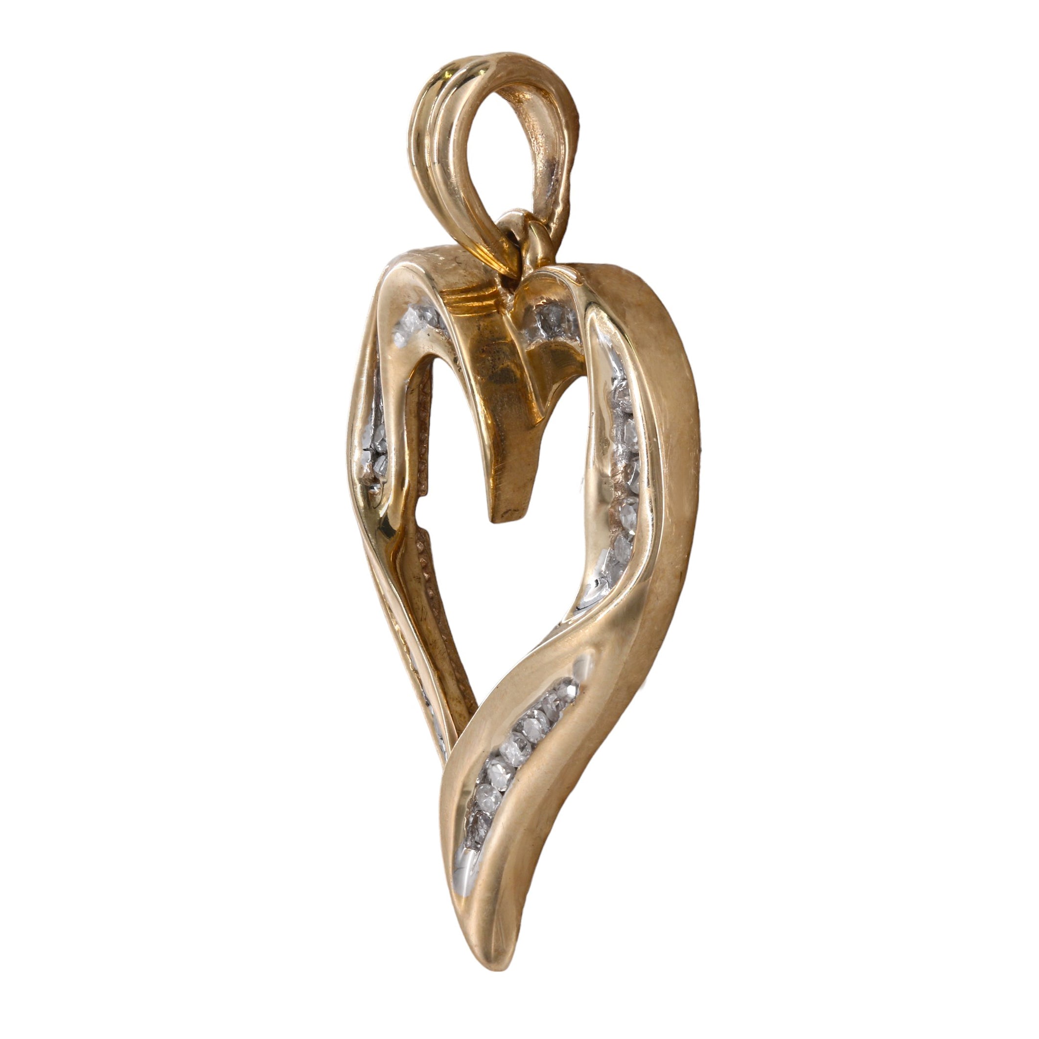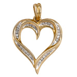 14K Yellow Gold Diamond Channel Set Heart Pendant 0.33Ctw