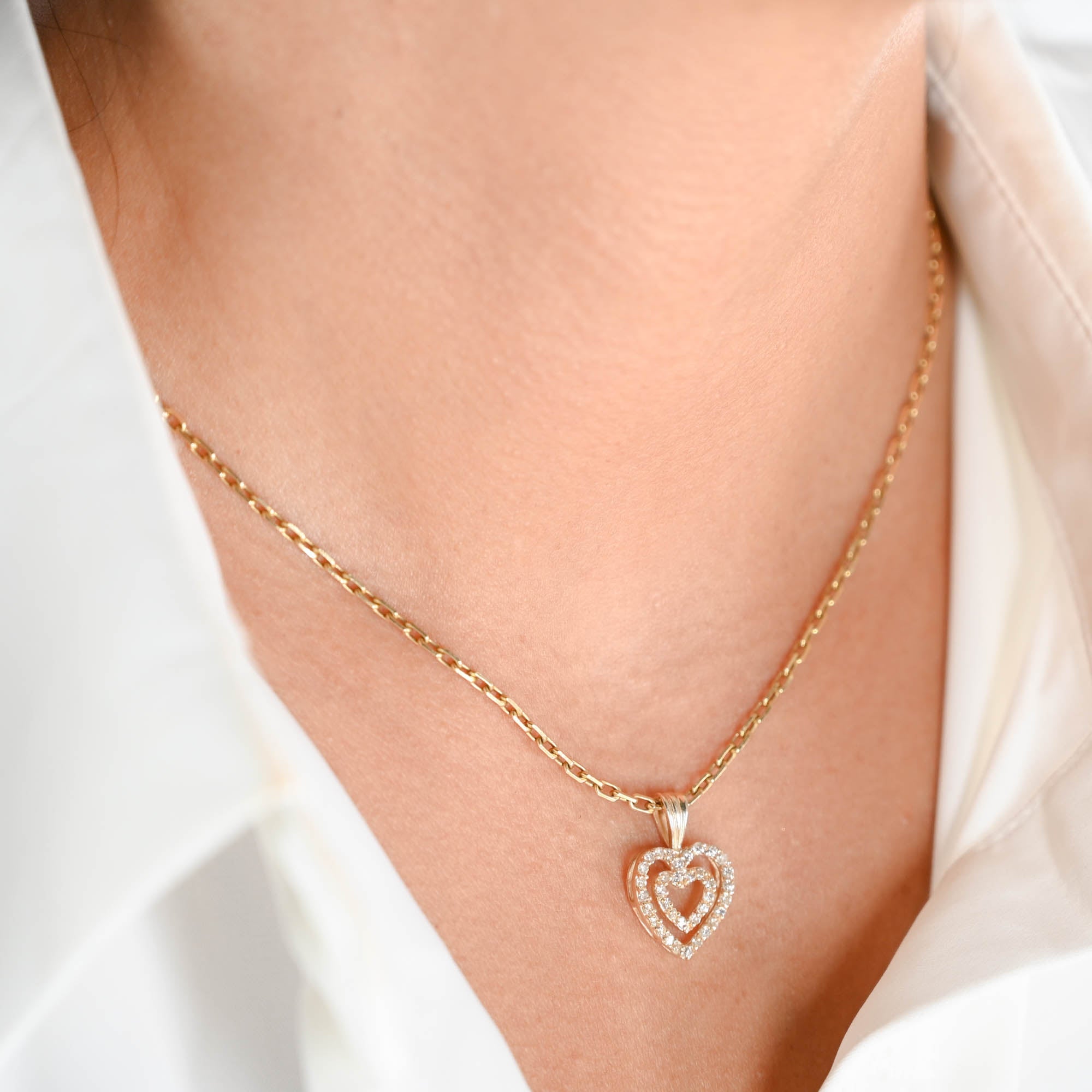 14K Yellow Gold Diamond Heart Pendant 0.35Ctw