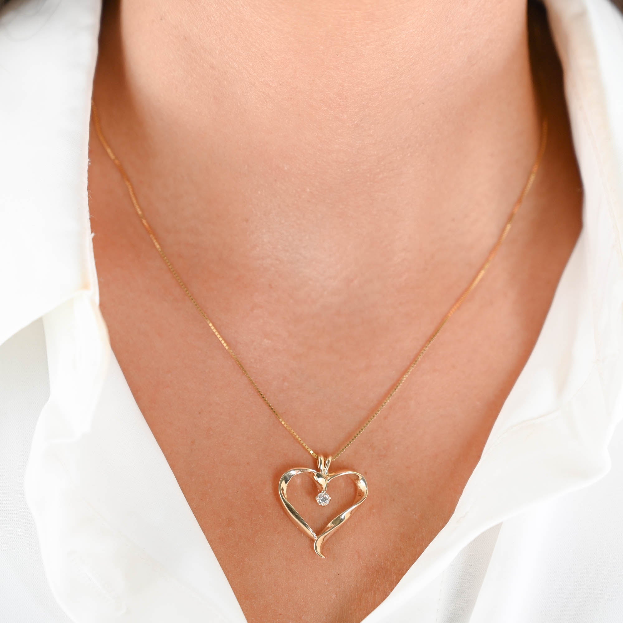 Featuring a charming heart pendant with a central 0.10 carat diamond, this necklace exudes elegance and sophistication. Ideal for adding a touch of sparkle to any outfit, with a versatile 20-inch length that suits every occasion.