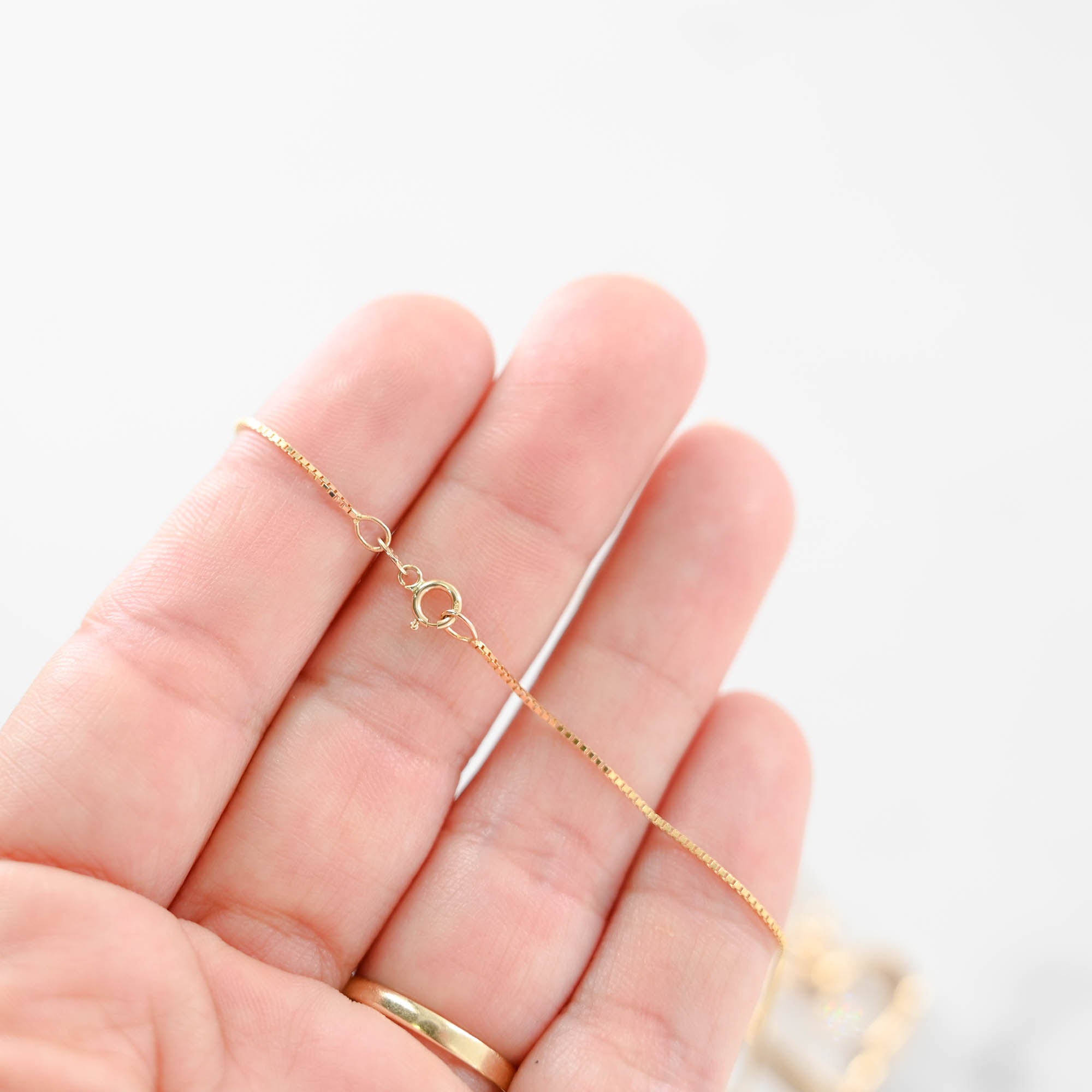 14K Yellow Gold Diamond Heart Pendant Box Link Chain Necklace