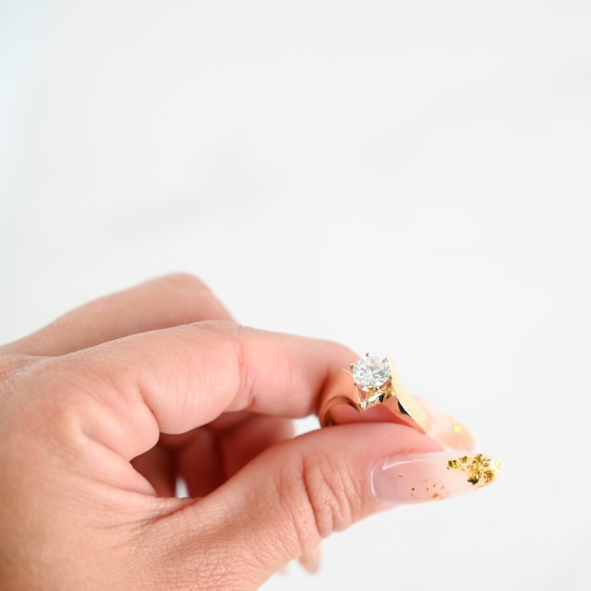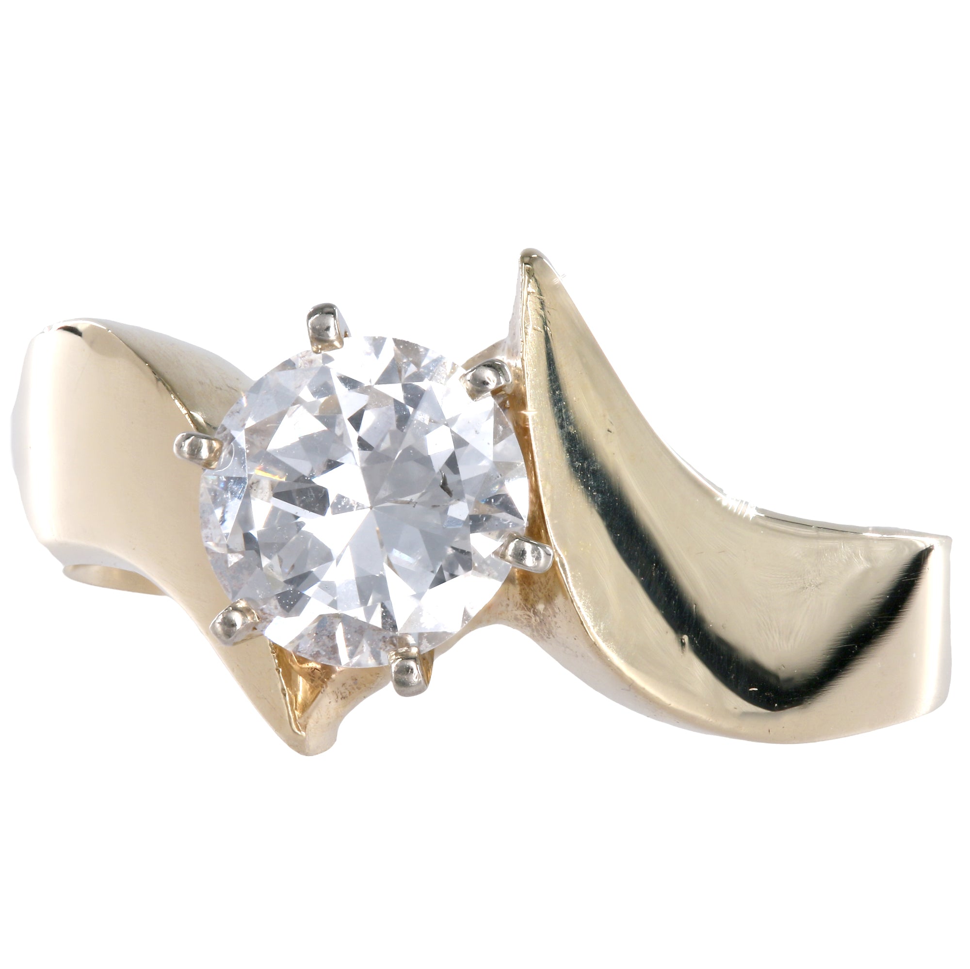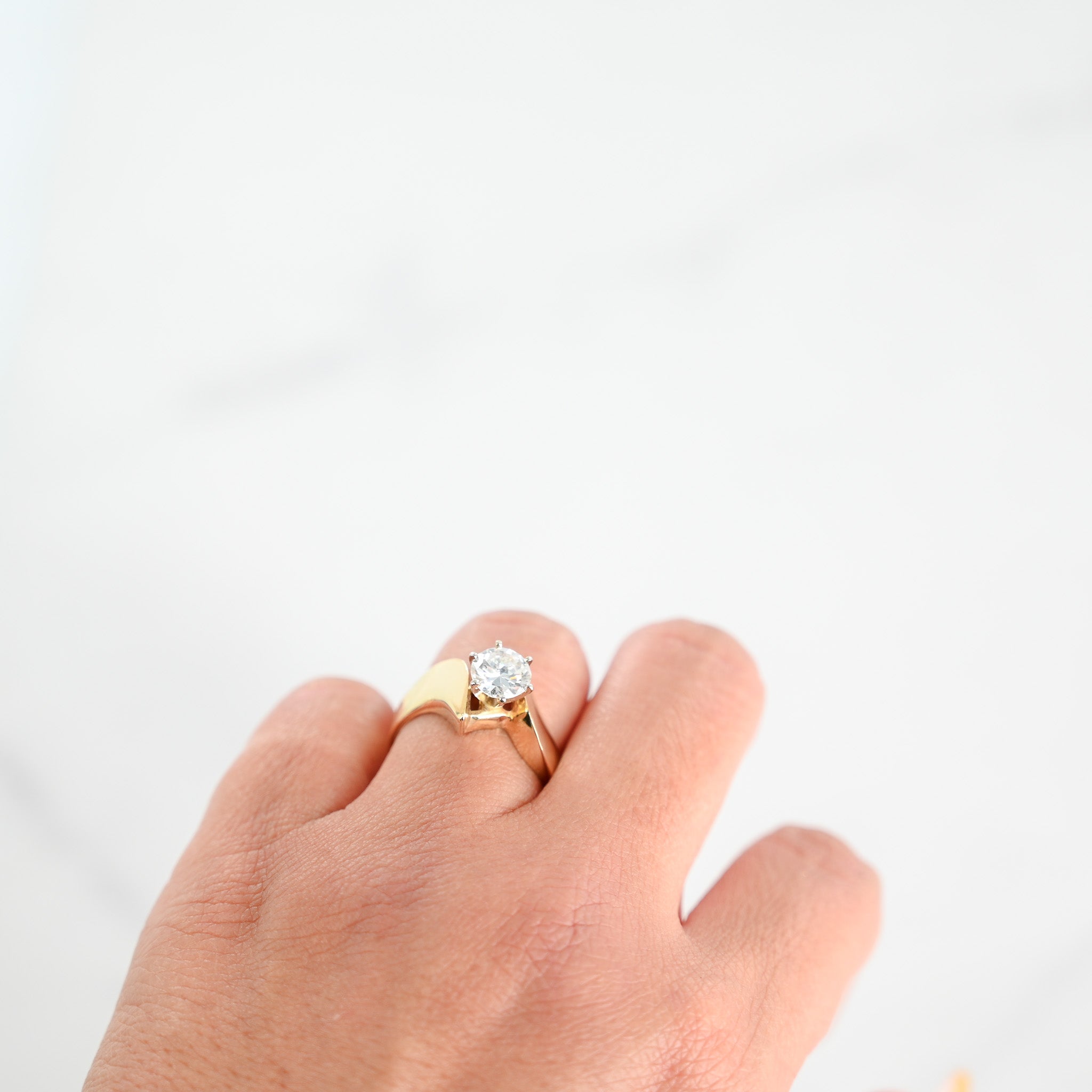 14K Yellow Gold Diamond Shallow Cut Solitaire Ring 1.00Ctw