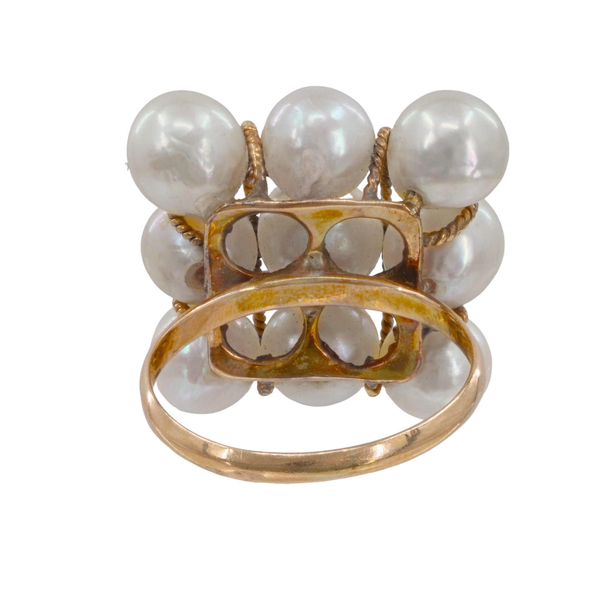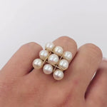 14k Yellow Gold Grid Pearl Cocktail Ring