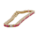 14k Yellow Gold Illusion Set Diamond and Spinel Tennis Bracelet