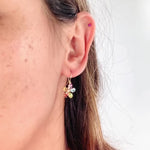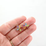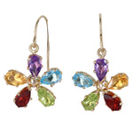 14K Yellow Gold Multi Color Gemstones Flower Design Earrings