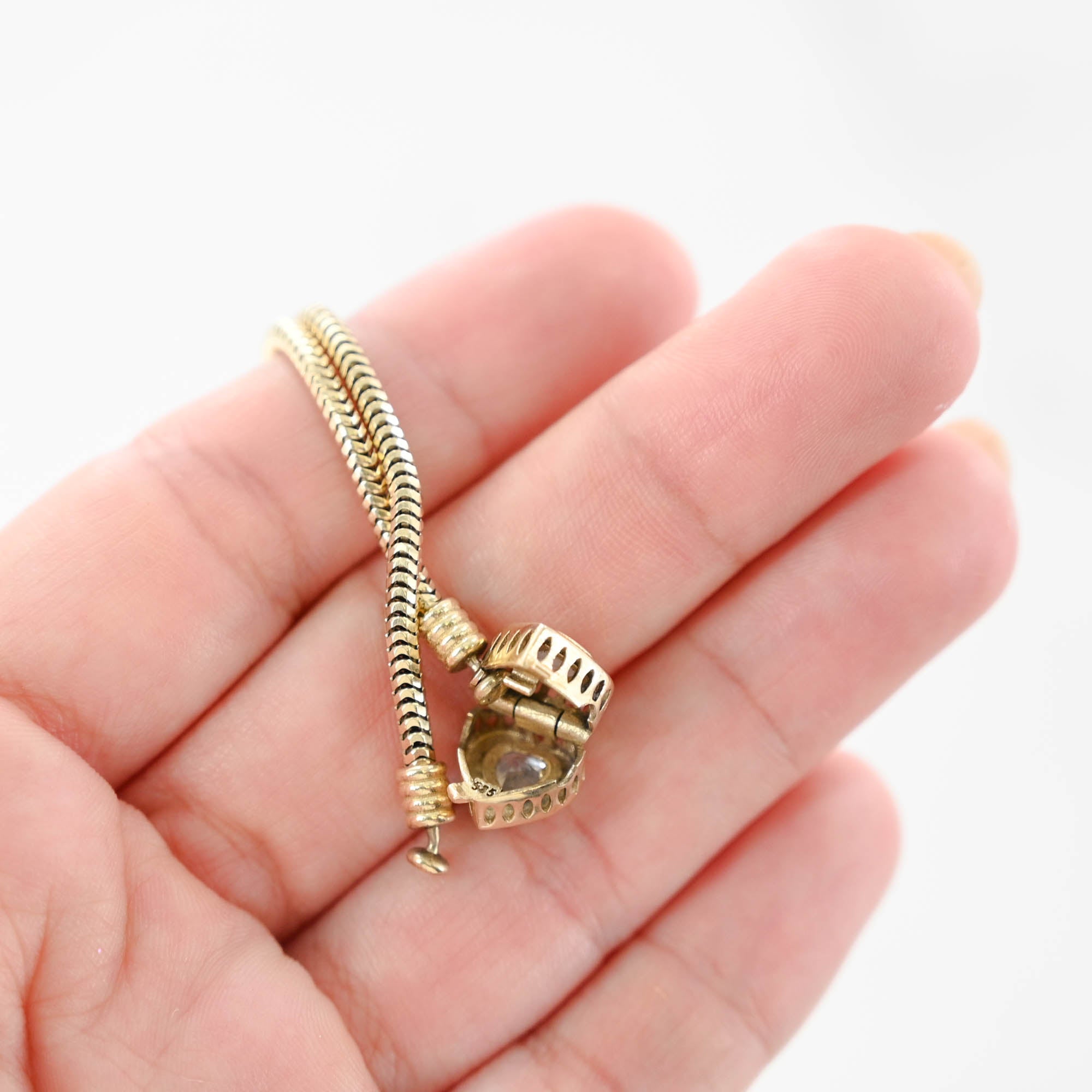 14K Yellow Gold Pandora Round Franco Link Chain Heart Locket Clasp Bracelet