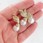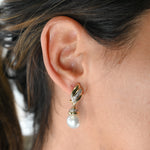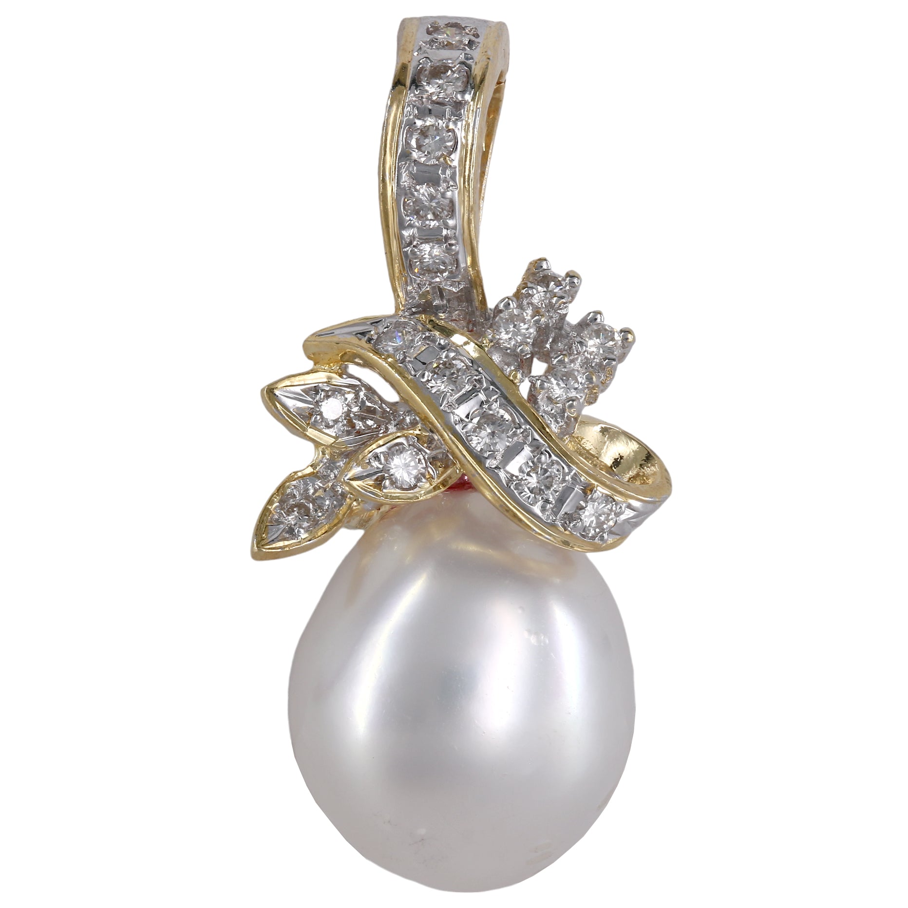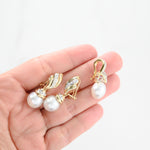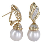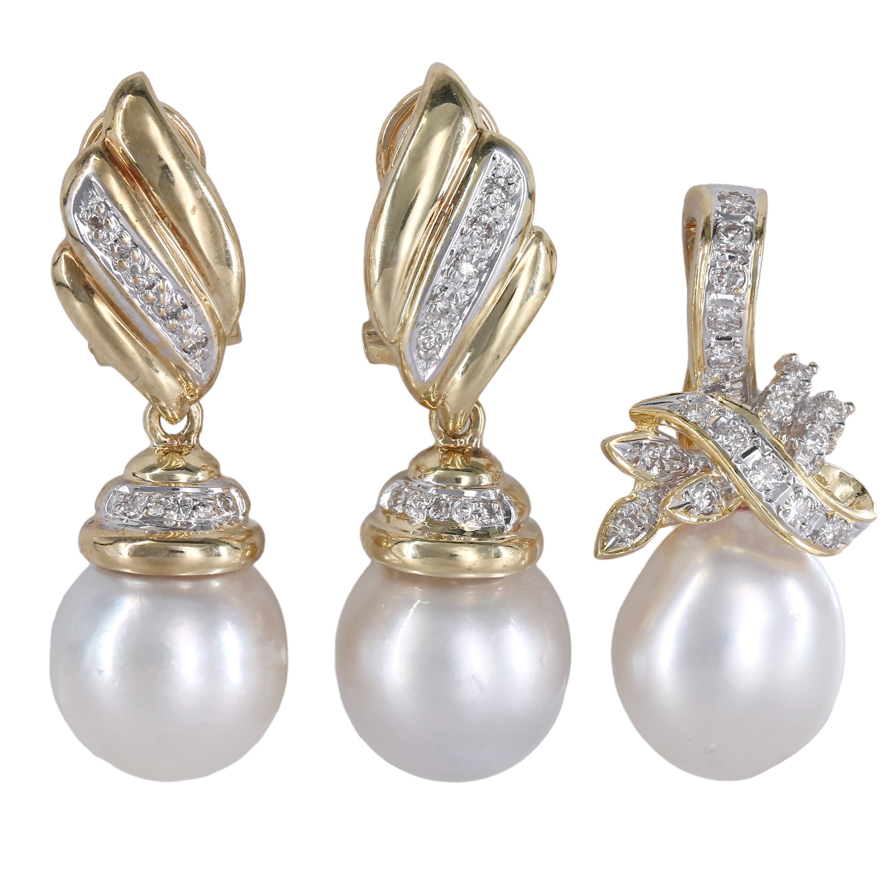 14K Yellow Gold Pearl And Diamonds Pendant And Earrings Set