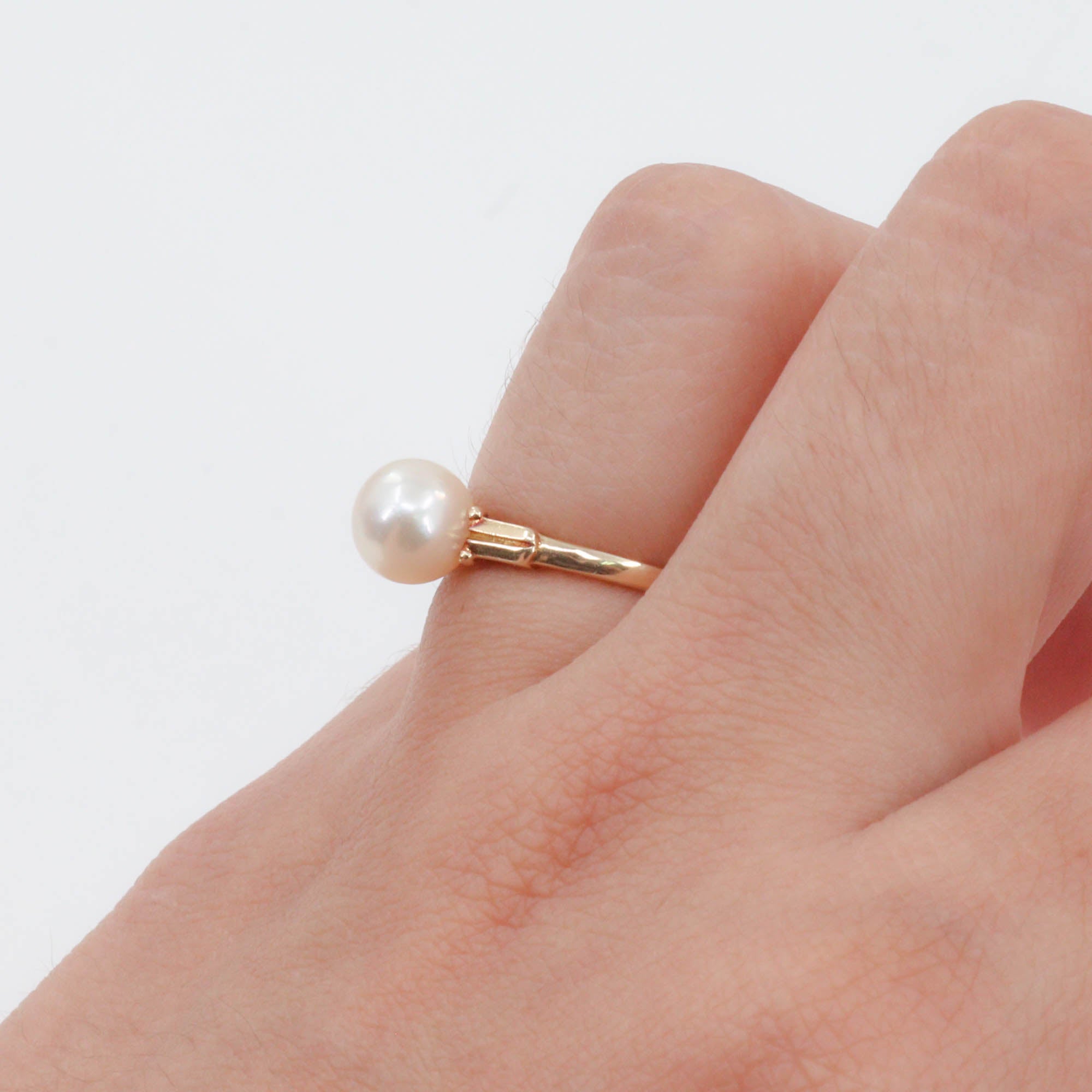 Indulge in the beauty of this 14k Yellow Gold Pearl Cocktail Ring! With a shank size of 1.35 and a head size of 7.35 mm, this ring is the perfect size for any occasion. The lustrous, 7.35mm pearl adds a touch of elegance, while the 14k yellow gold and weight of 2.2g make it a luxurious statement piece. Elevate your style and exude confidence with this stunning ring.