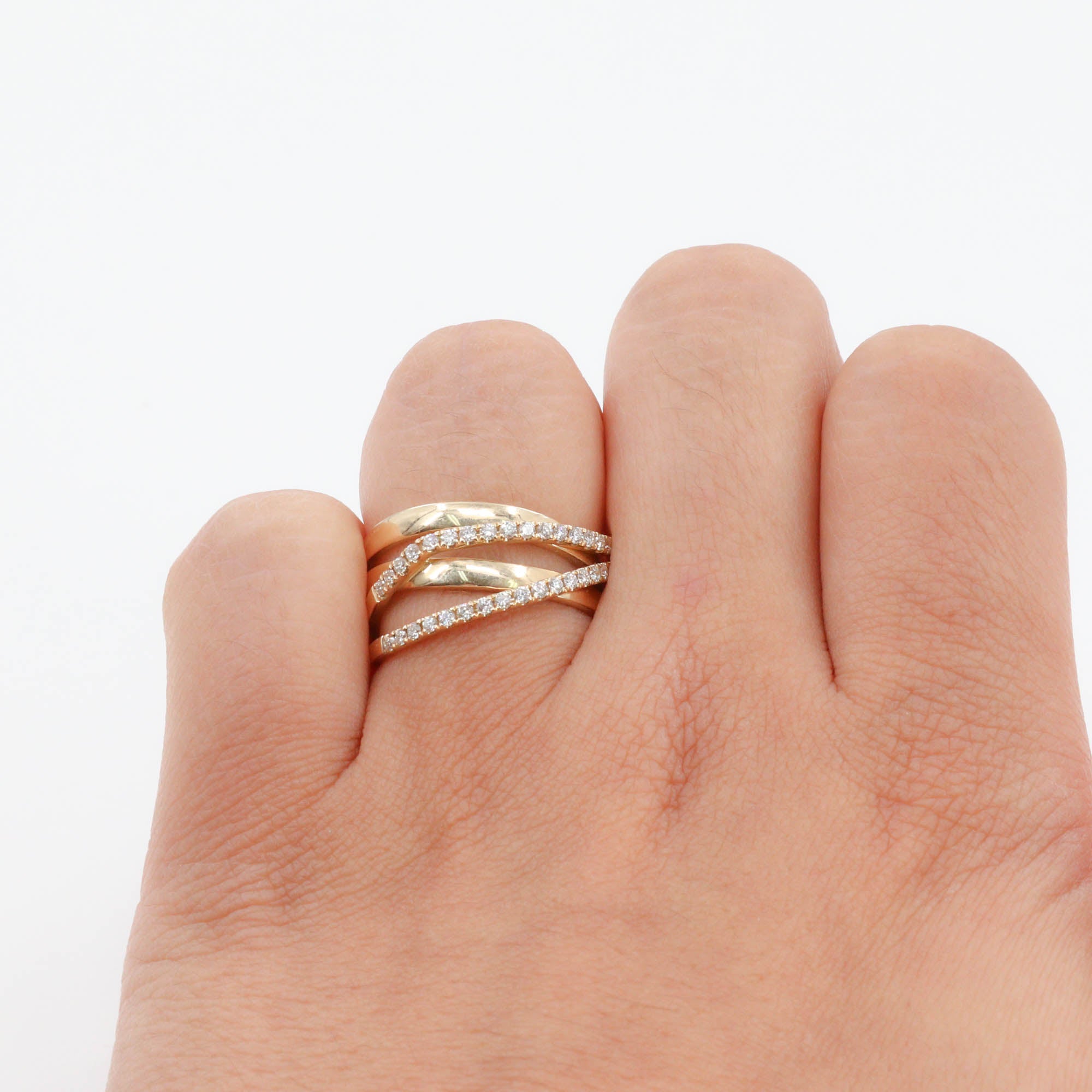 14k Yellow Gold Quad-row Diamond Openwork Cocktail Ring