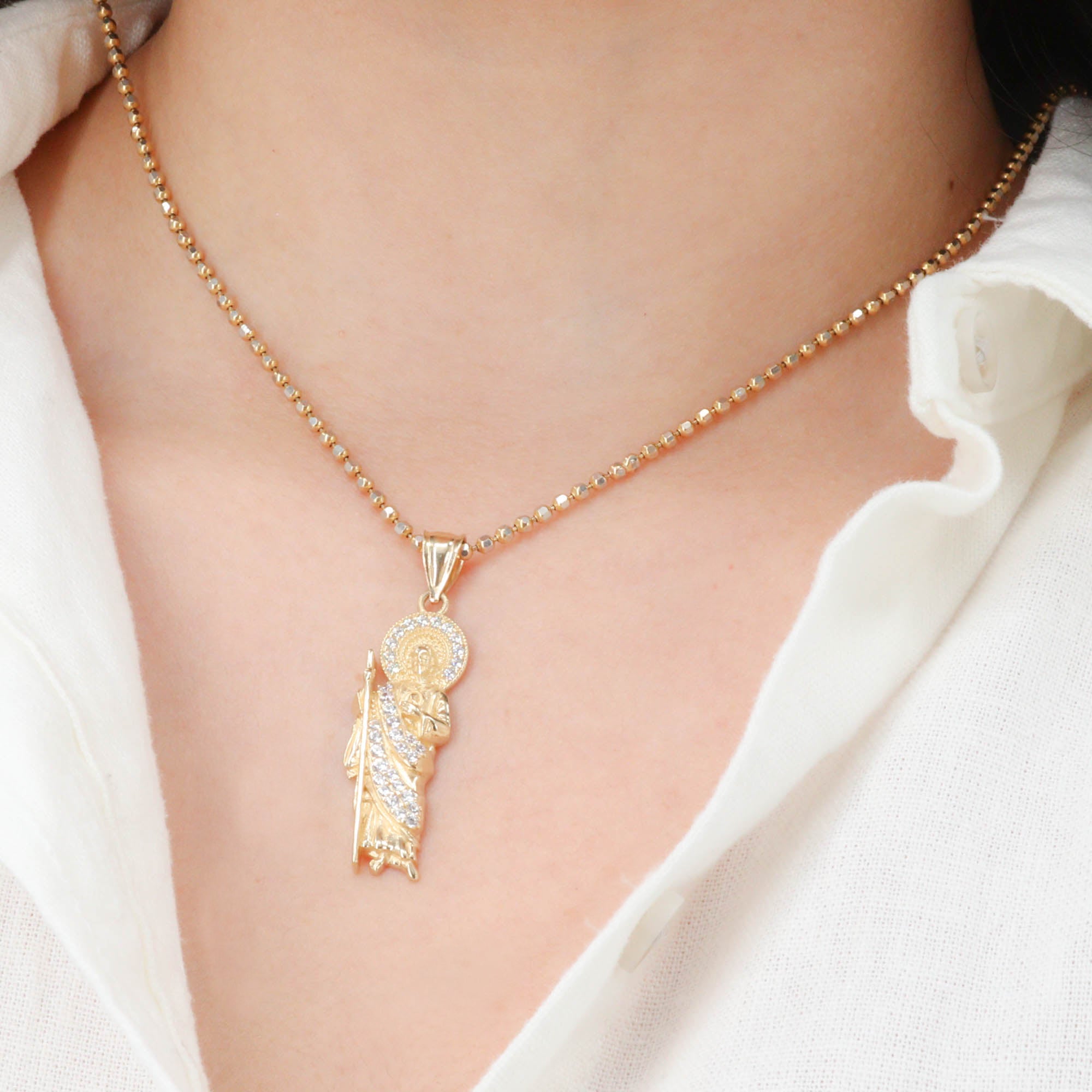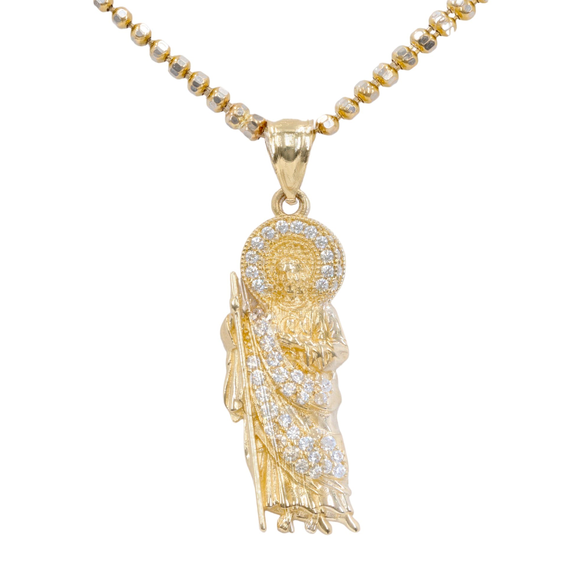 14k Yellow Gold St. Jude/San Judas Pendant with Cubic Zirconia