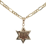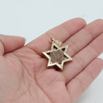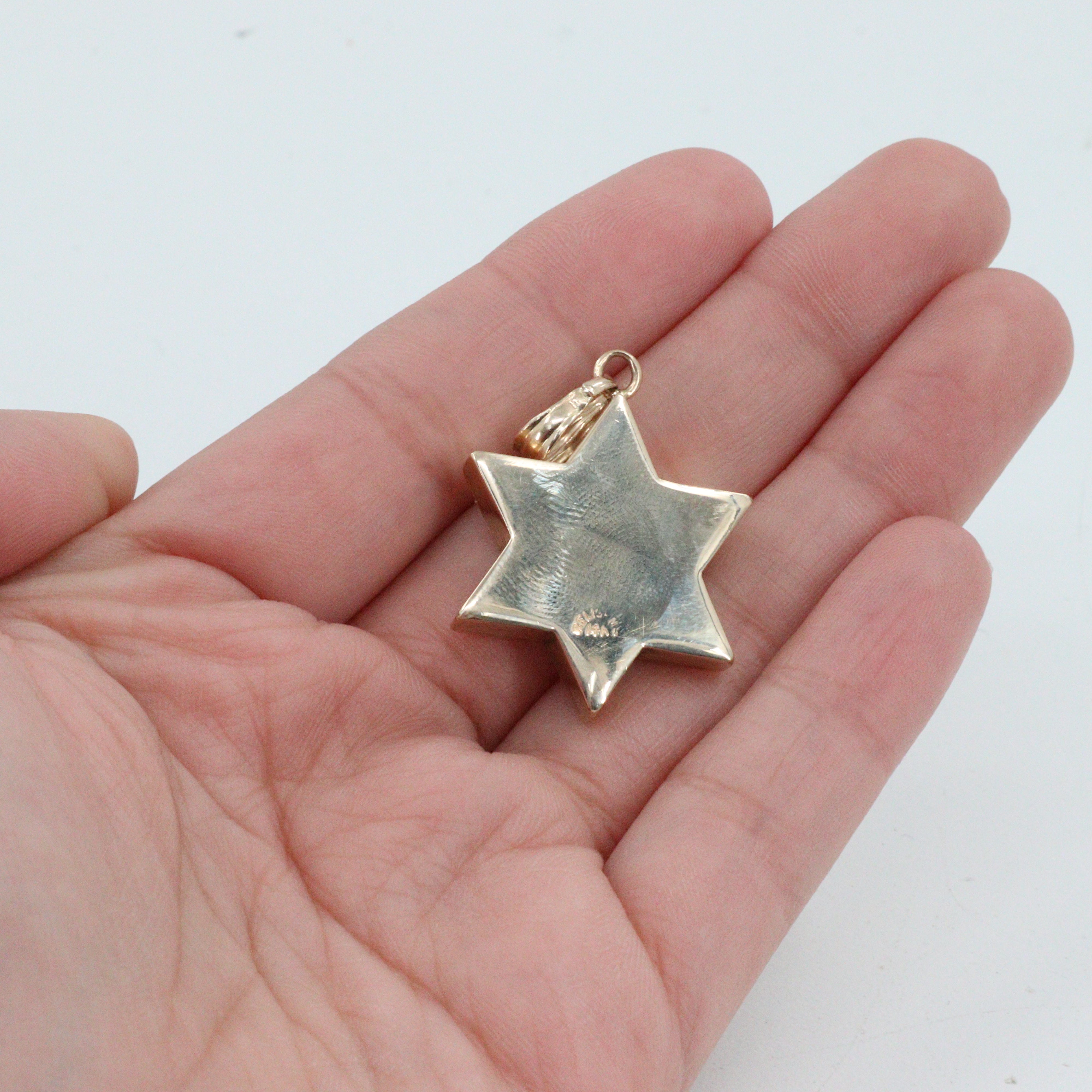 This 14k Yellow Gold Star of David with Commandments Pendant is a bold emblem of faith and tradition. Measuring 42mm in length with bale, 24.5mm in width, and 5mm in depth, it combines elegance and significance. Crafted in radiant 14k yellow gold and weighing 7.6g, this pendant is a timeless piece that reflects both heritage and style.