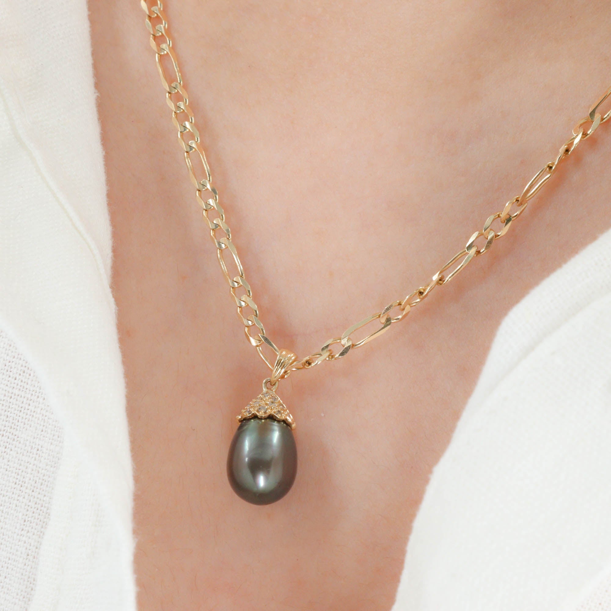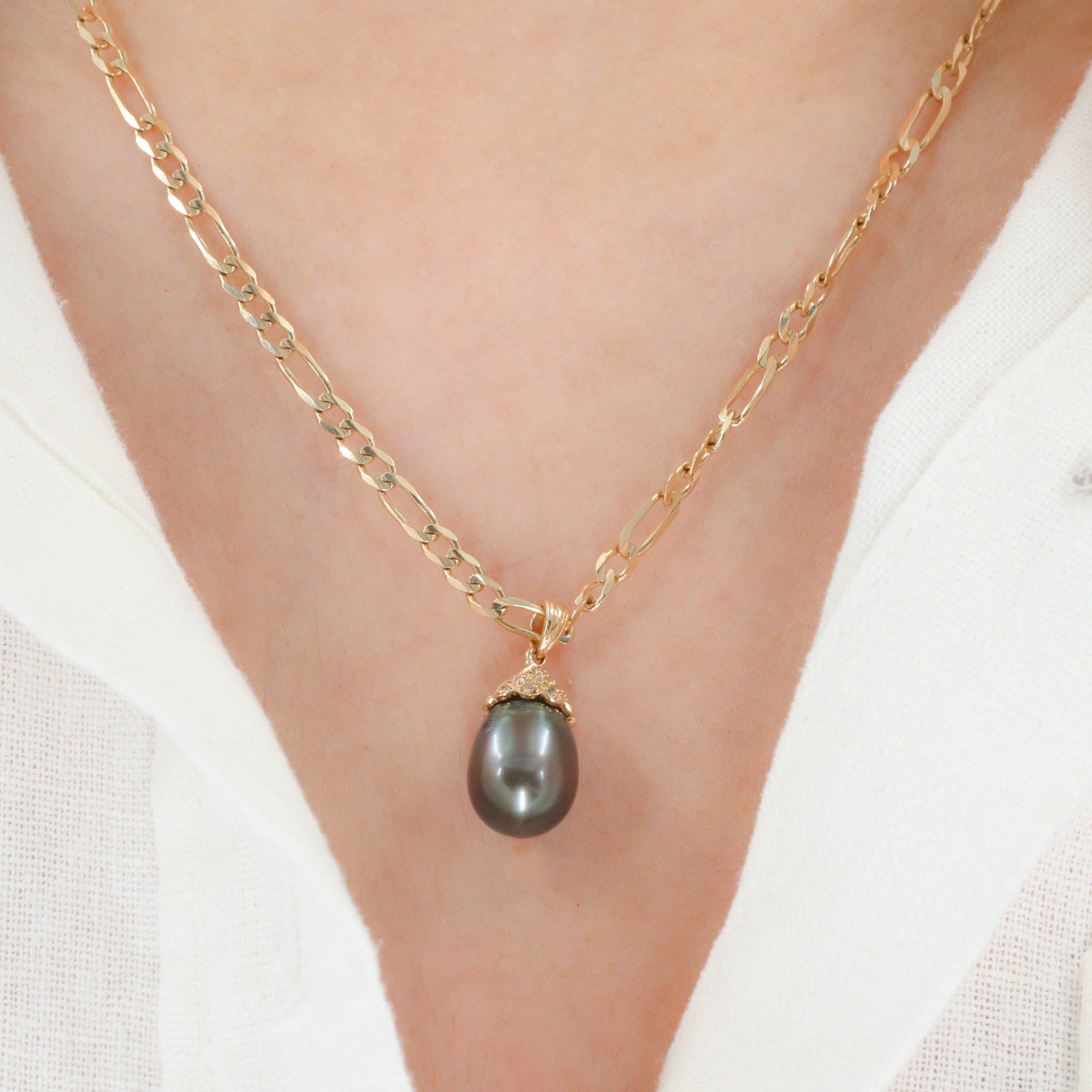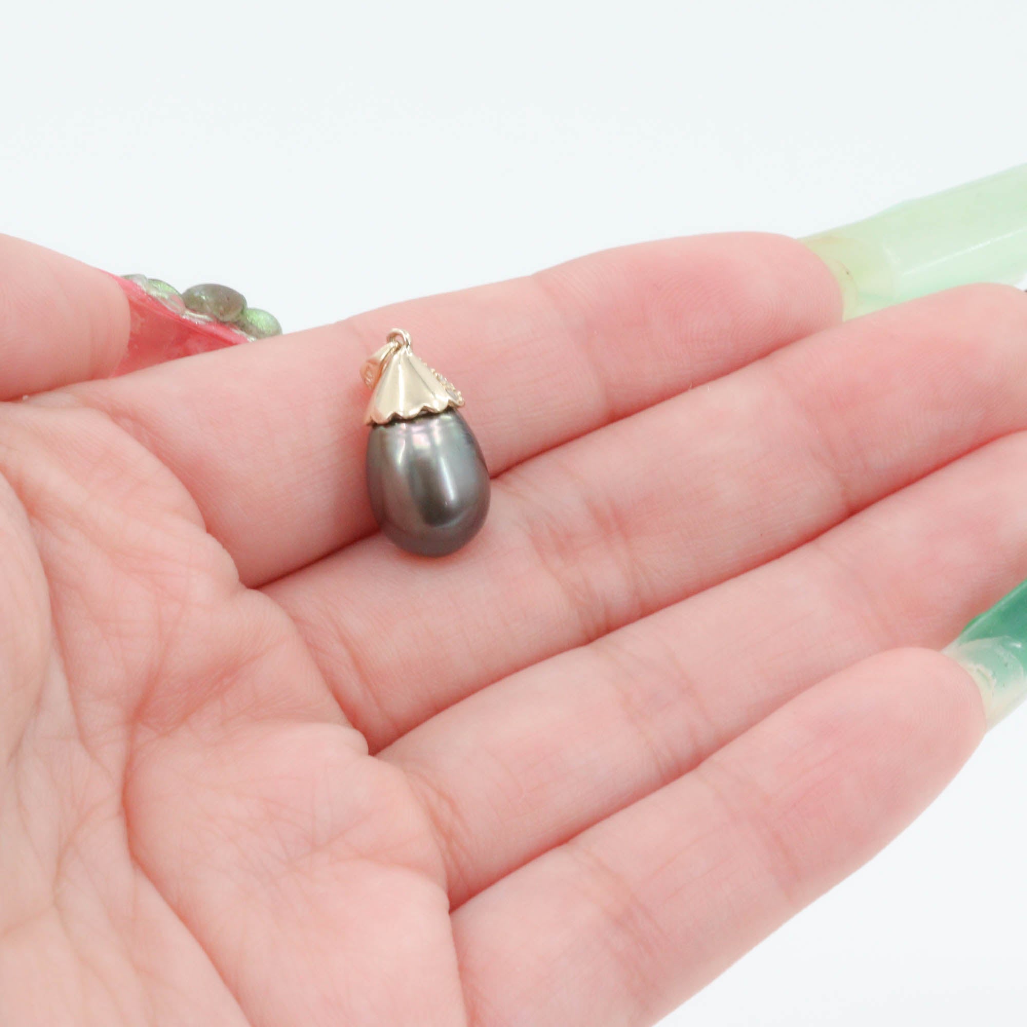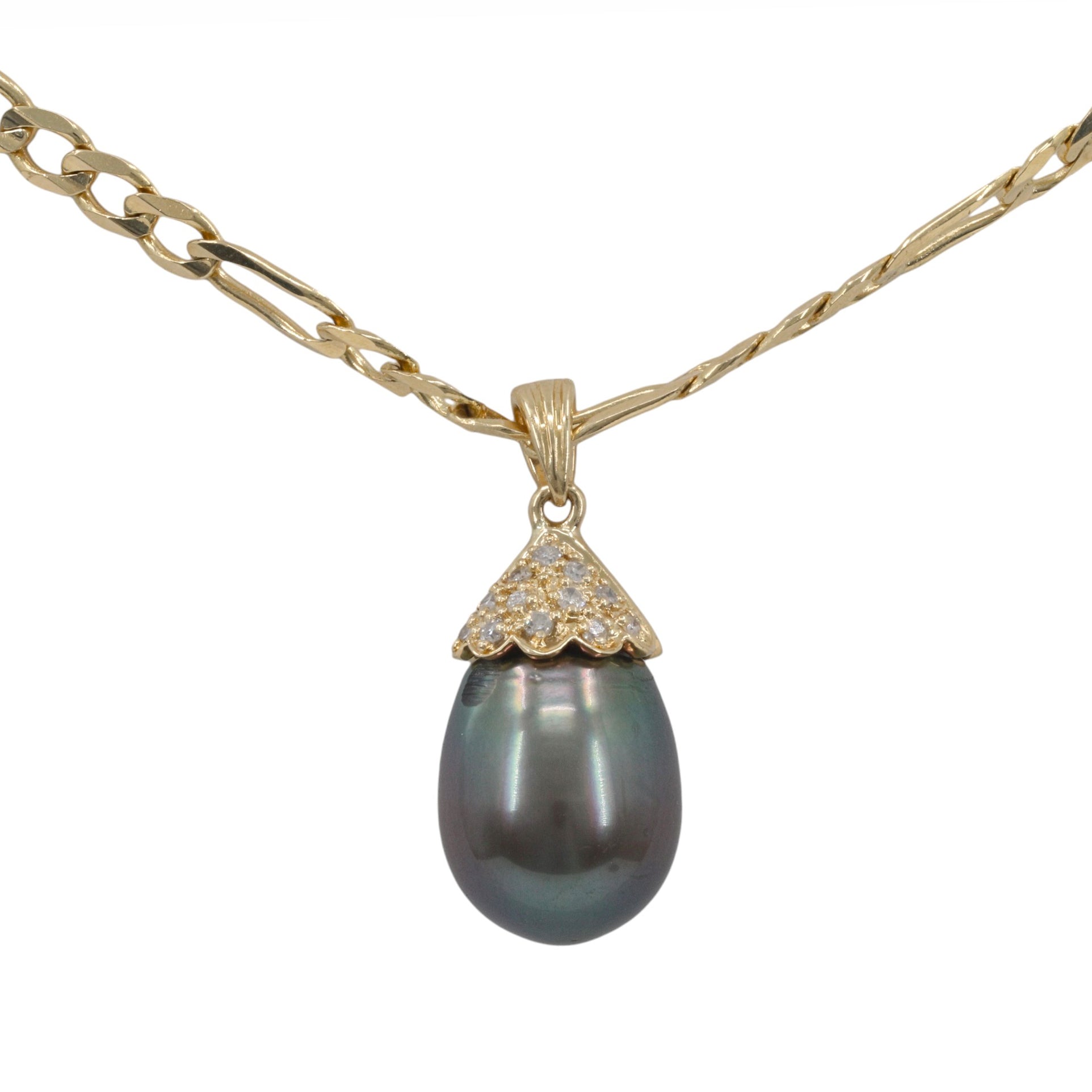14k Yellow Gold Tahitian Pearl Diamond Pendant