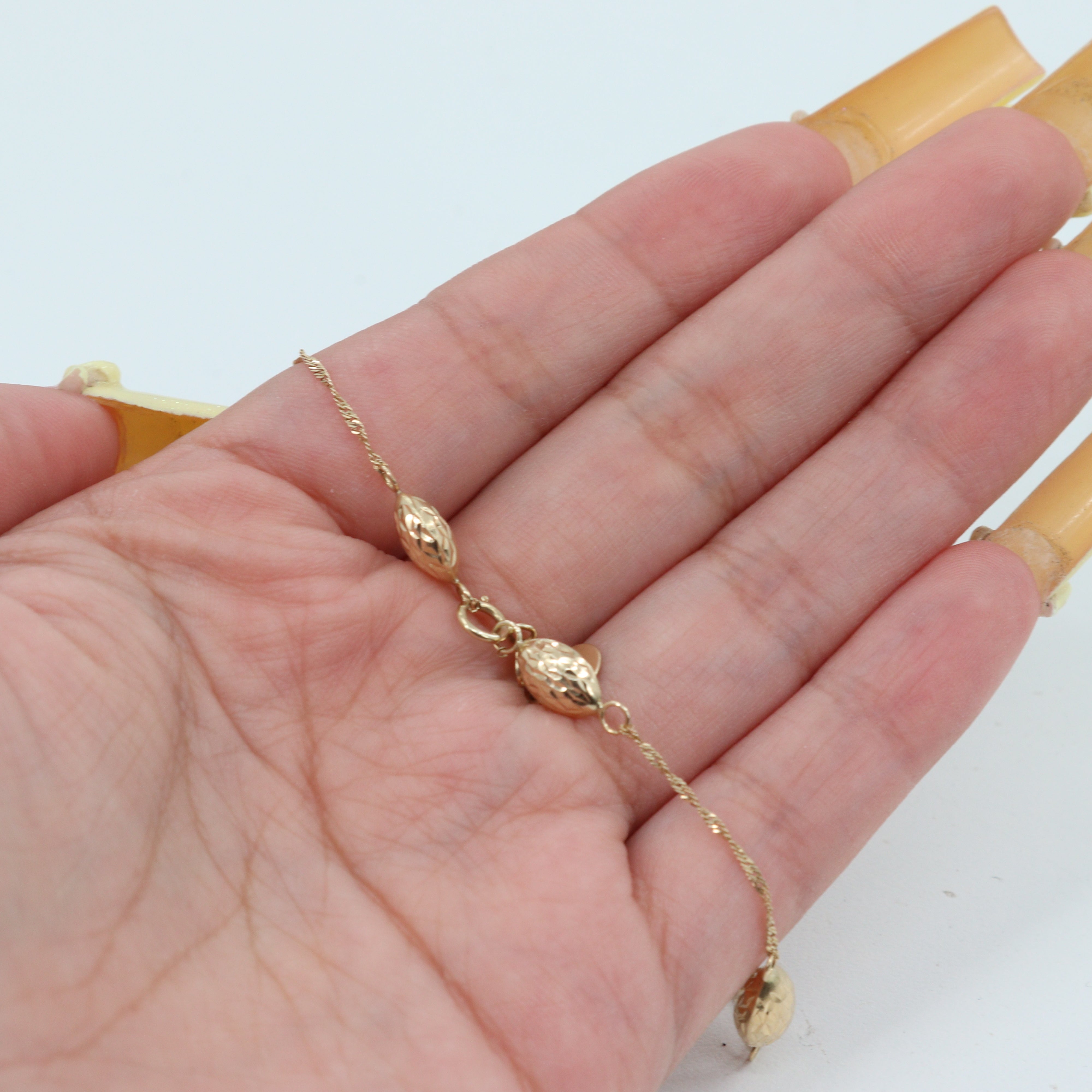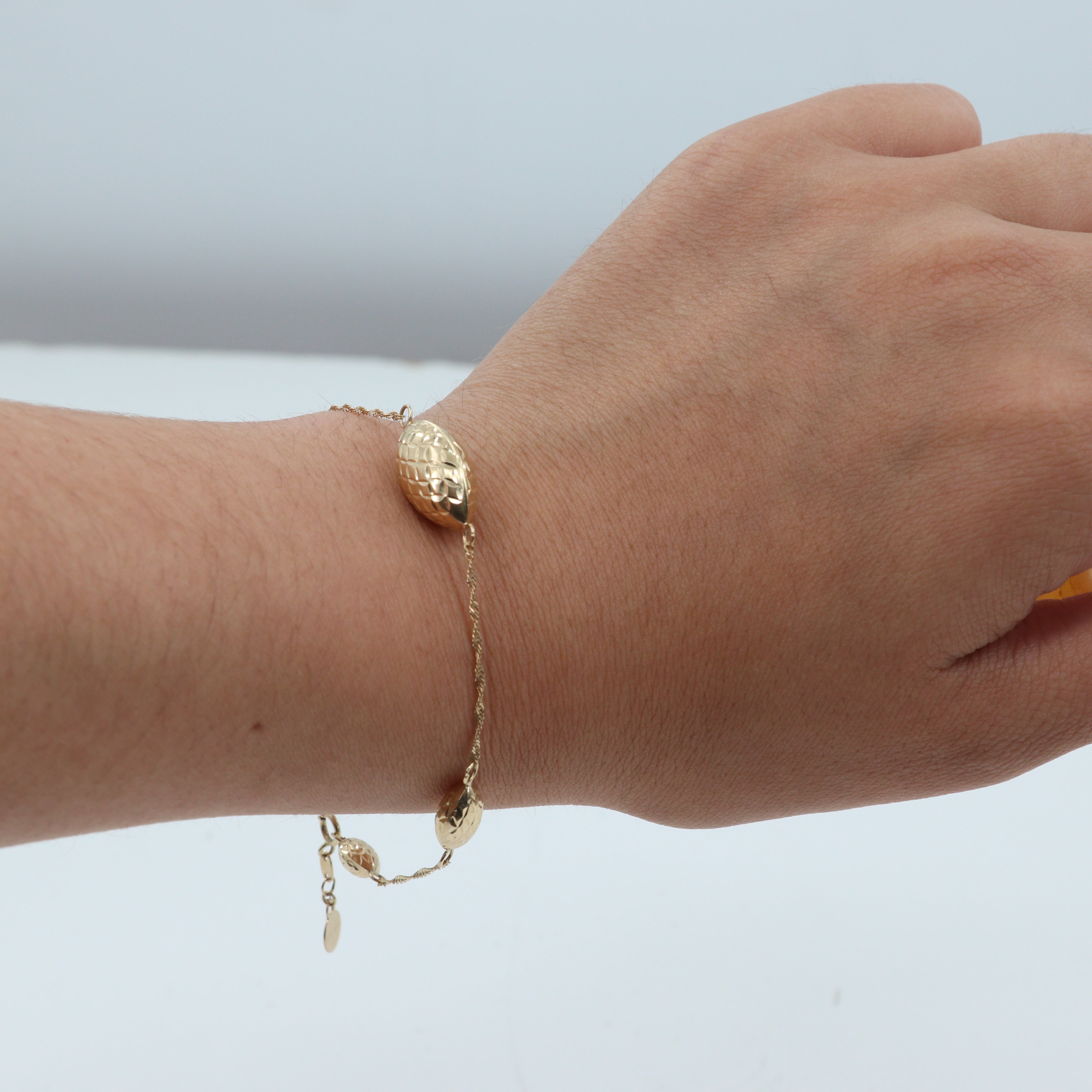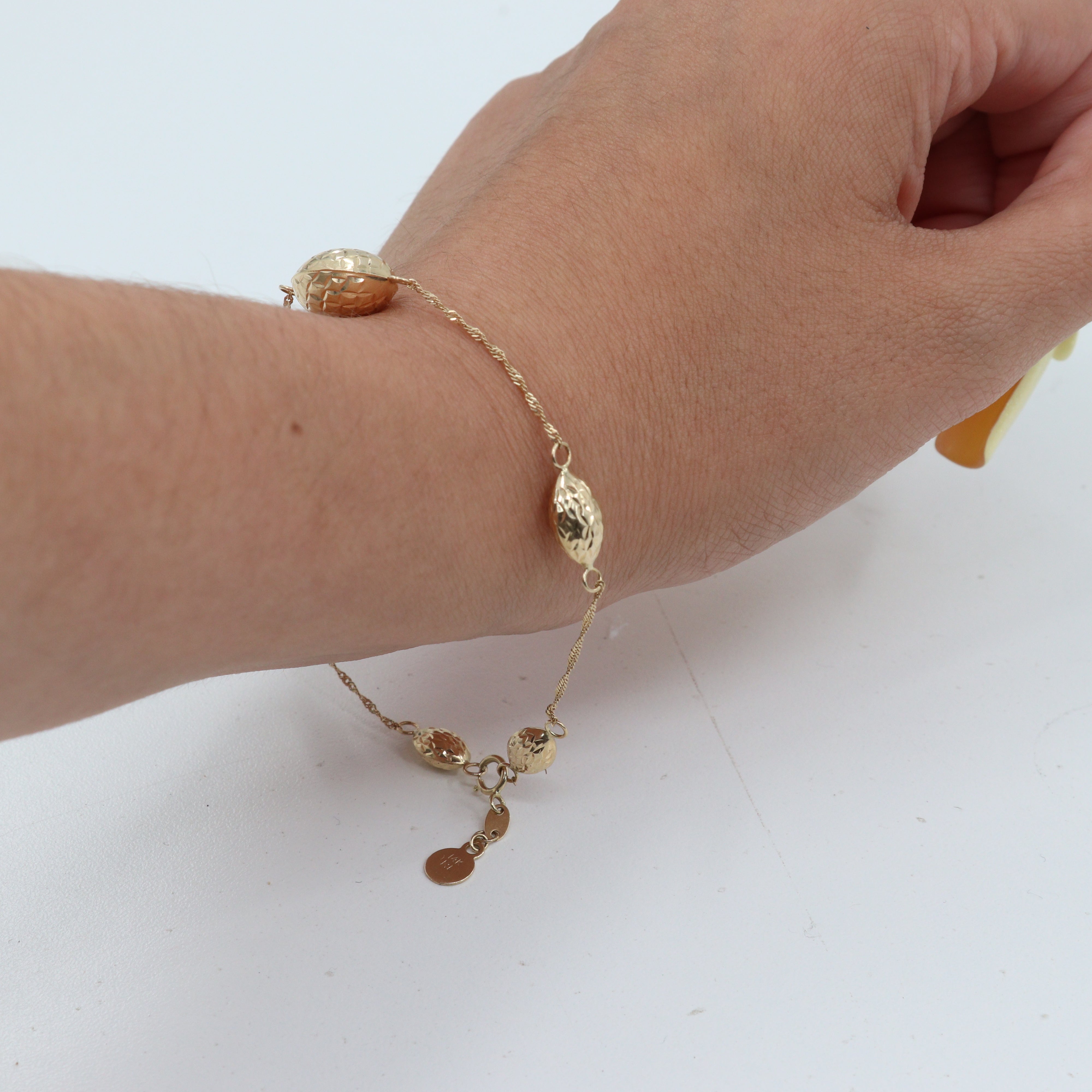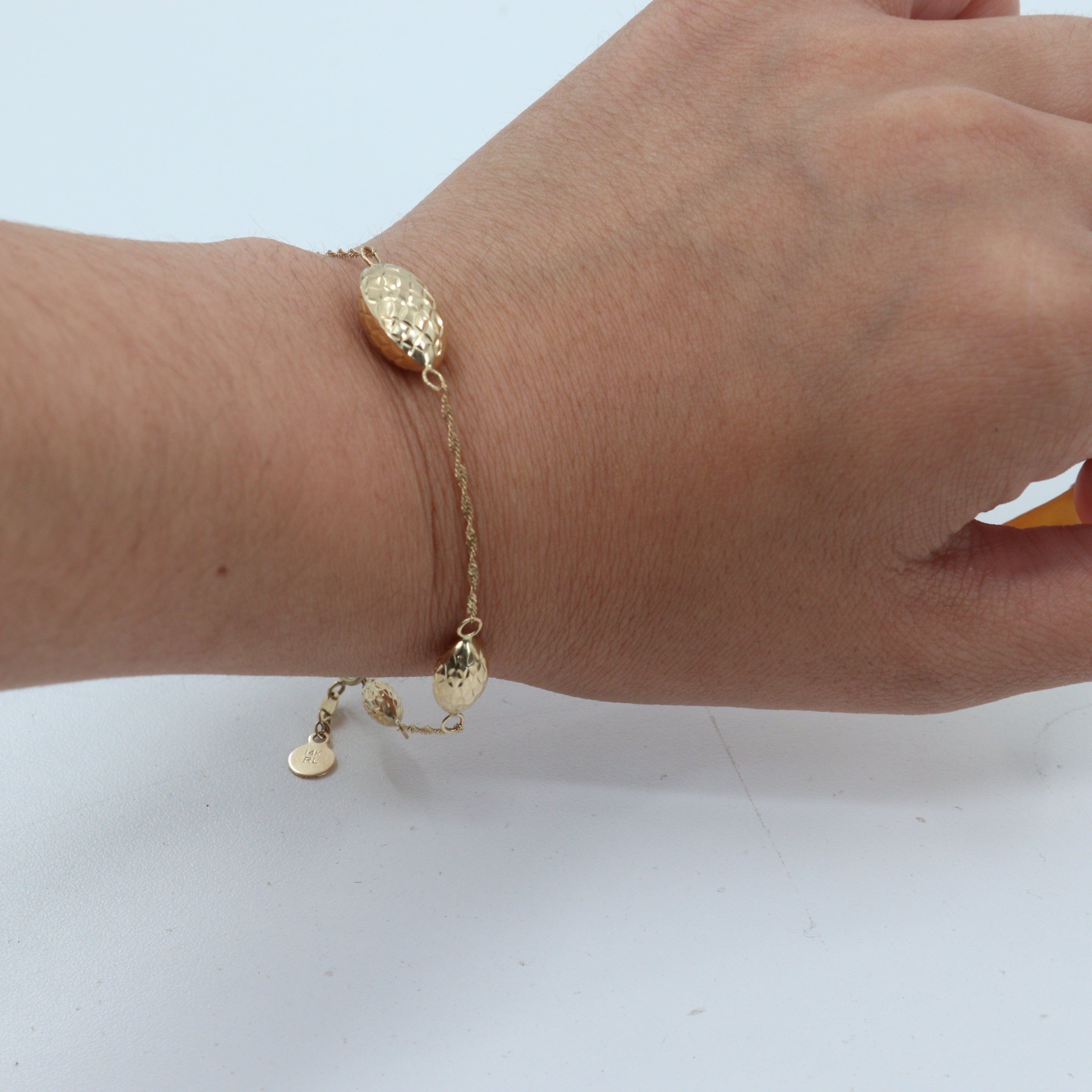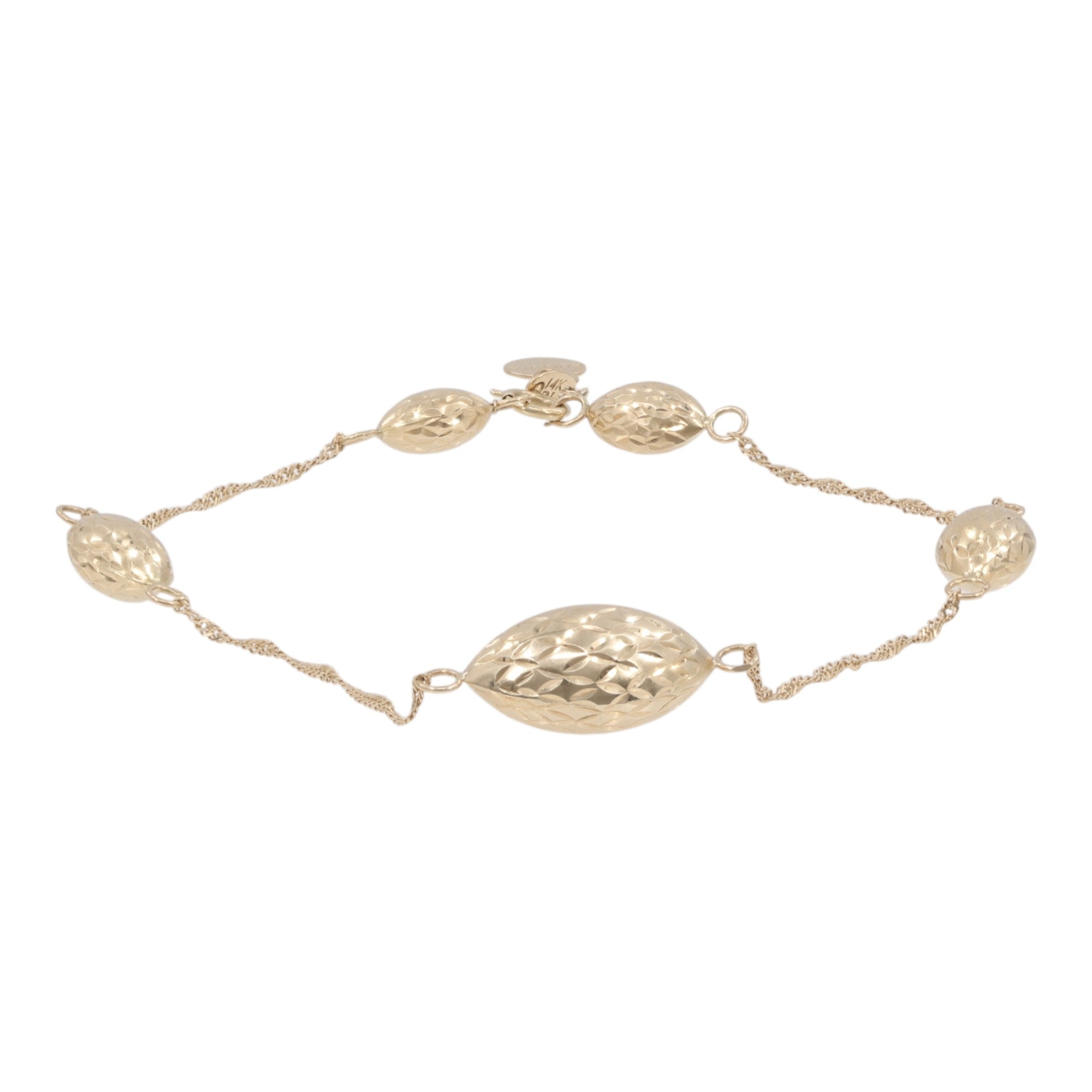14k Yellow Gold Tapered Oval Beaded Bracelet