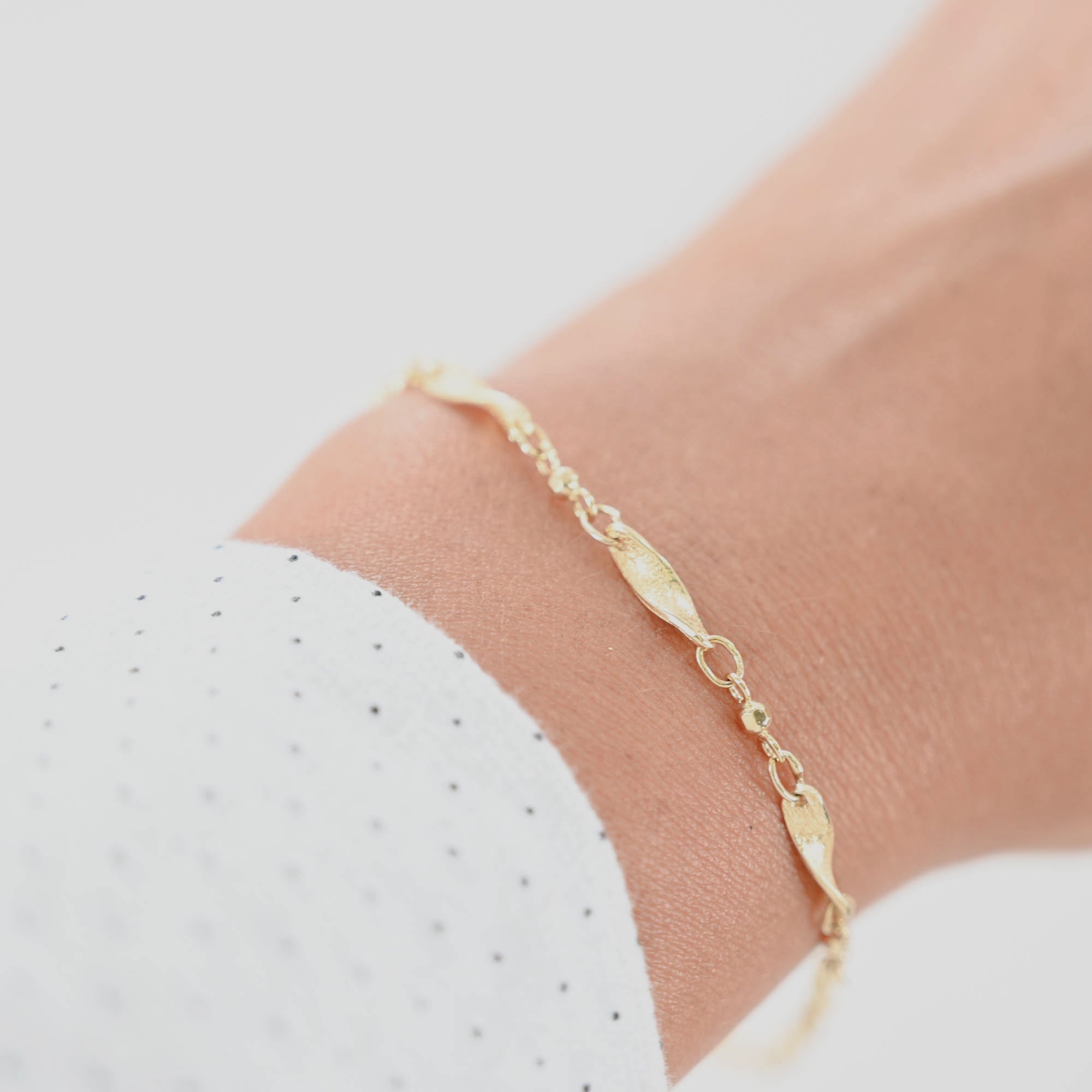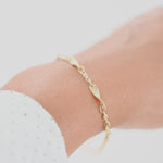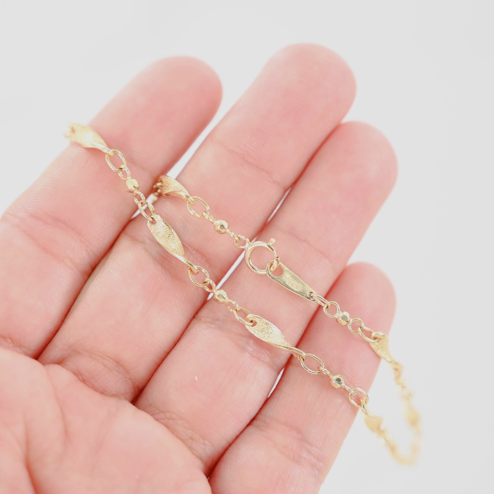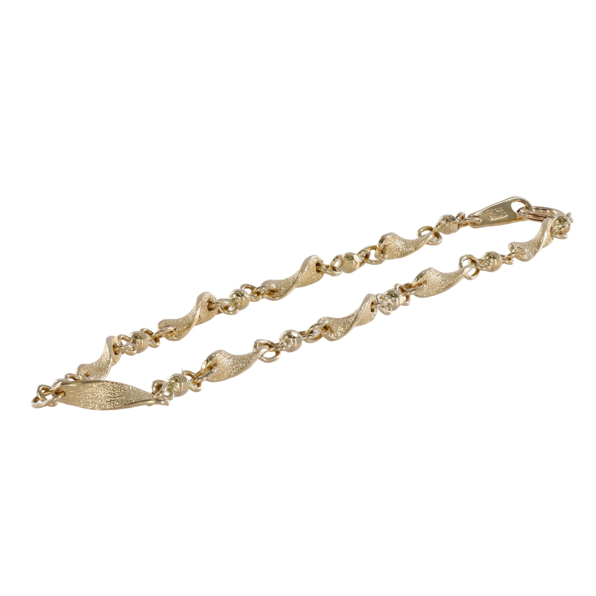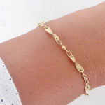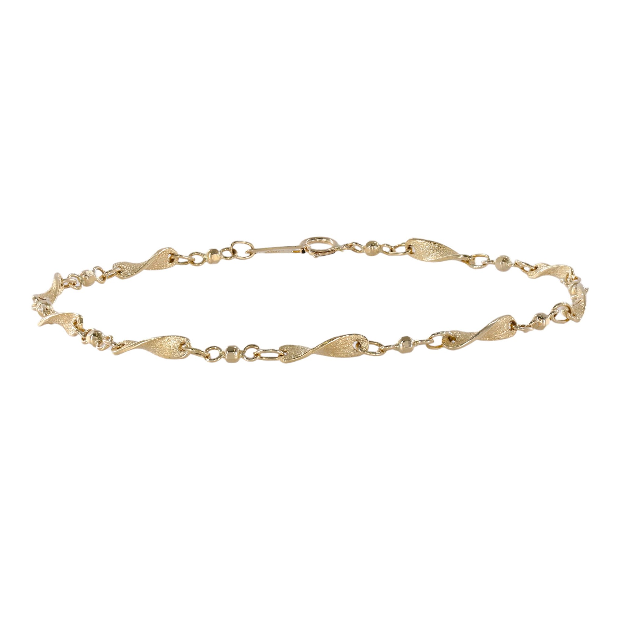 14K Yellow Gold Wave Curved Bar and Bead Link Bracelet/Anklet