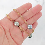 14K Yellow Solid Gold 5 Pearl Rolo Link Chain Necklace
