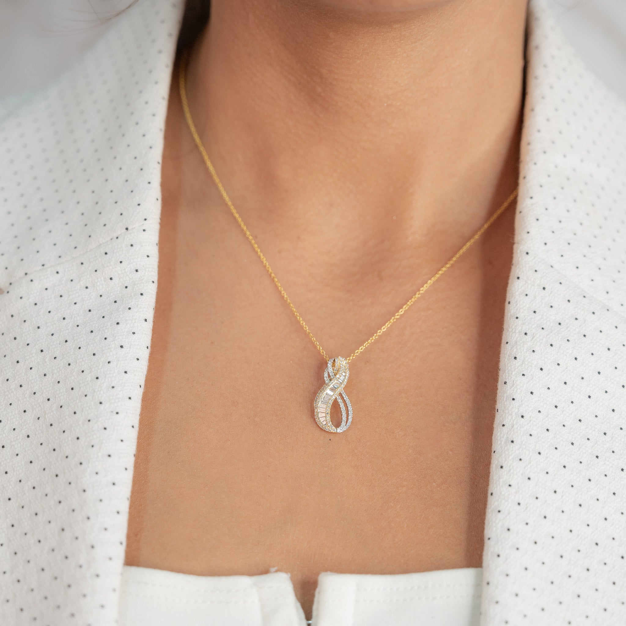 14K Yellow Solid Gold Diamond Pendant Rolo Chain Necklace