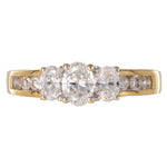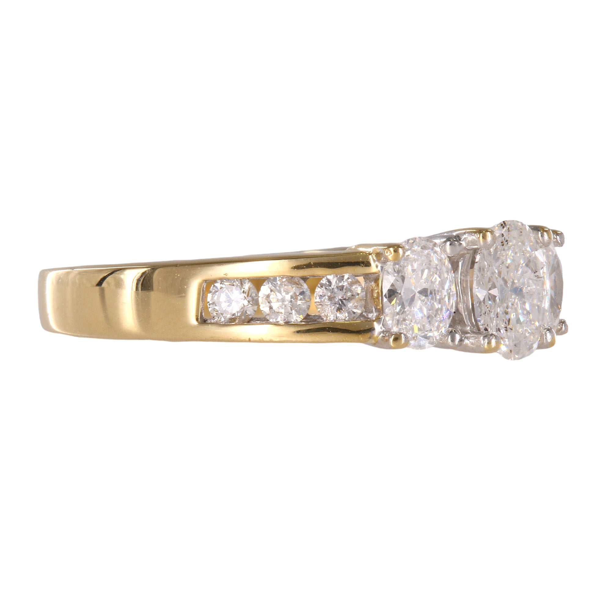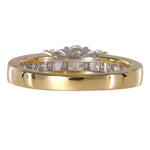 Embrace the timeless allure of our Ladies 14k Yellow Gold Diamond Engagement Ring. This exquisite piece showcases a center Oval cut diamond weighing 0.50 carats, radiating brilliance and beauty. along the center stone are 2 accent baguette diamonds, each weighing 0.15 carats, and six more diamonds of 0.18 carats, adding a touch of sophistication to the design. With a total carat weight of 0.98 carats.