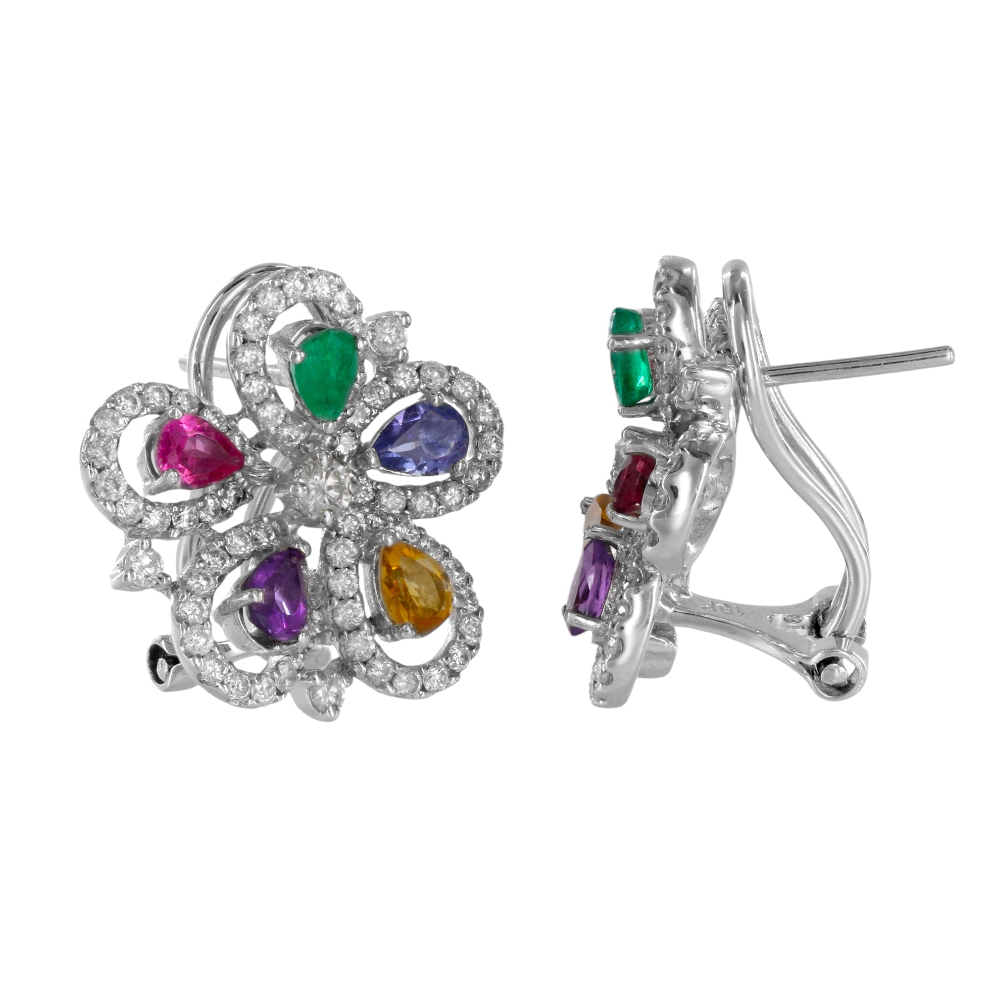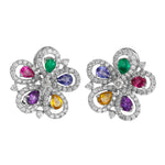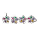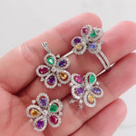 18K White Gold Diamond And Colored Stones Flower Jewelry Set