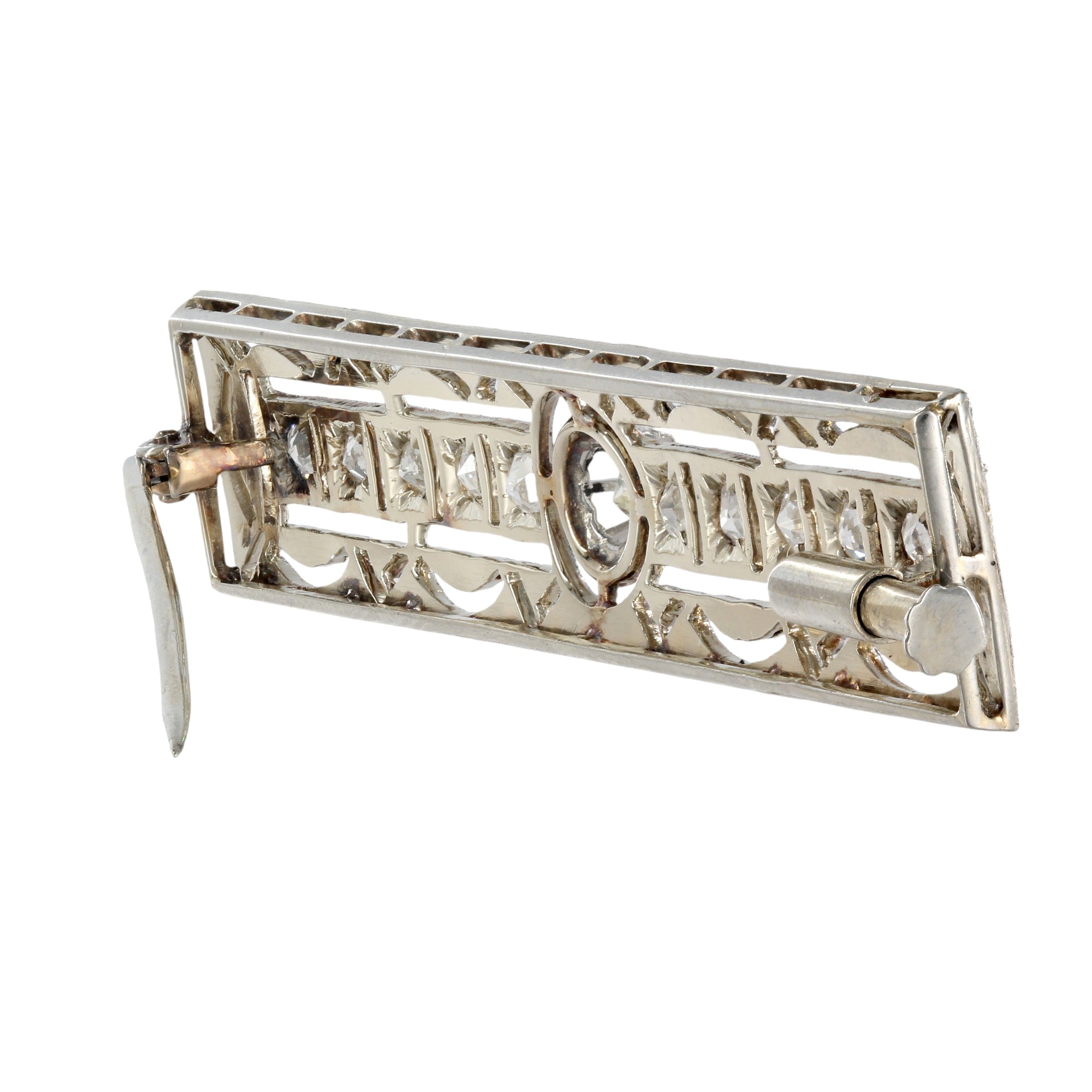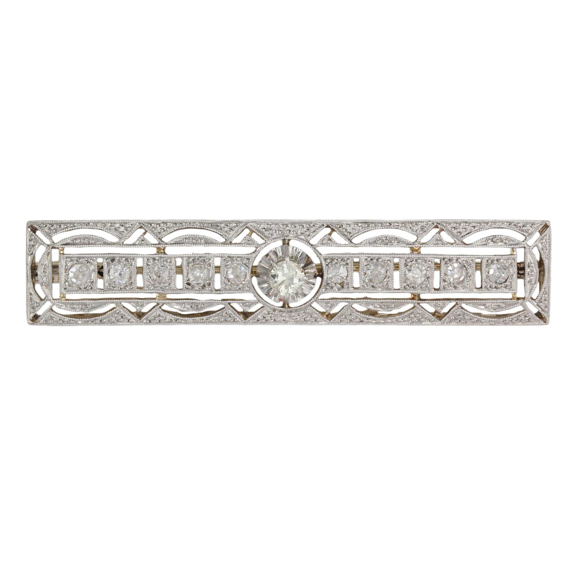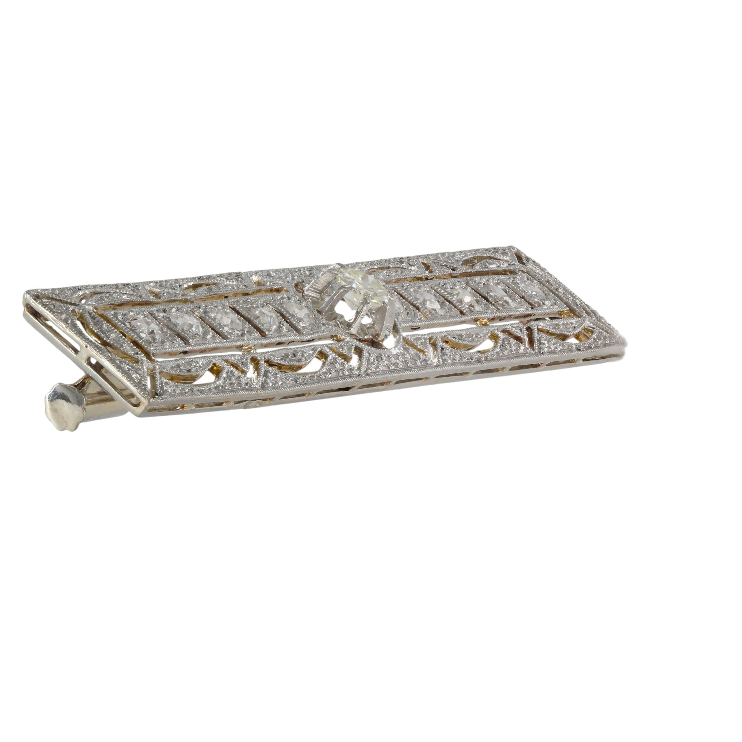 18K White Gold Diamond Antique Milgrain Ilusion Setting Center Brooch
