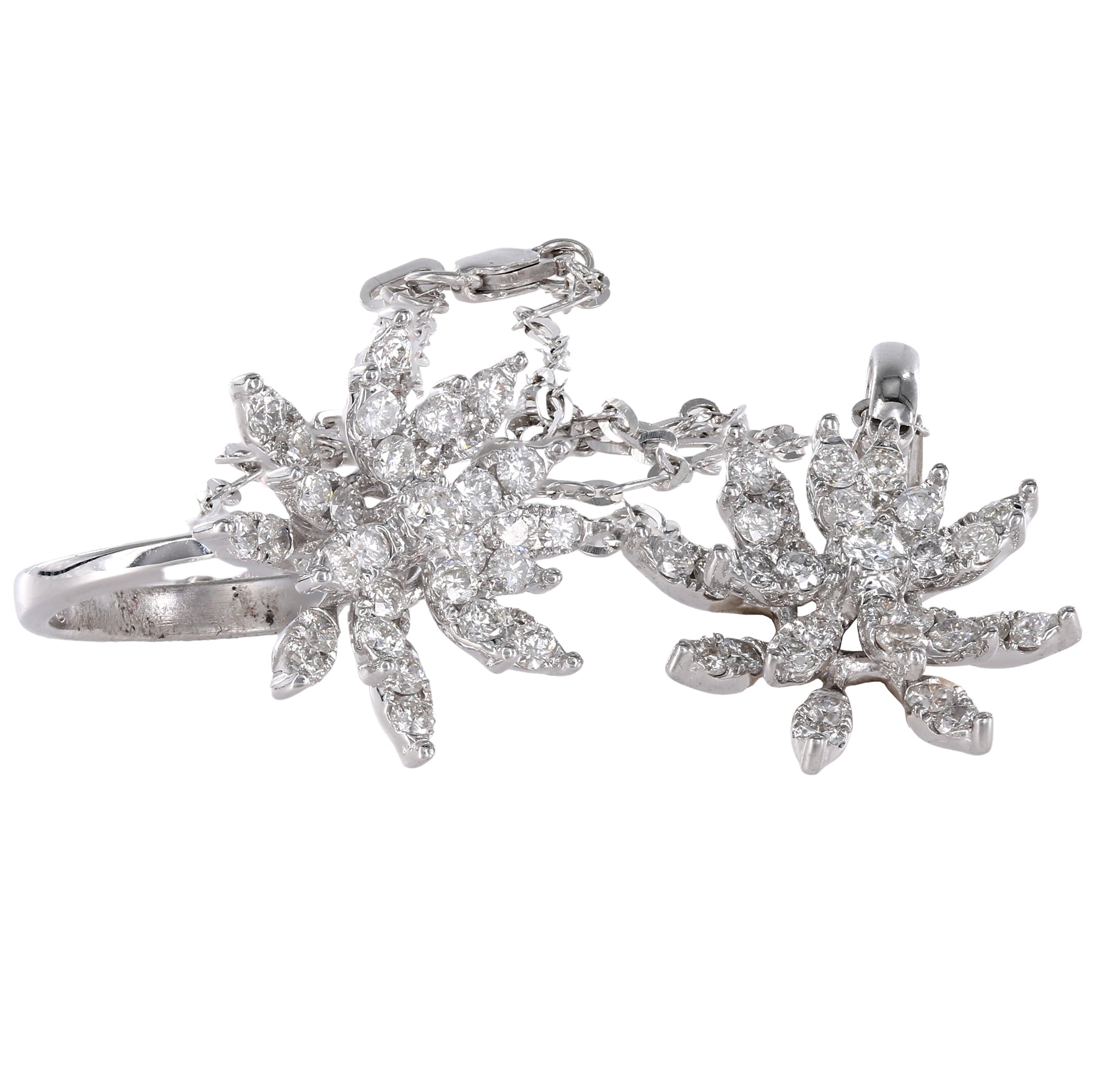 18K White Gold Diamond Cluster Ring And Necklace Set