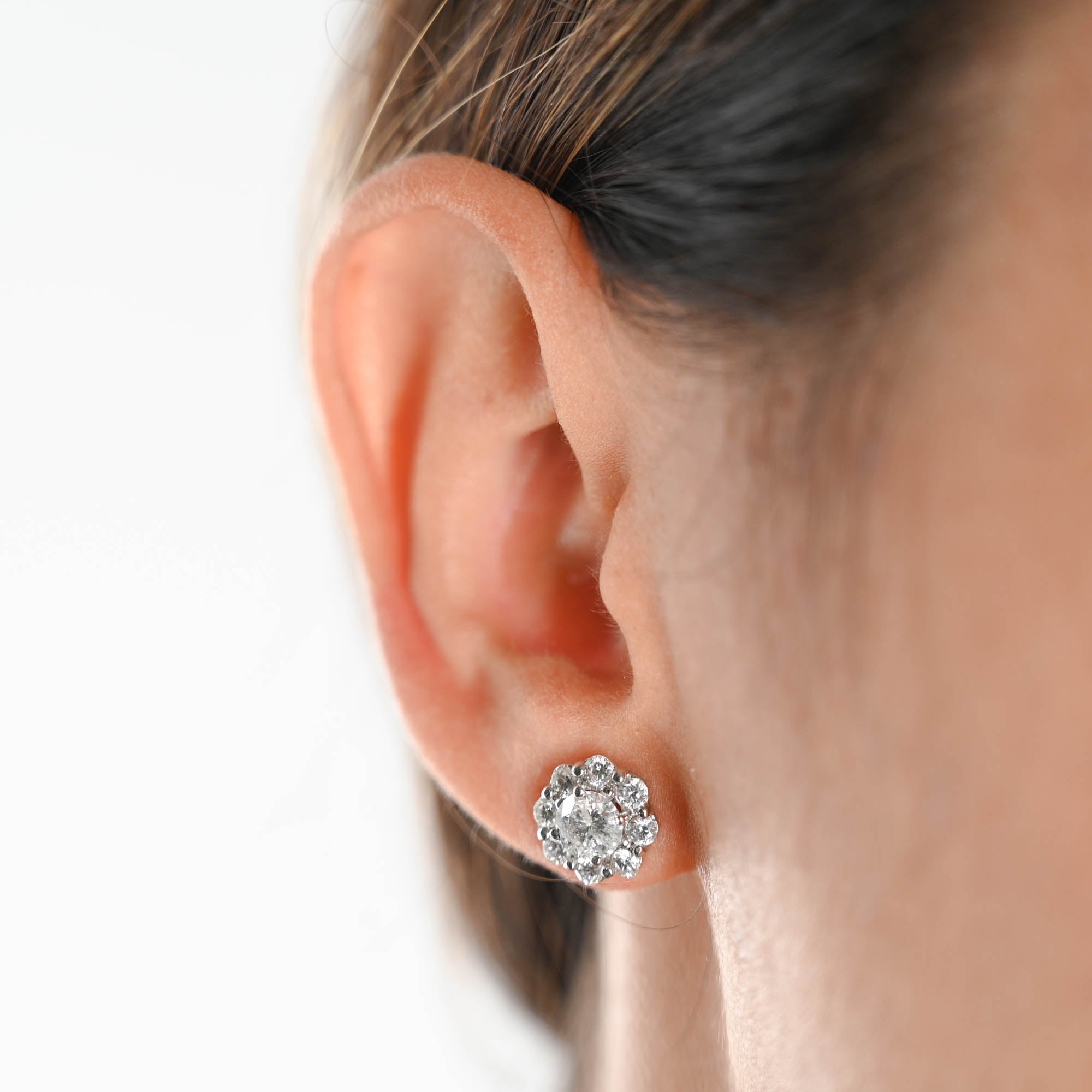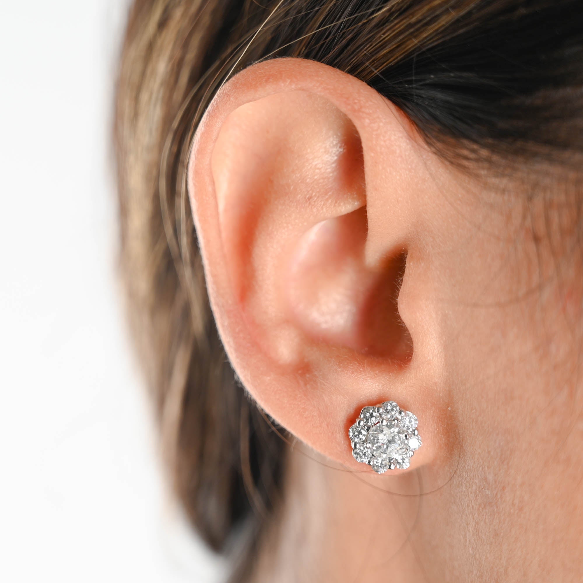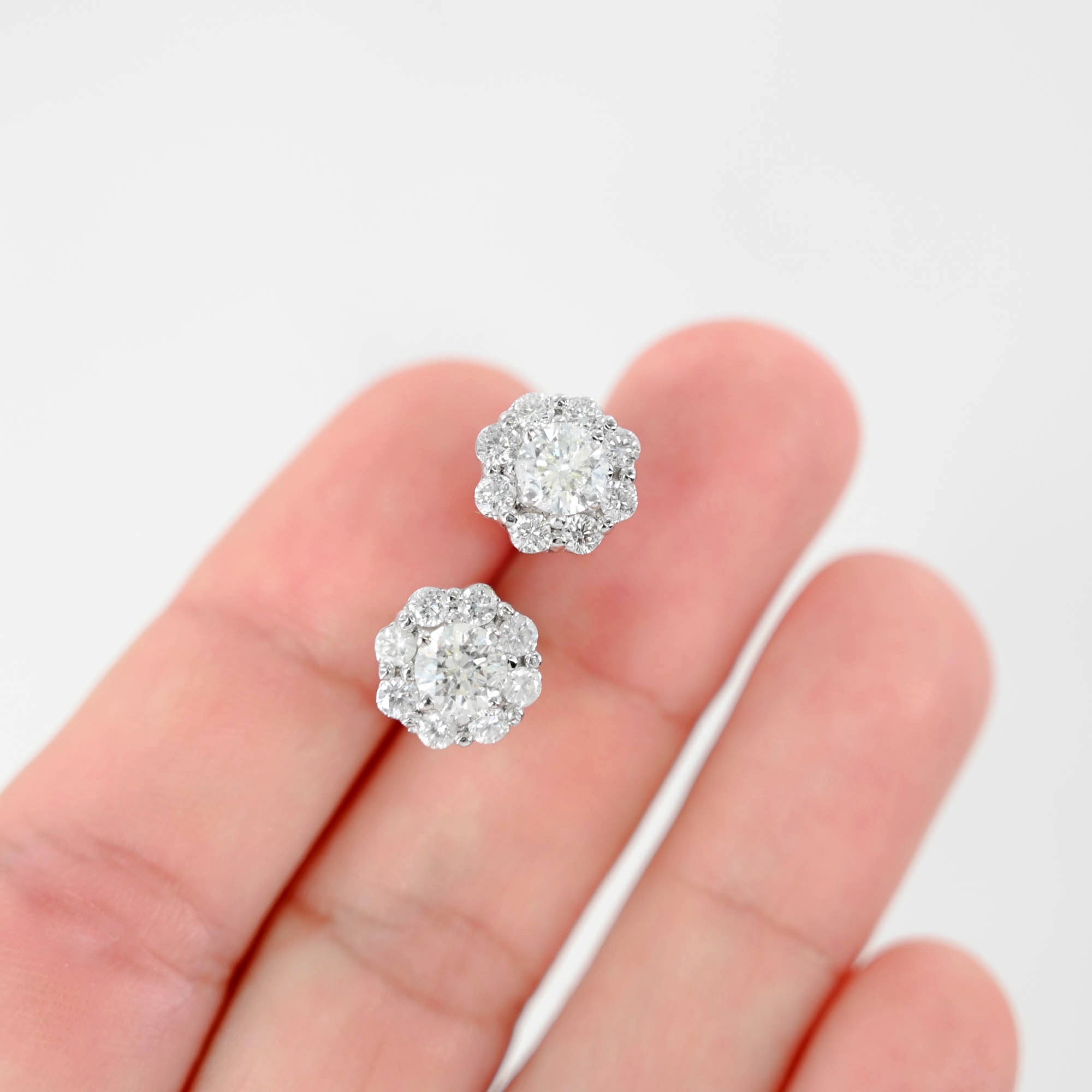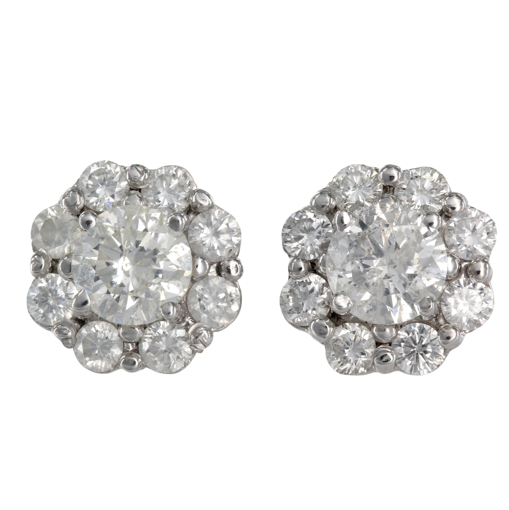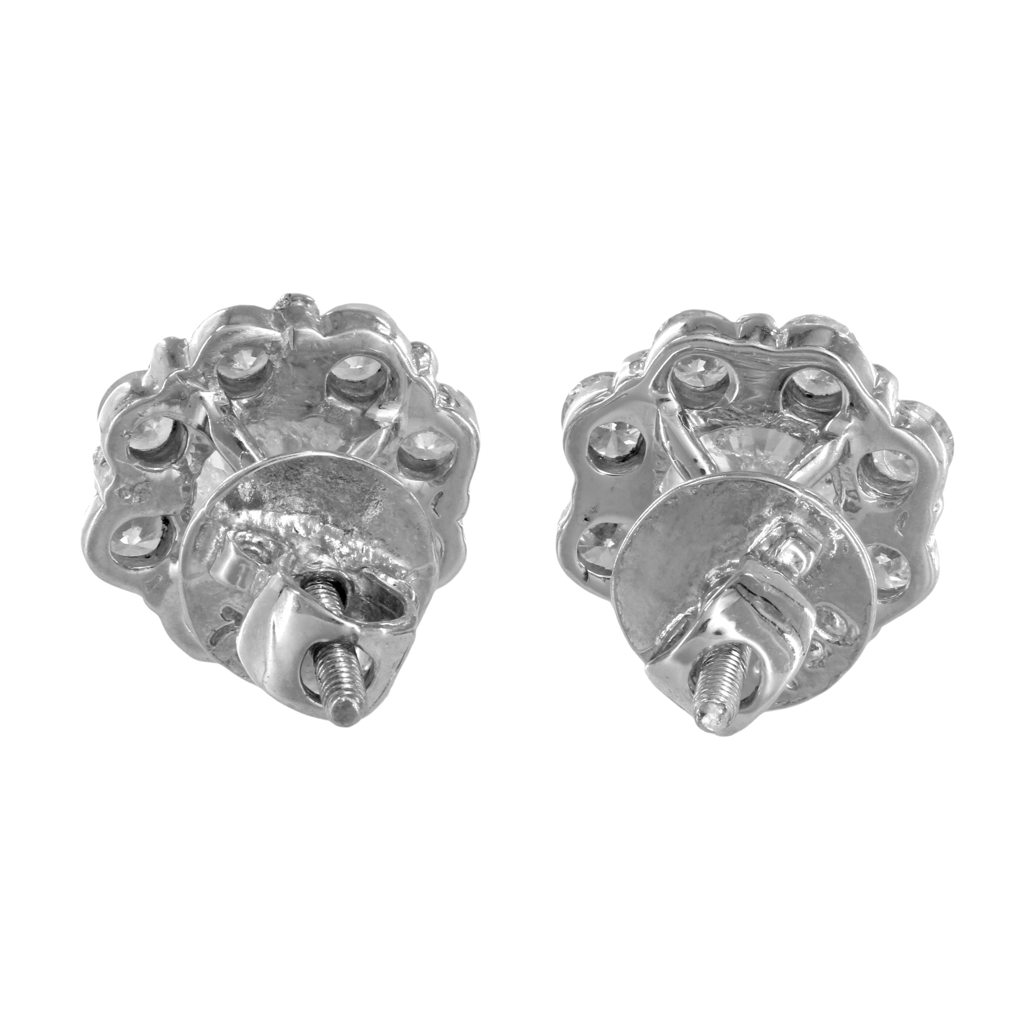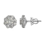 18K White Gold Diamond Floral Stud Earrings 1.84Ctw