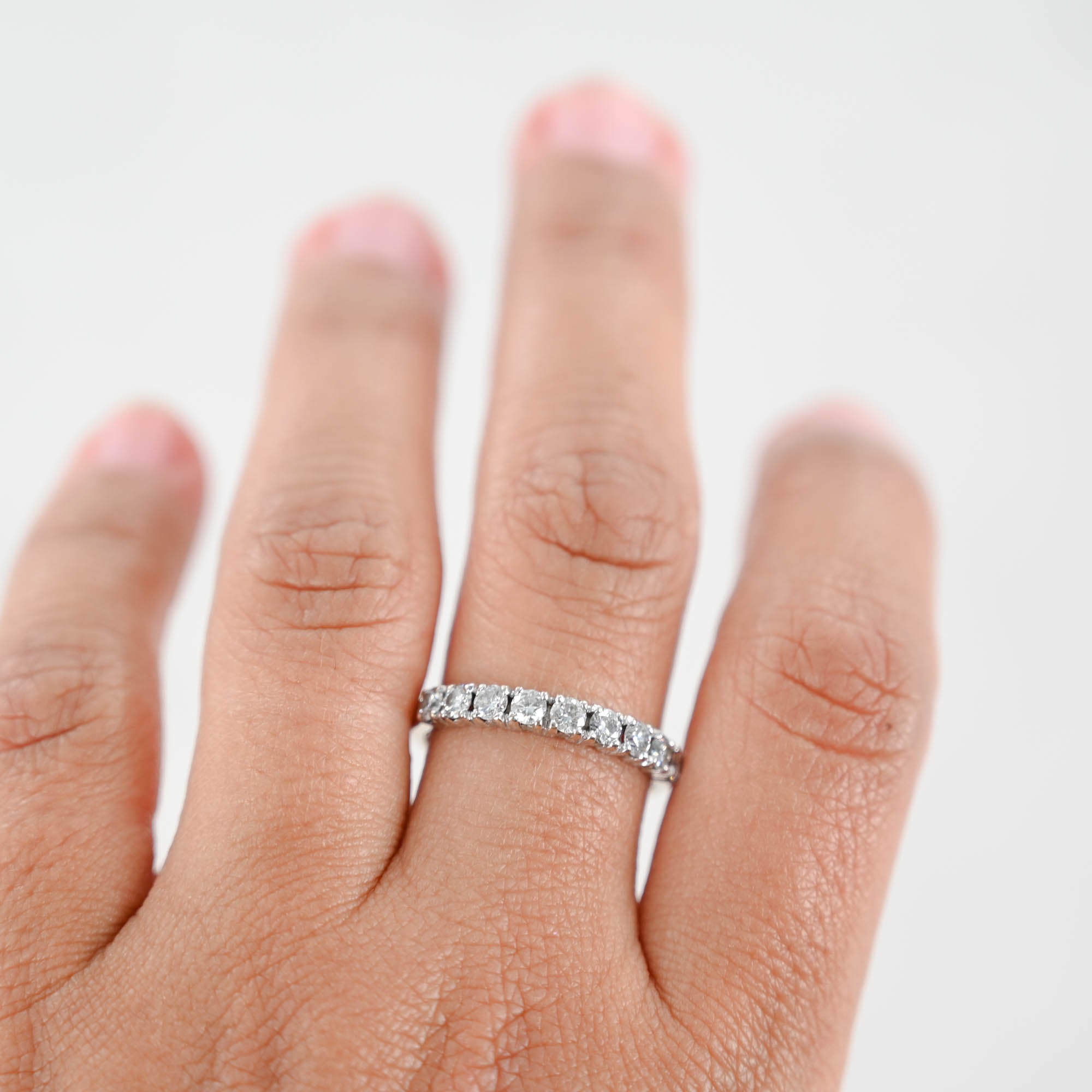 18K White Gold Diamond Half Eternity Wedding Band Ring 0.72Ctw